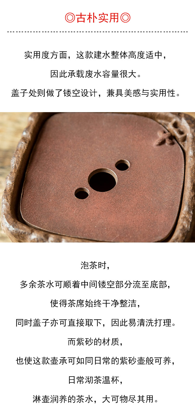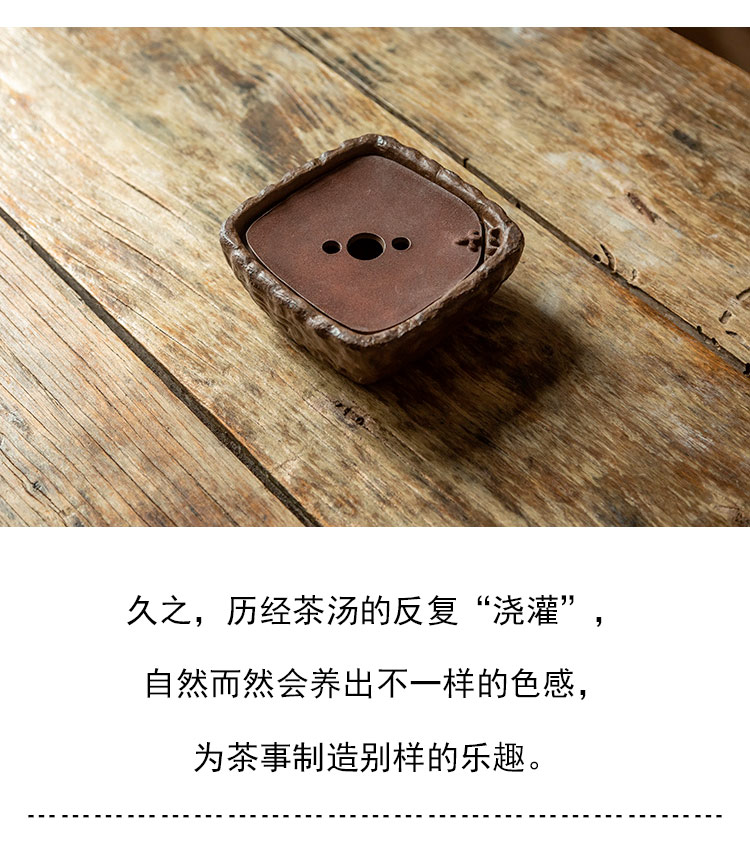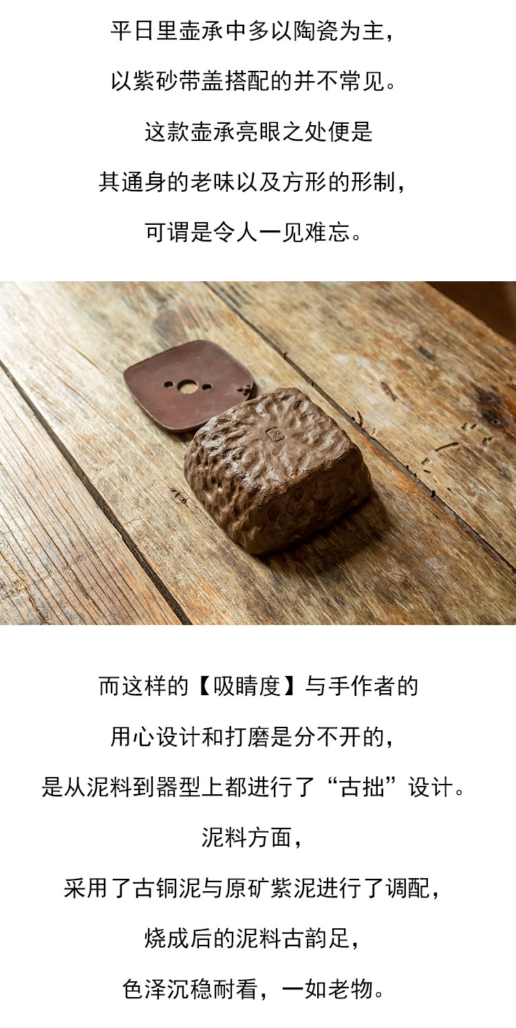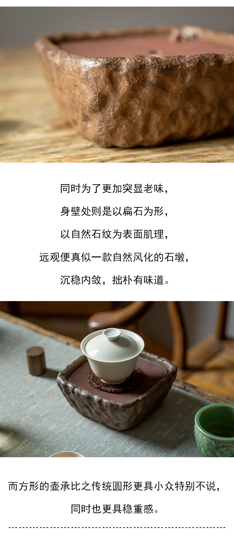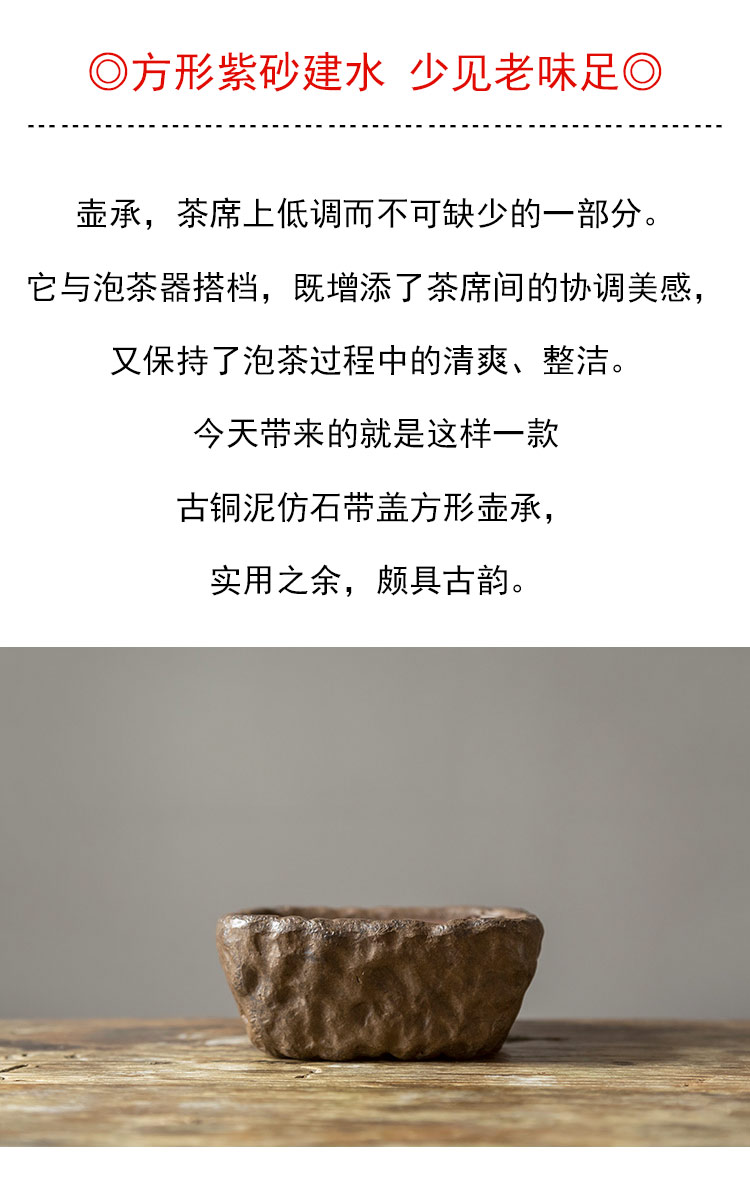 茶香记 紫砂古铜泥仿石带盖方形壶承干泡台古朴耐看建水茶洗茶具
