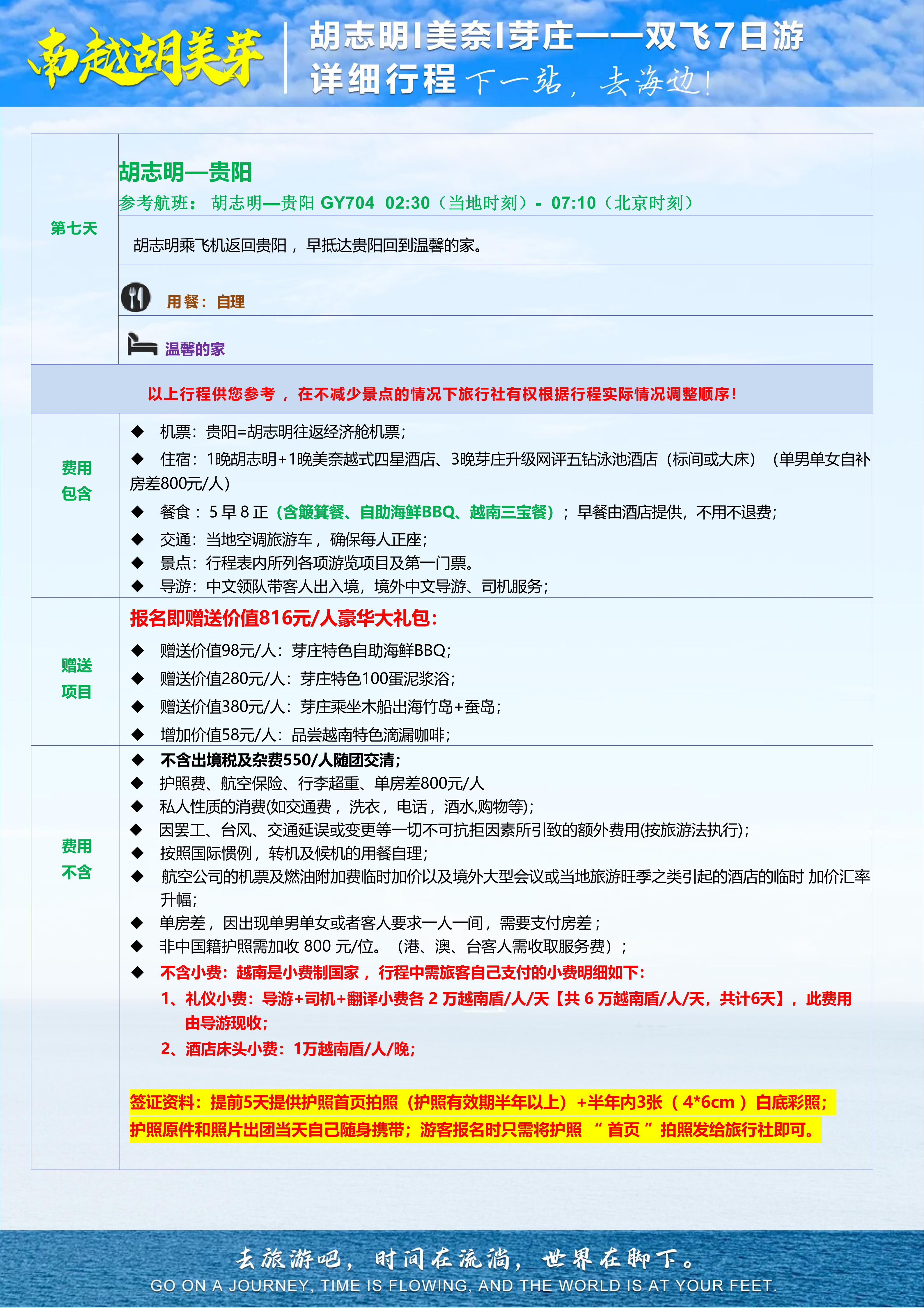 贵阳直飞胡志明--南越胡美芽--双飞7日游