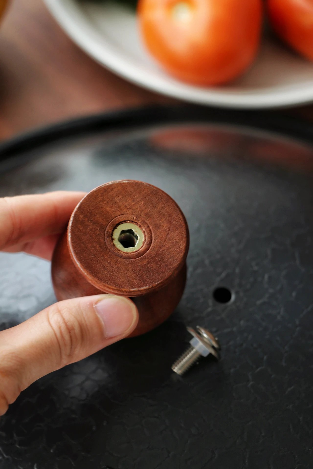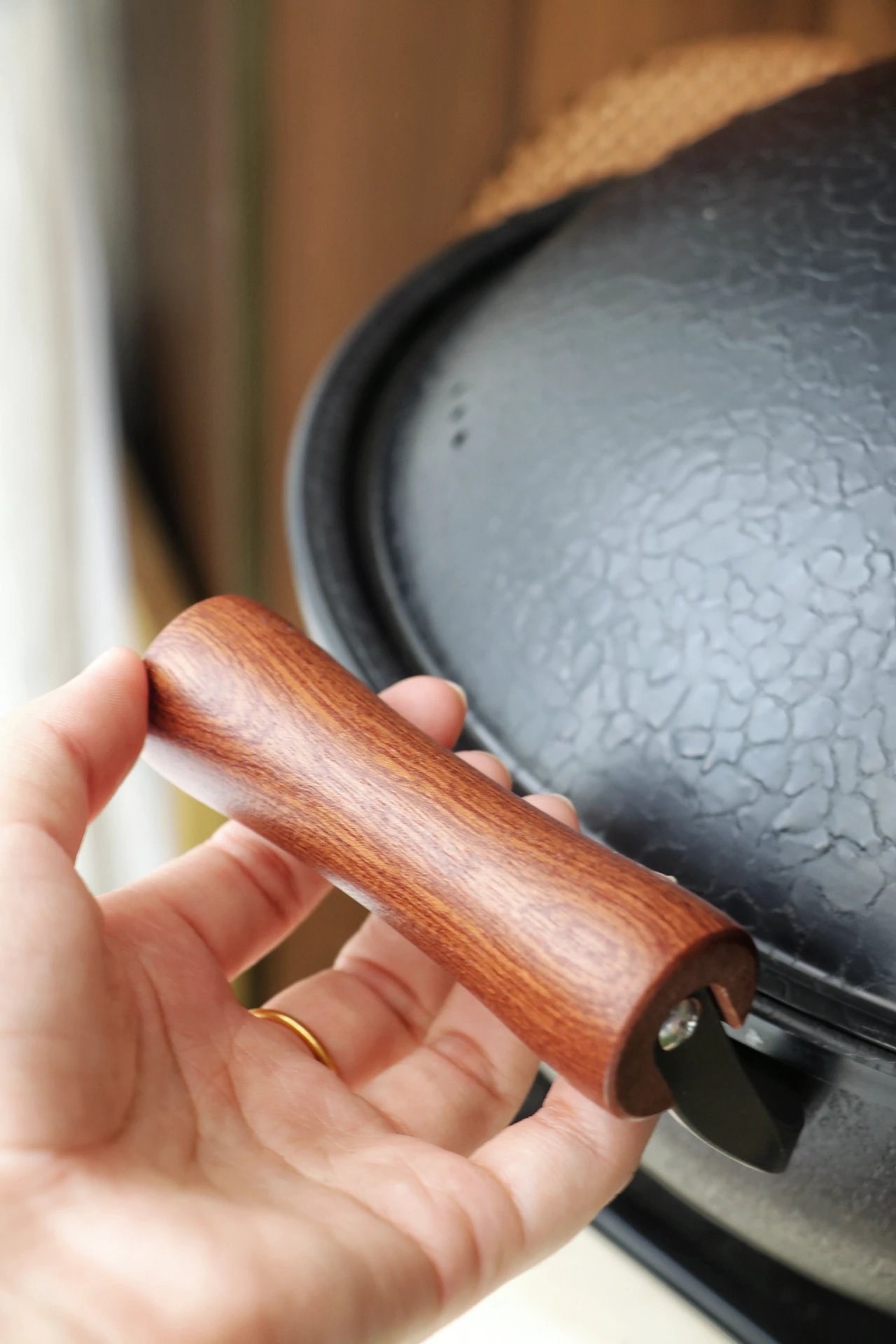 人性化实木手柄 握感温润舒适 隔热防烫,提拿稳当 简直是下厨人的福音
