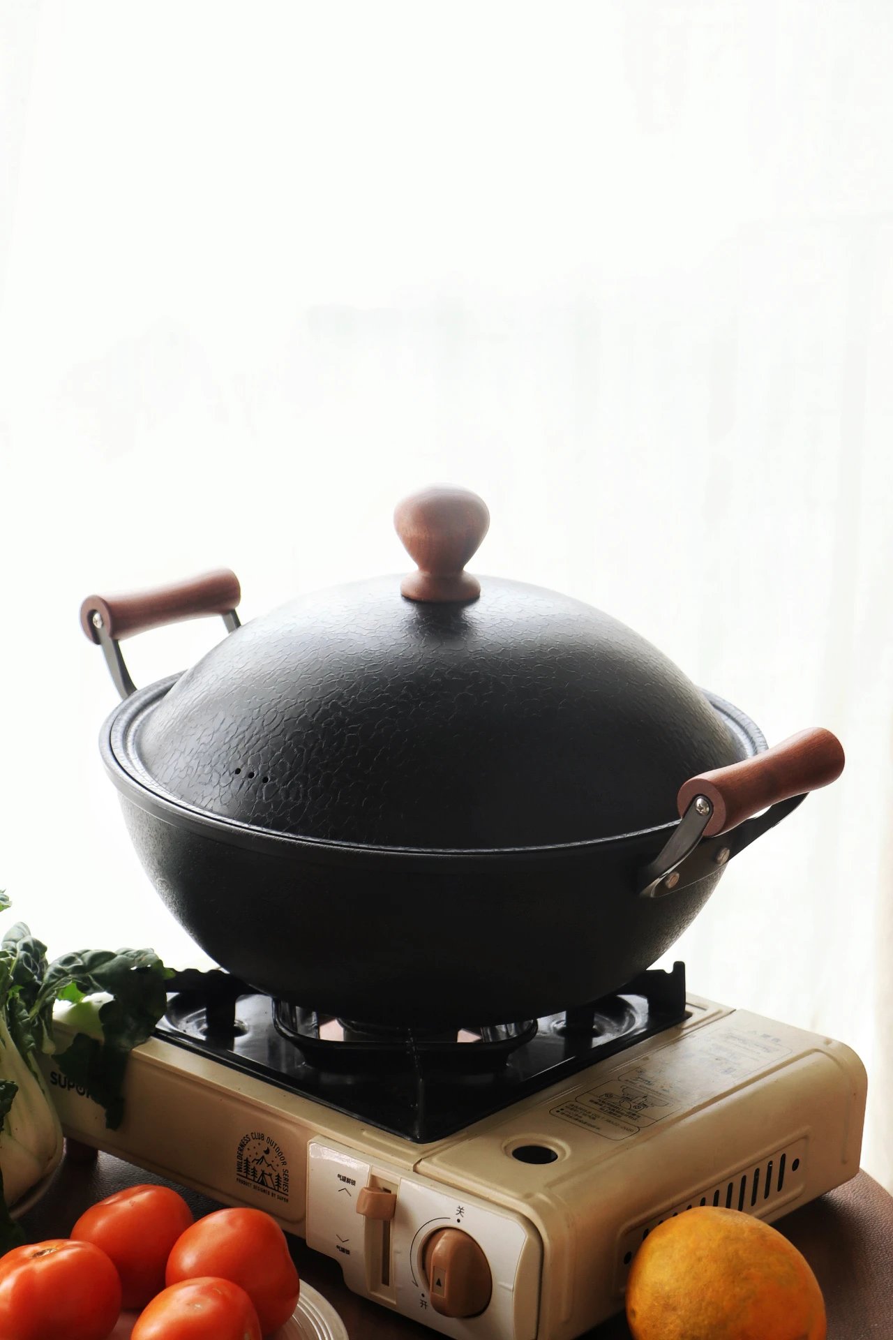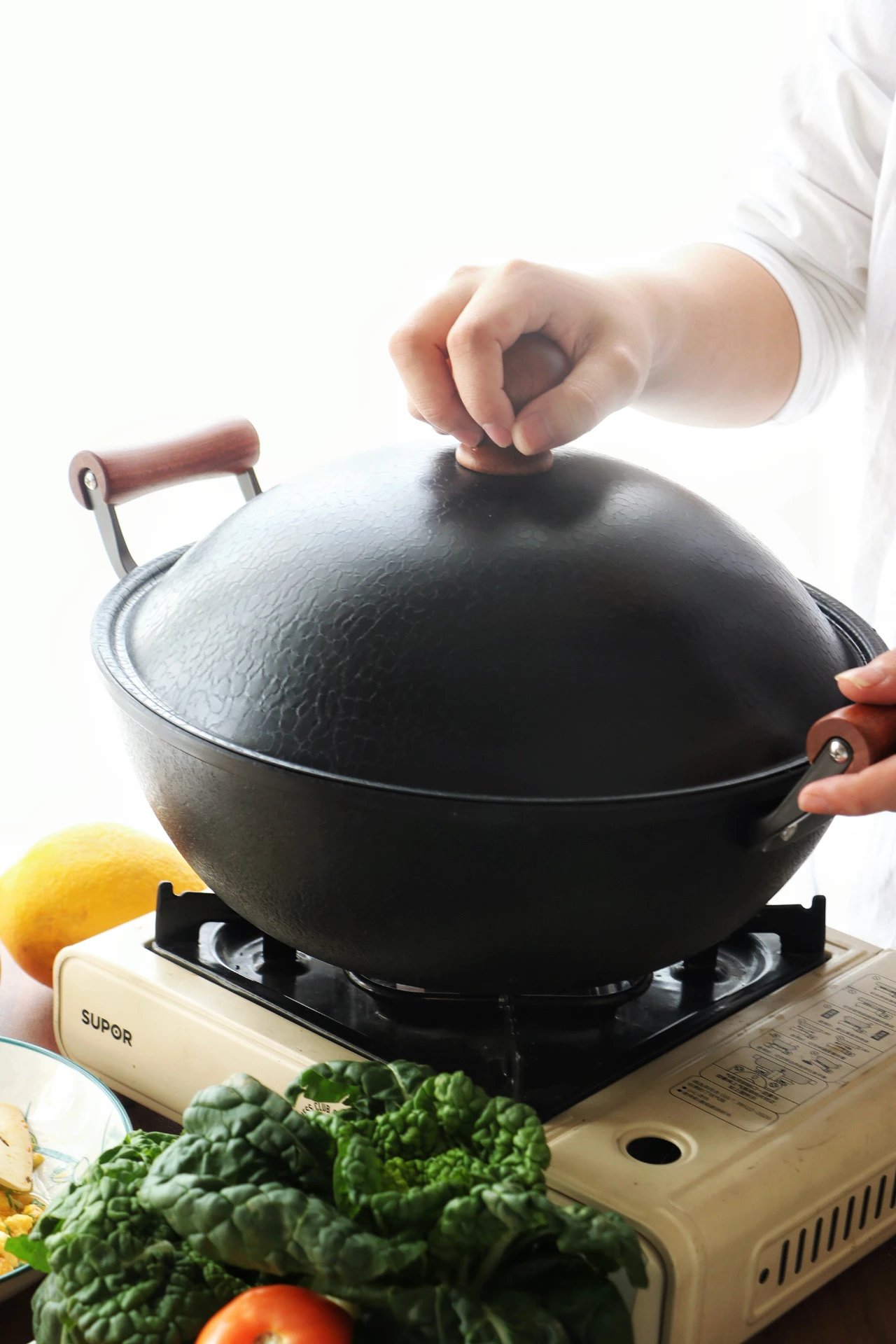 出口日本玄铁纹双耳炖炒锅 加送纯铁盖告别油烟 + 化学涂层 32CM/34CM可选 物理不粘 受热均匀 炒菜更香基地直邮
