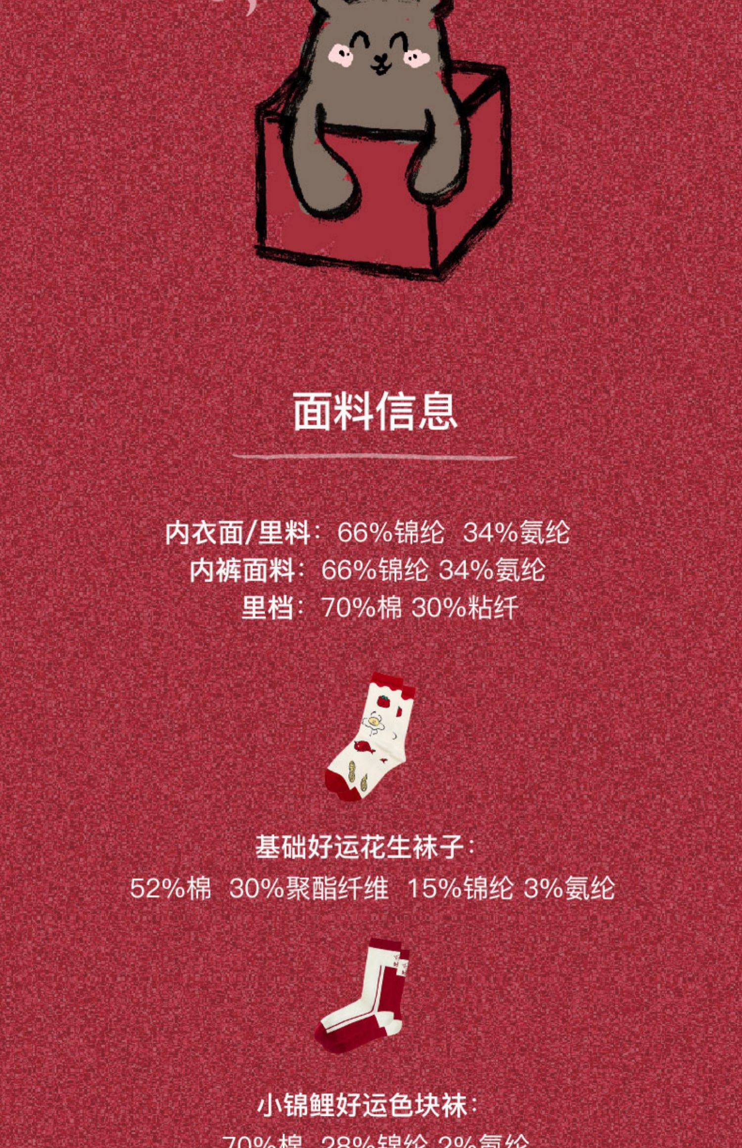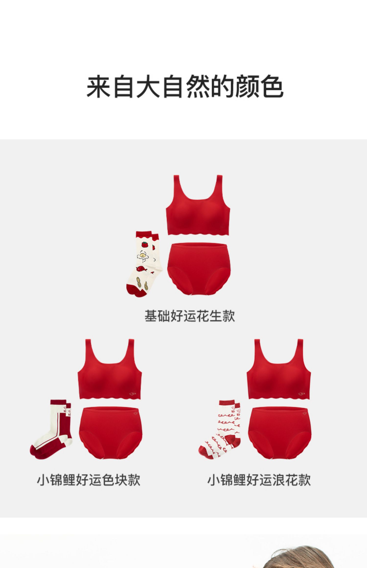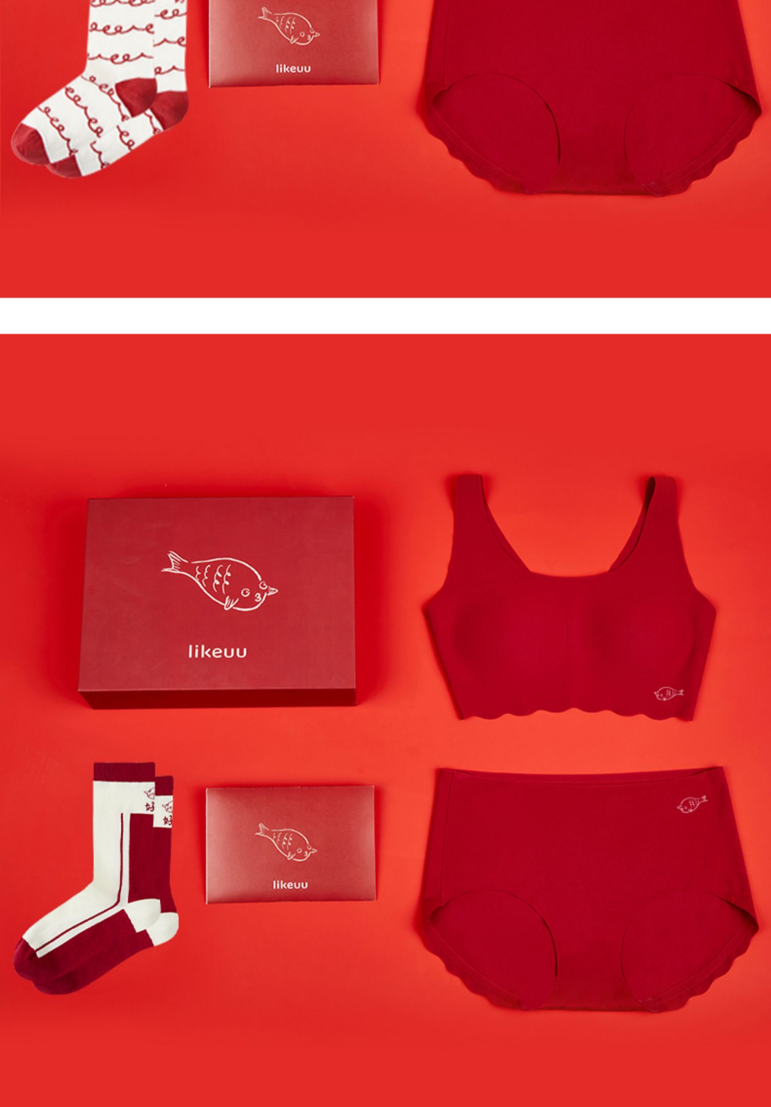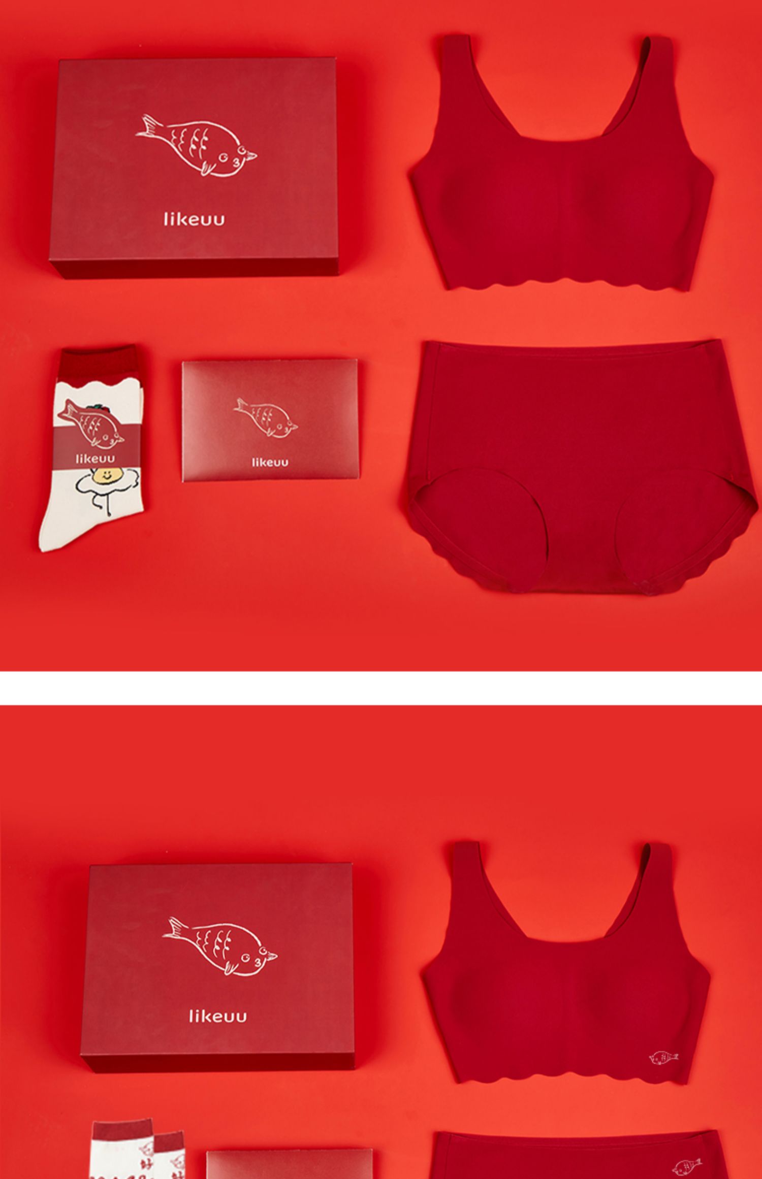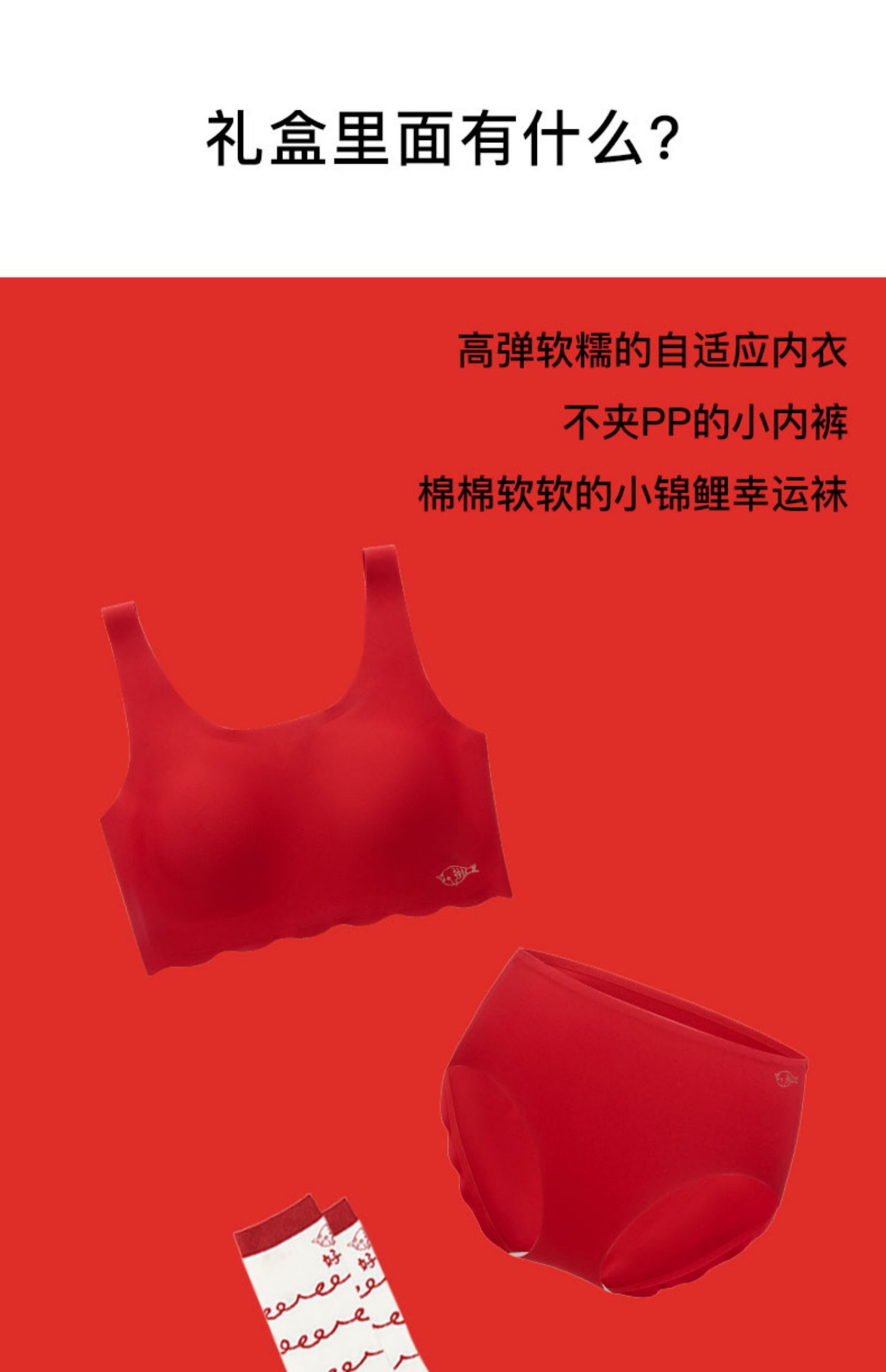 ubras旗下likeuu少女红色无尺码内衣套礼盒本命年文胸内裤初中生