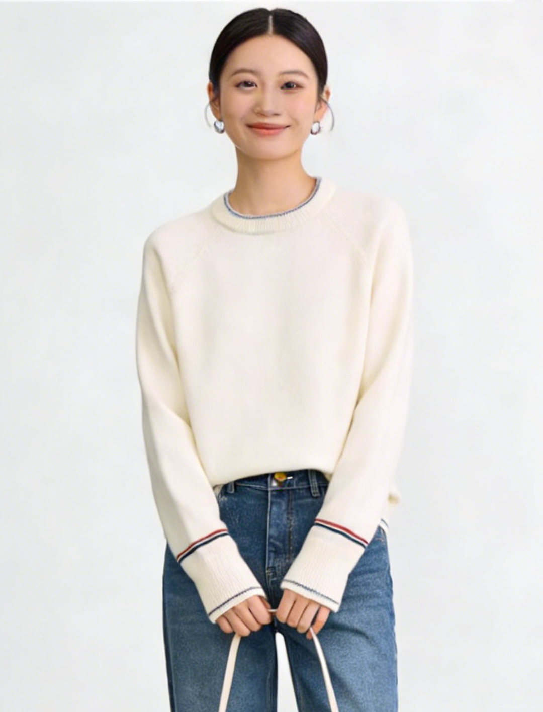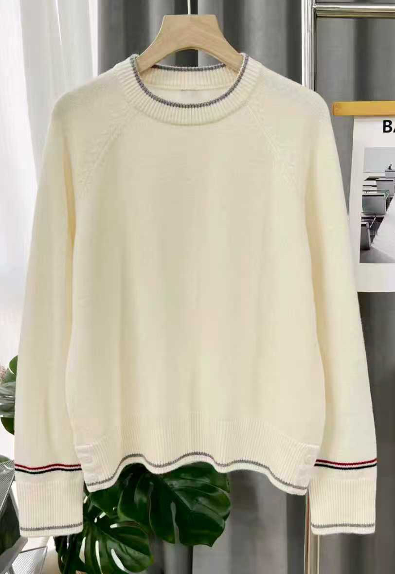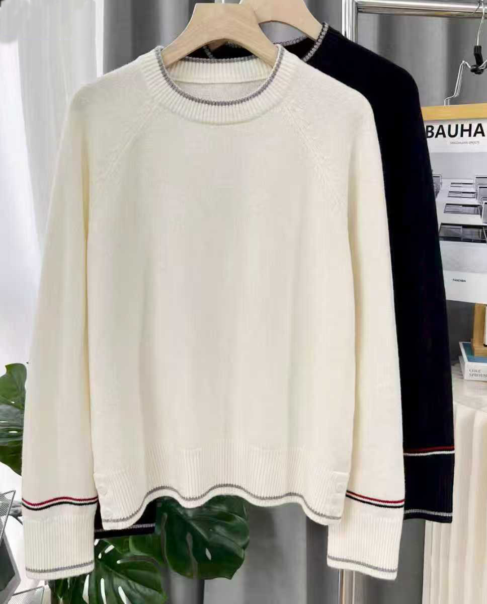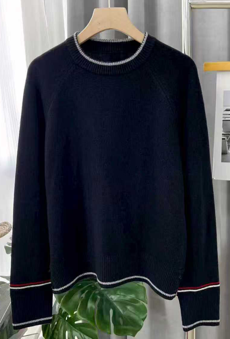 臣禾 【线描毛衫】100%绵羊毛 撞色领袖插肩袖套头针织衫 JZ254090396
