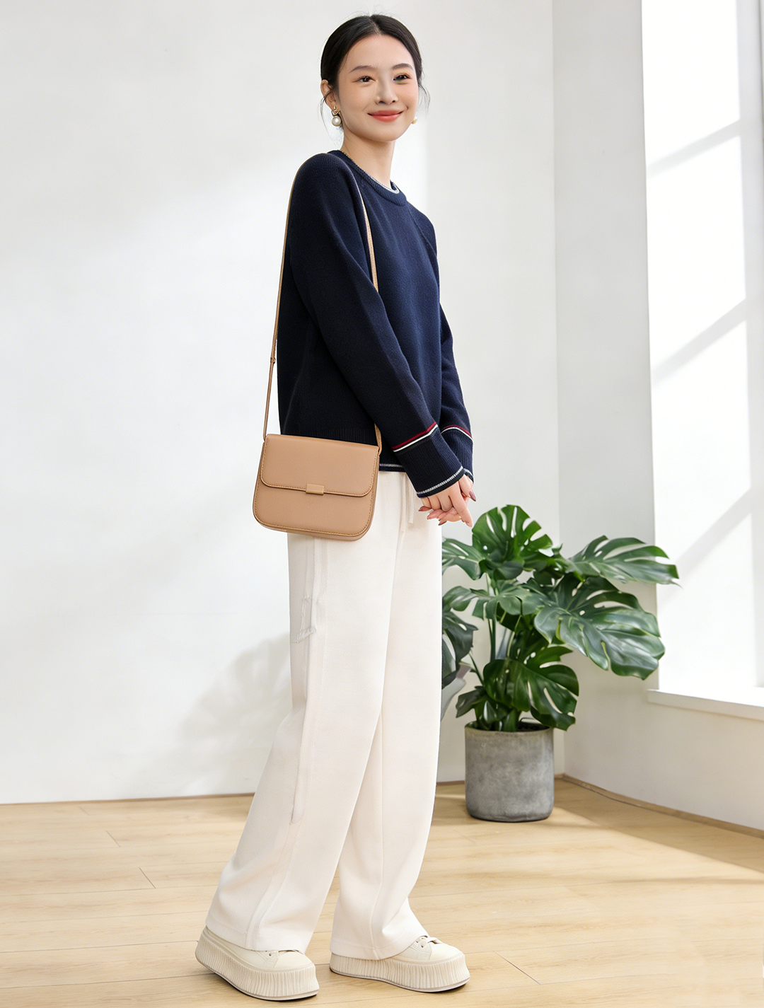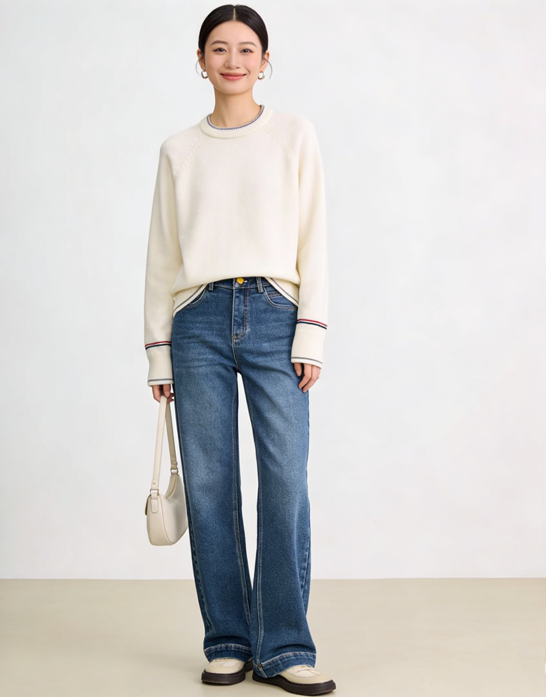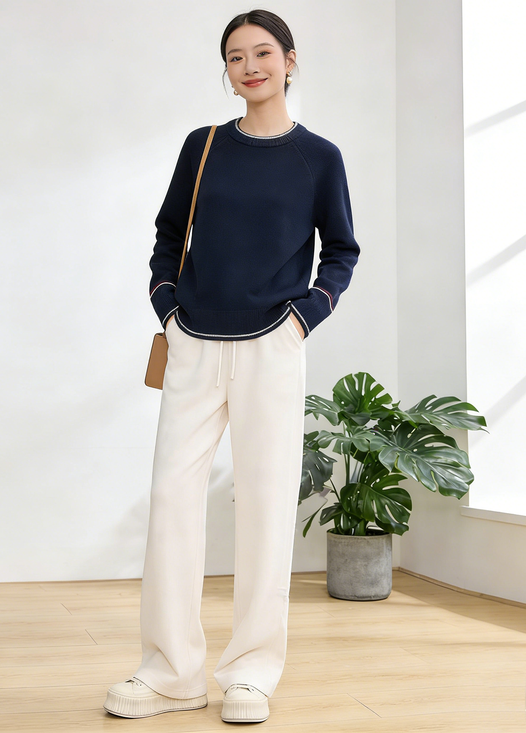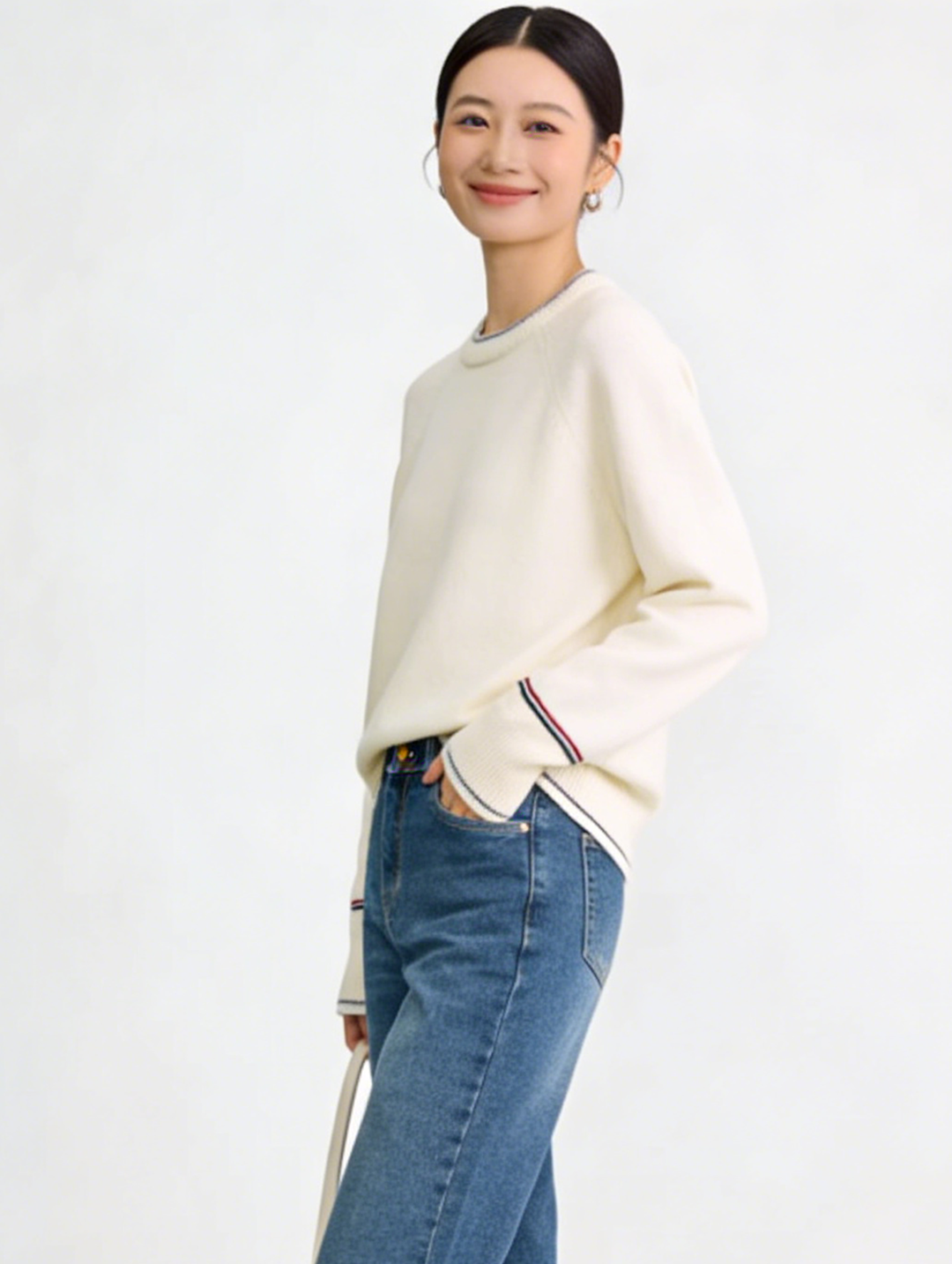 臣禾 【线描毛衫】100%绵羊毛 撞色领袖插肩袖套头针织衫 JZ254090396