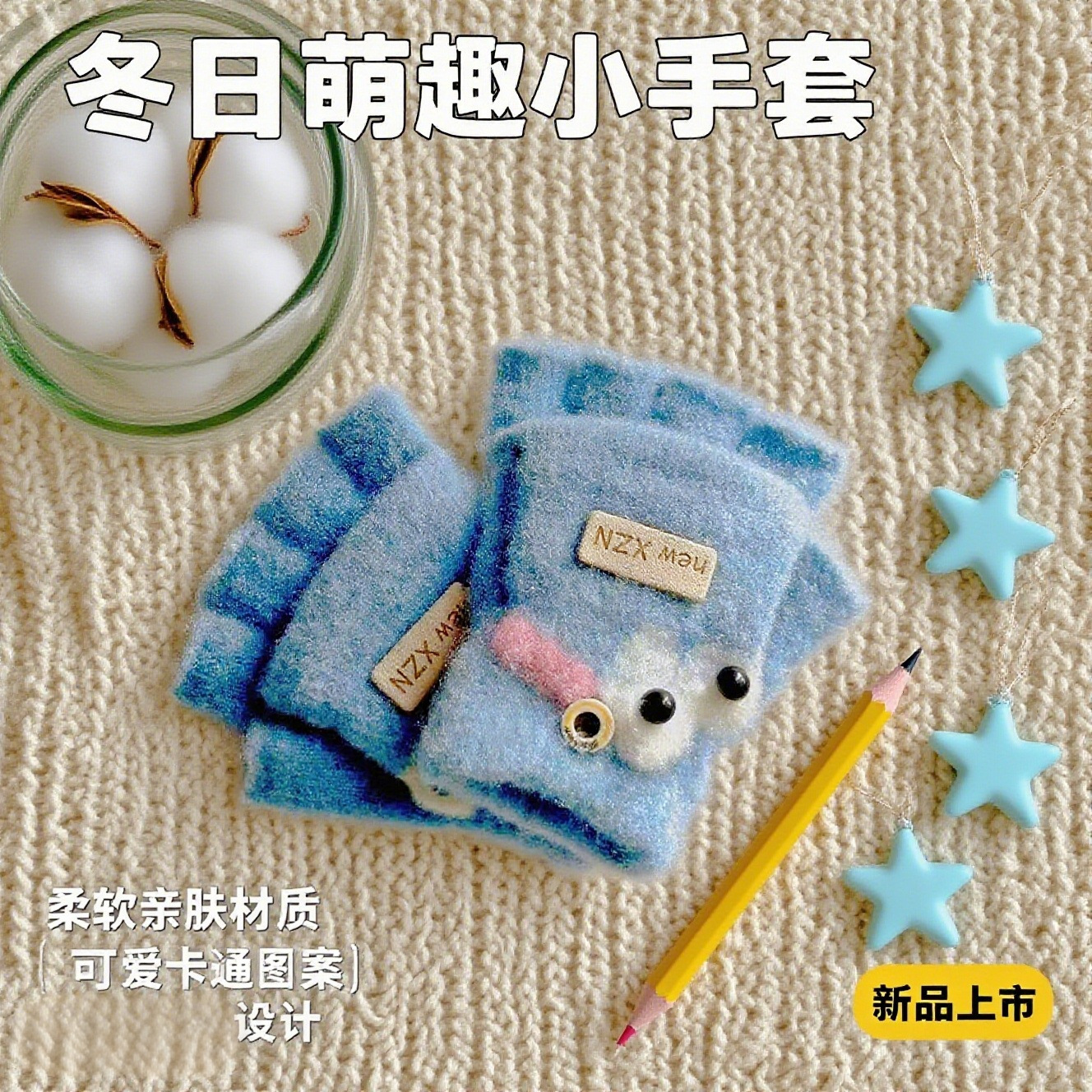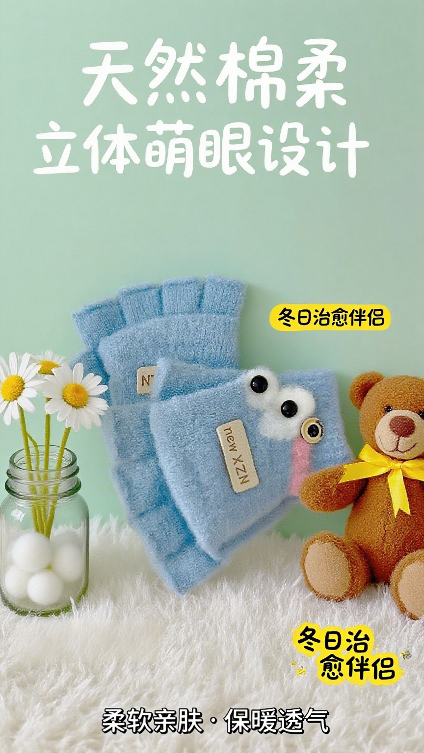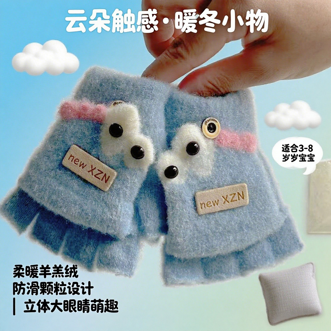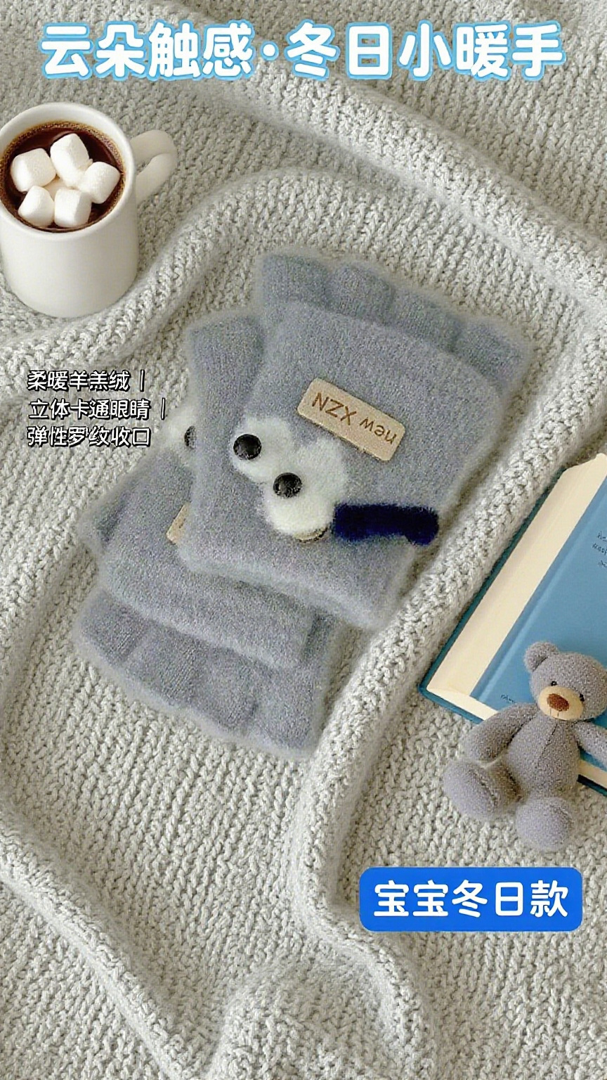 【云朵触感暖冬小物❗️柔暖羊羔绒亲肤材质】婴儿手套冬季保暖厚半指男女宝宝露指翻盖1幼儿3岁小孩可爱儿童。ja