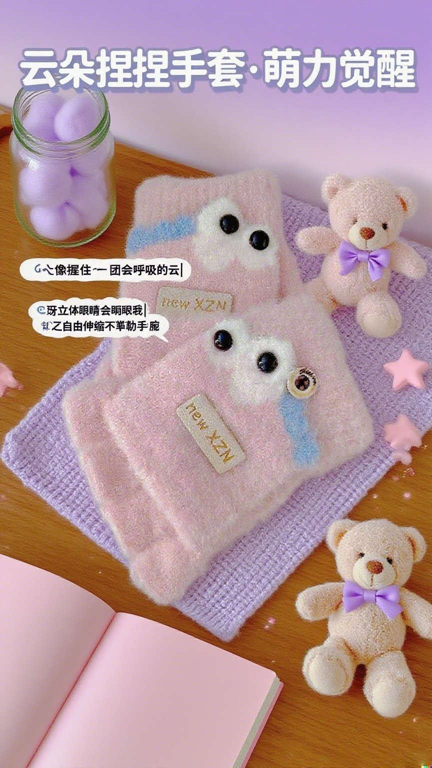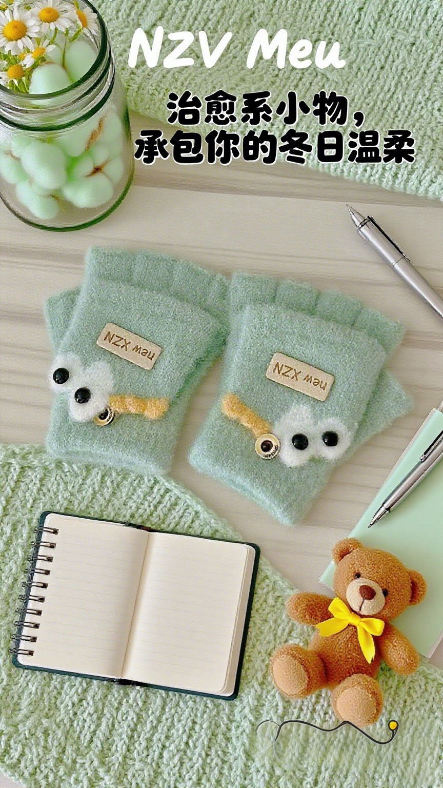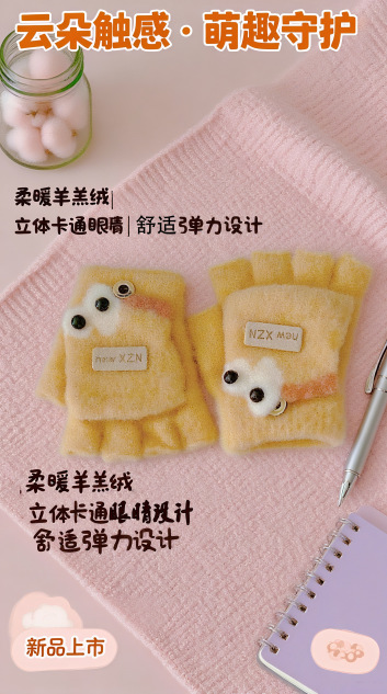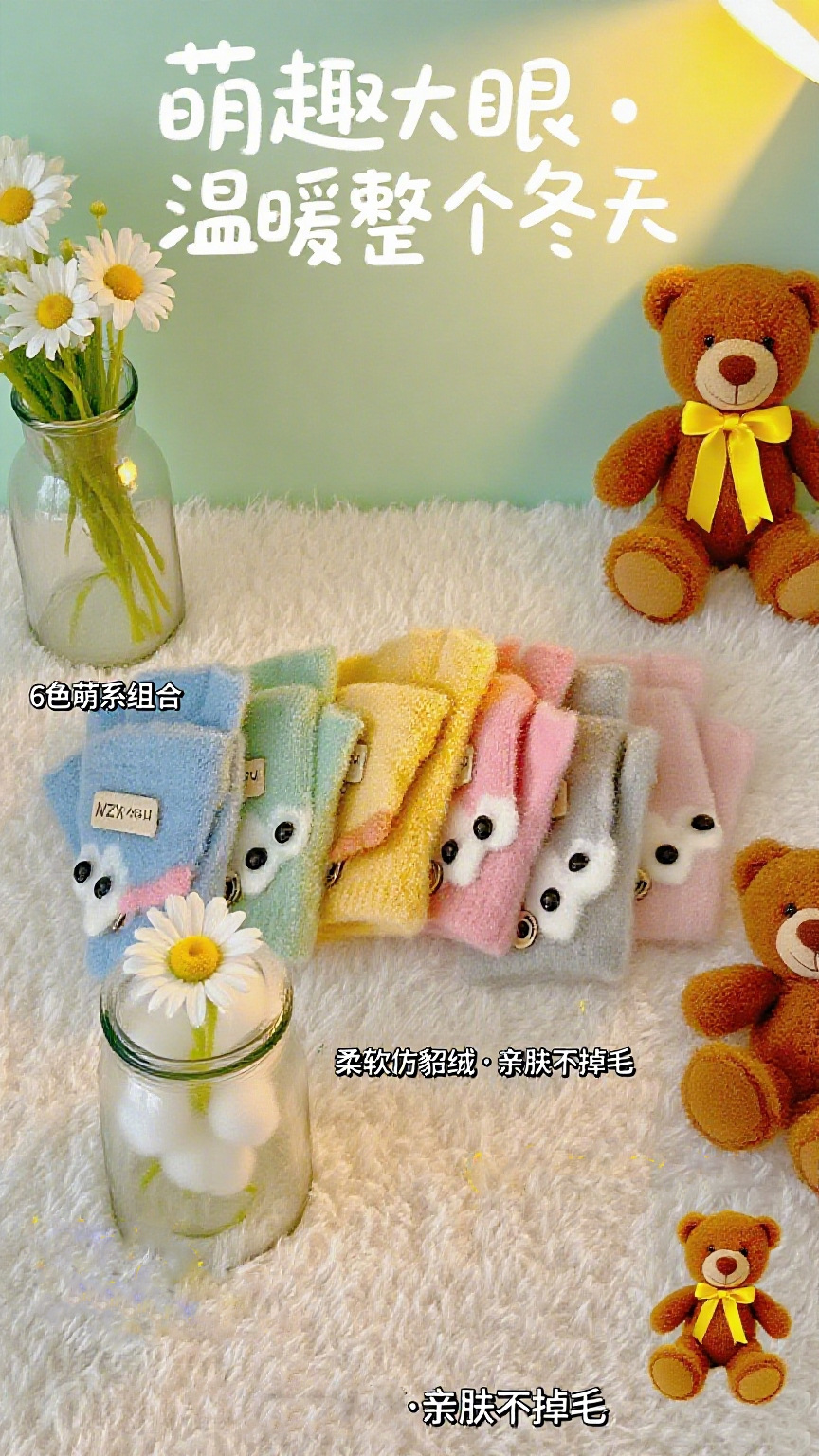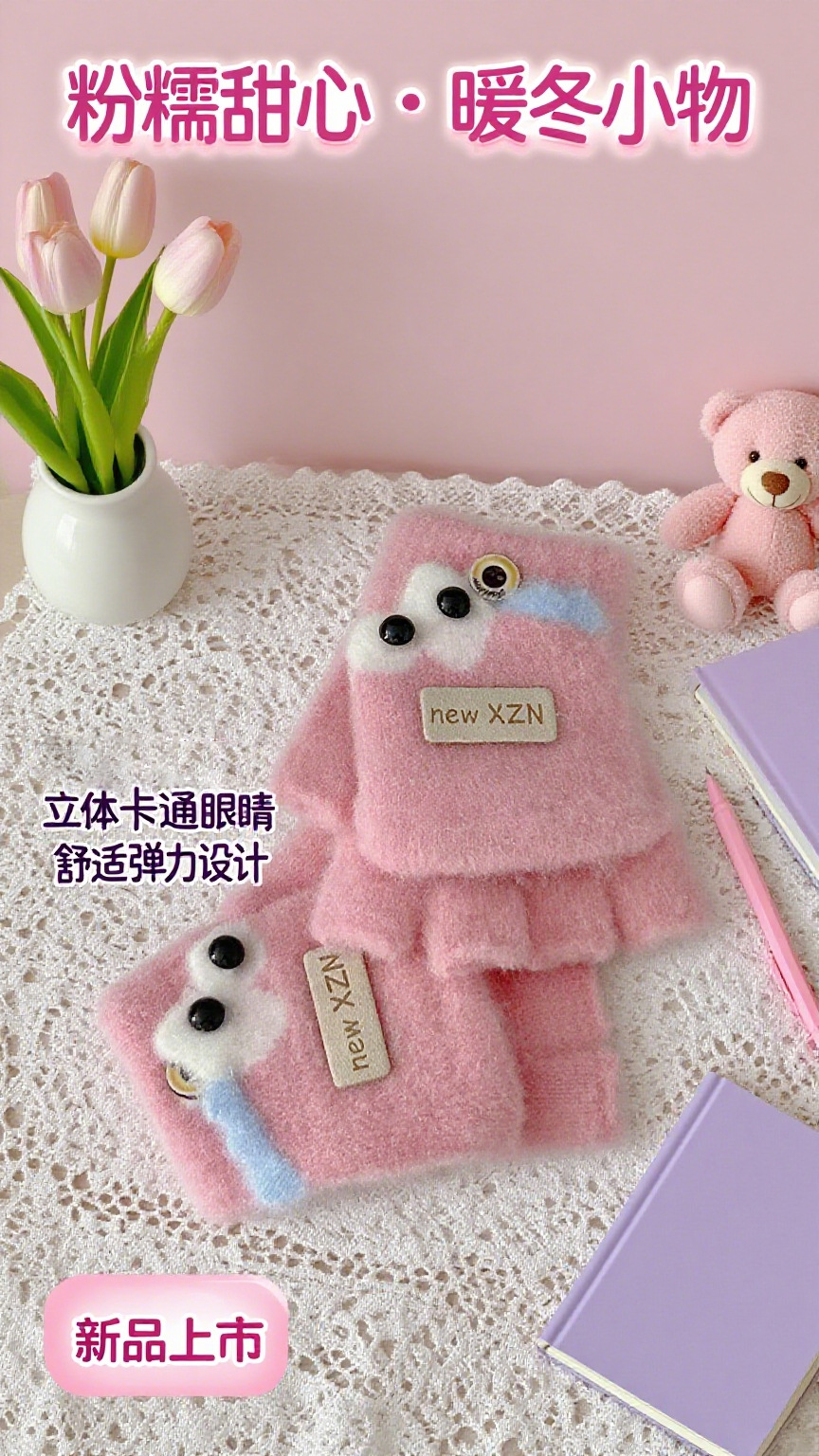 【云朵触感暖冬小物❗️柔暖羊羔绒亲肤材质】婴儿手套冬季保暖厚半指男女宝宝露指翻盖1幼儿3岁小孩可爱儿童。ja