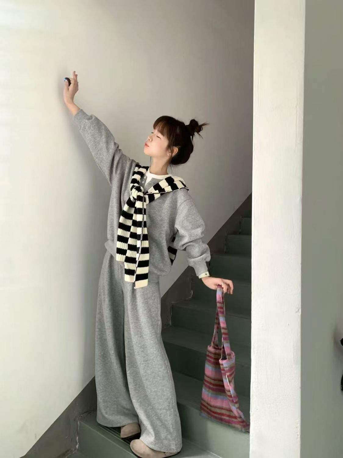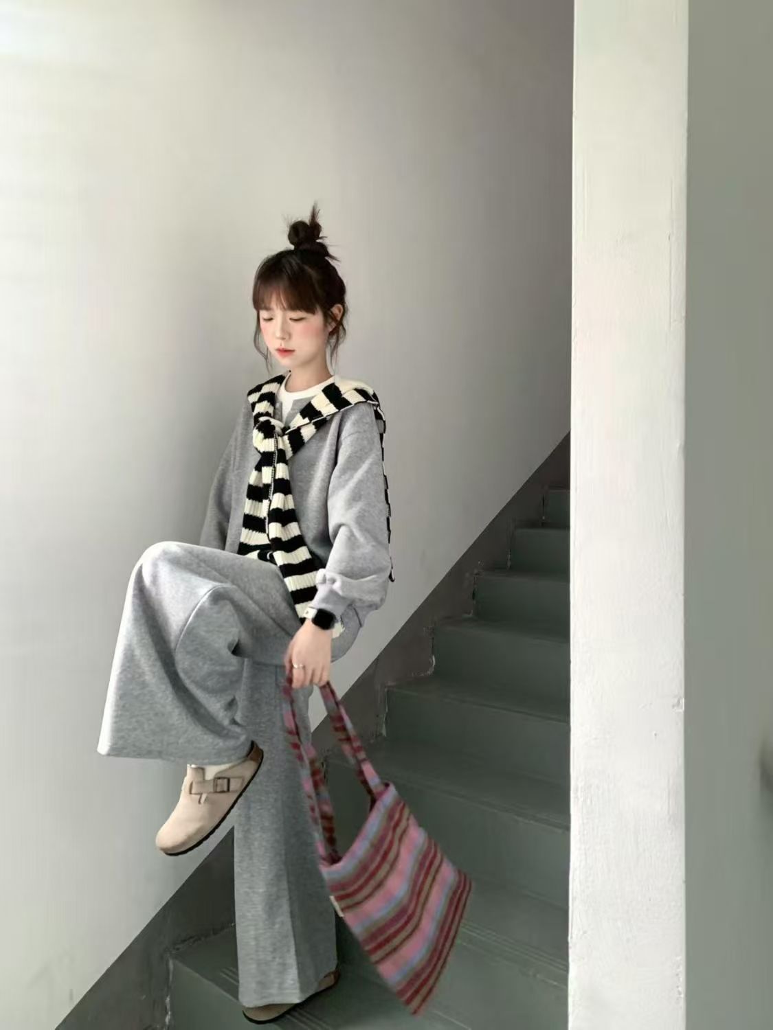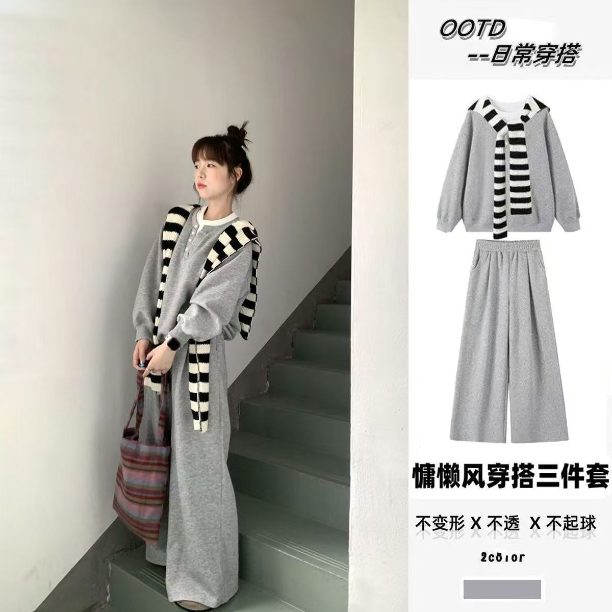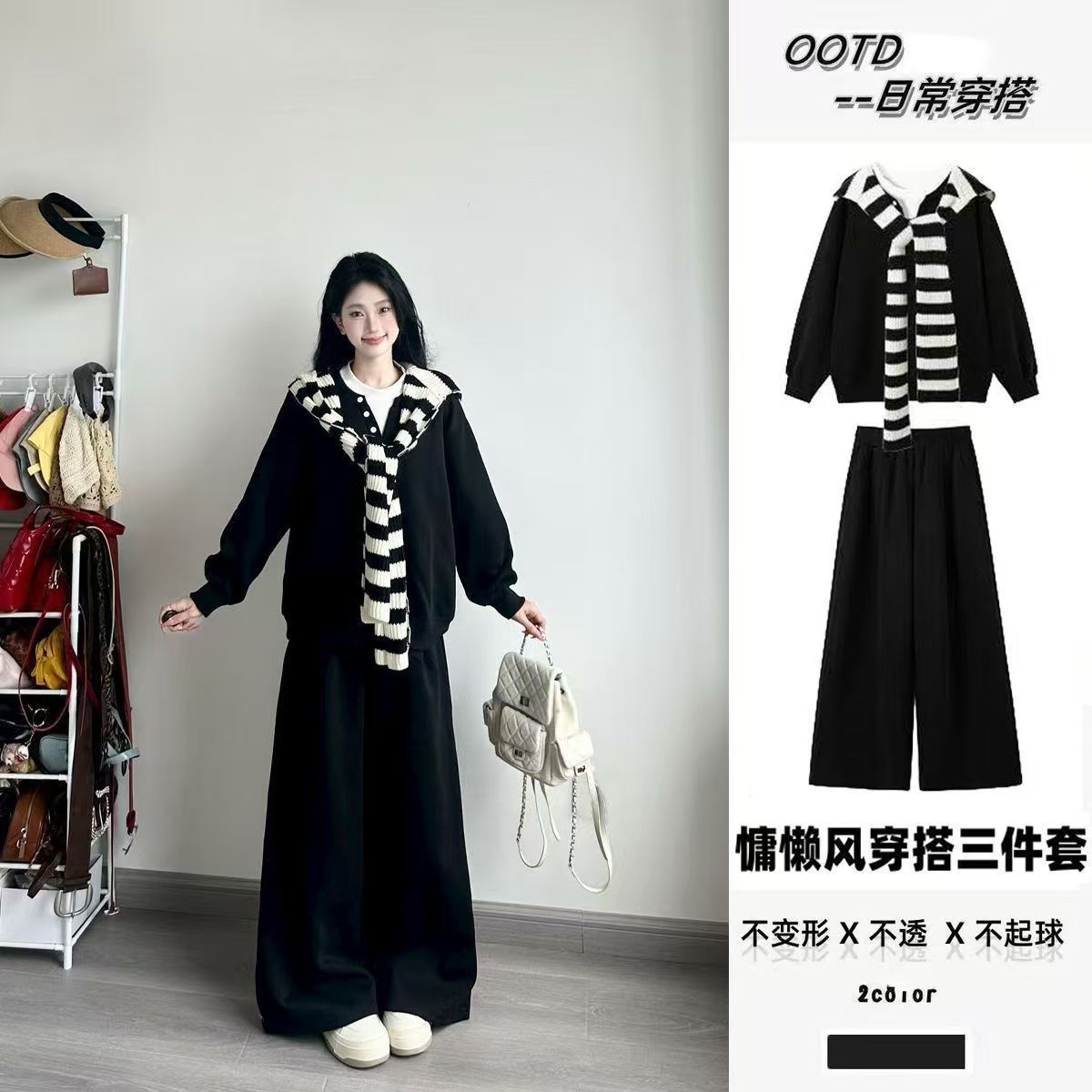 【懒人福音❗️柔软亲肤】蓝色带披肩长袖卫衣女套装2025秋冬新款慵懒宽松休闲运动三件套潮。jc