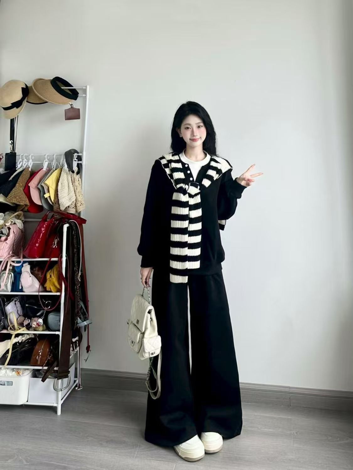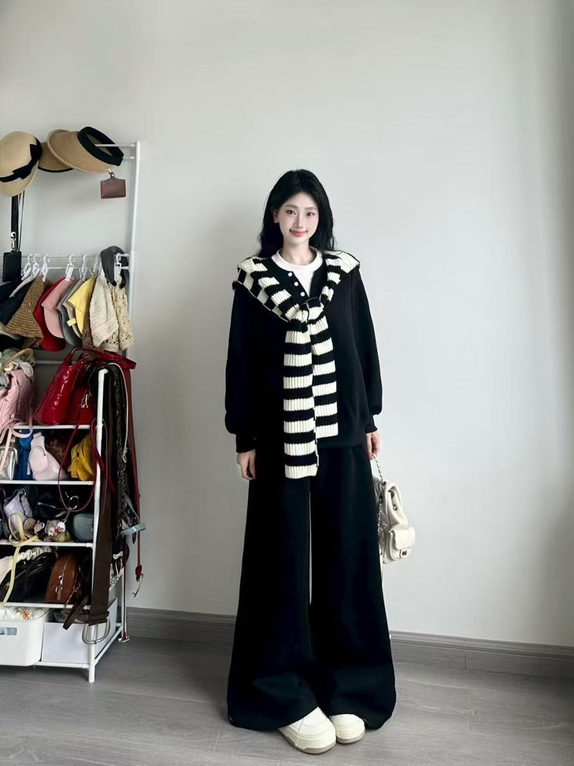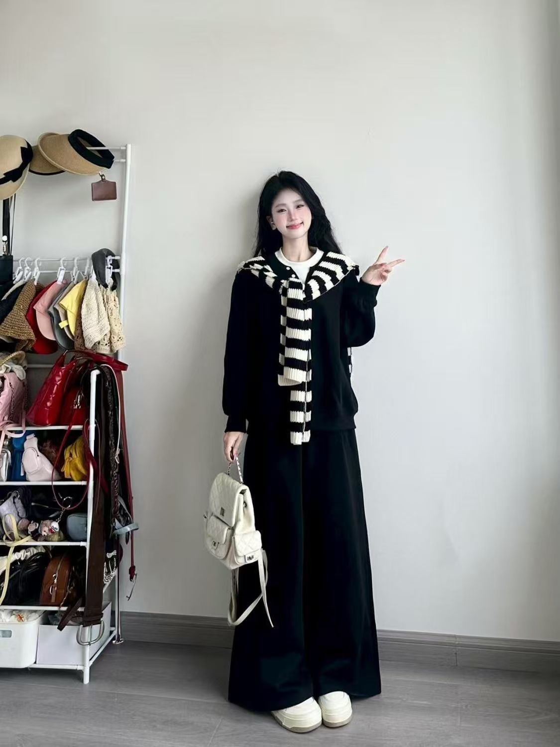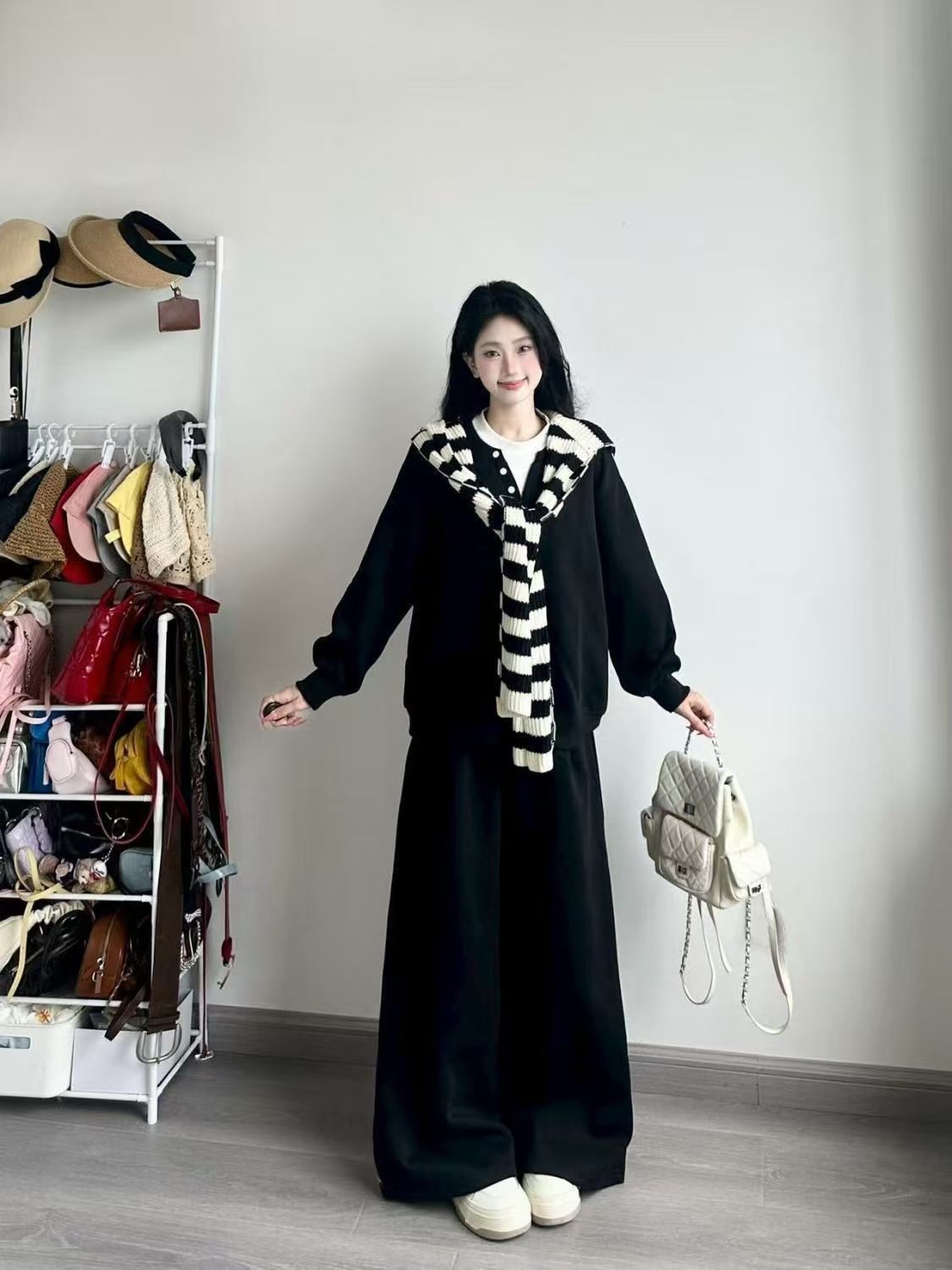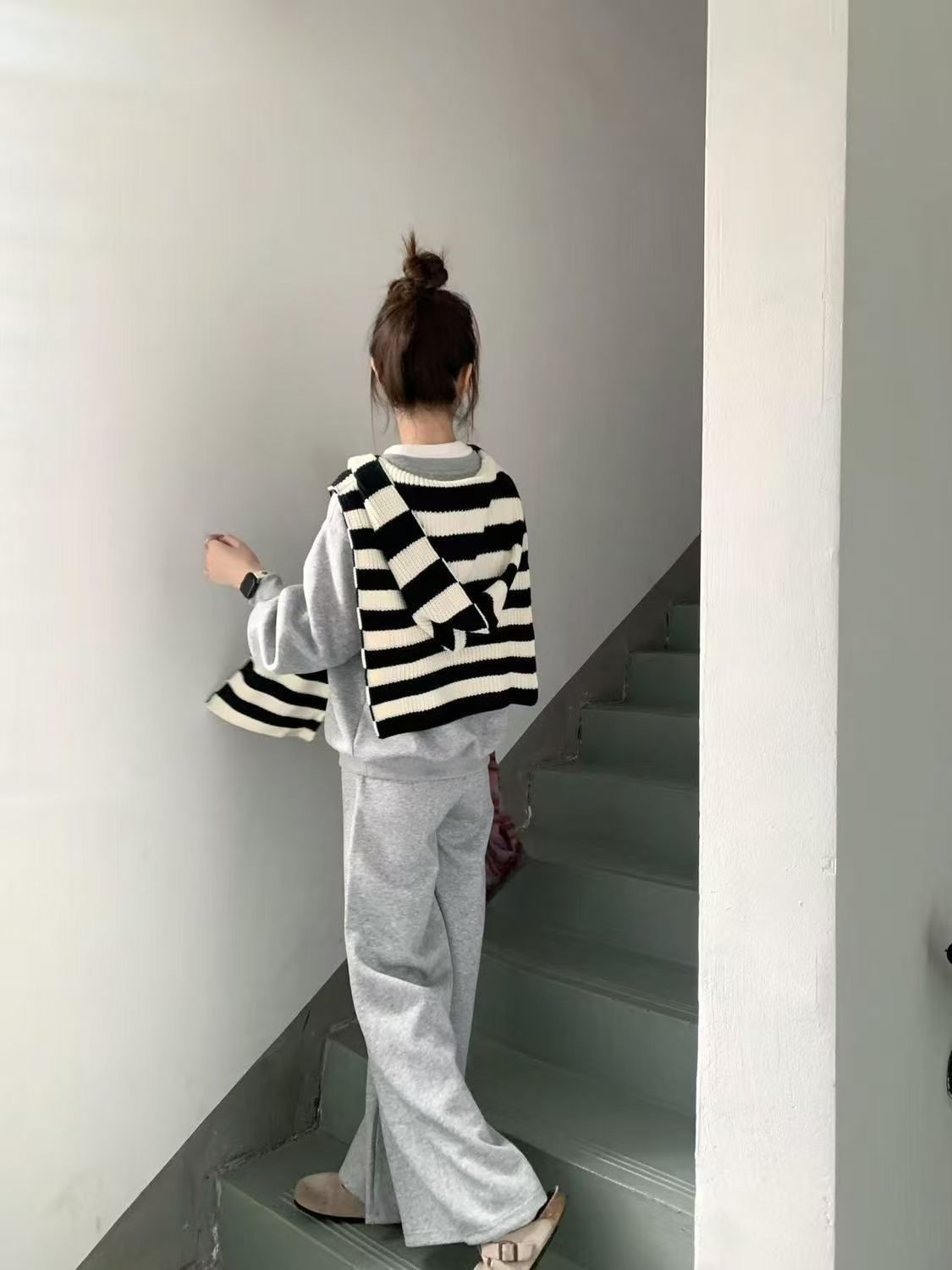 【懒人福音❗️柔软亲肤】蓝色带披肩长袖卫衣女套装2025秋冬新款慵懒宽松休闲运动三件套潮。jc