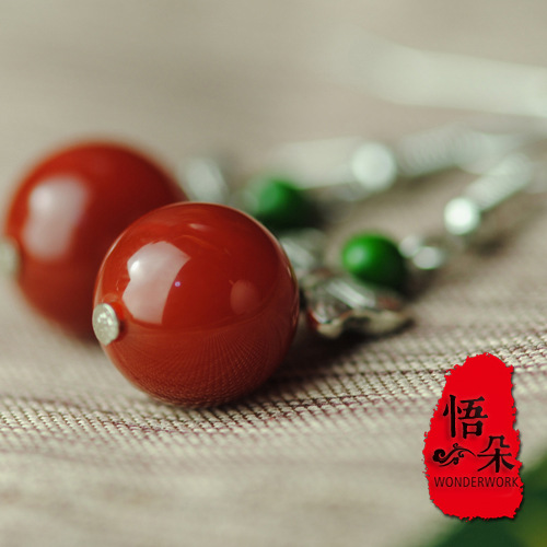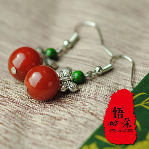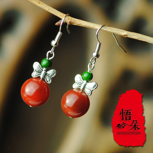 JGL-03100004简约耳环 民族饰品设计 苗银蝴蝶玛瑙耳饰耳坠