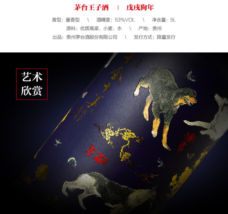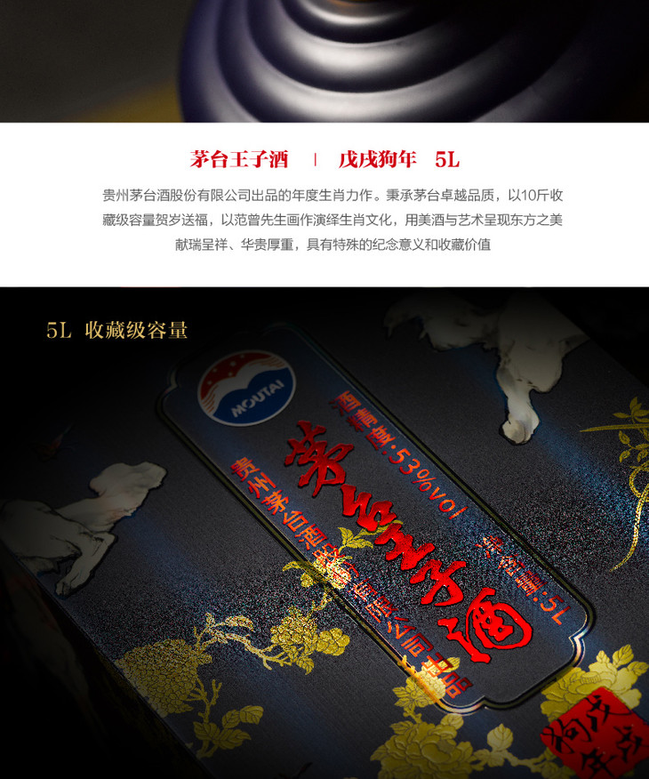 【火爆预售】茅台股份 王子戊戌狗年 十全十美 酱香型 53度 5L