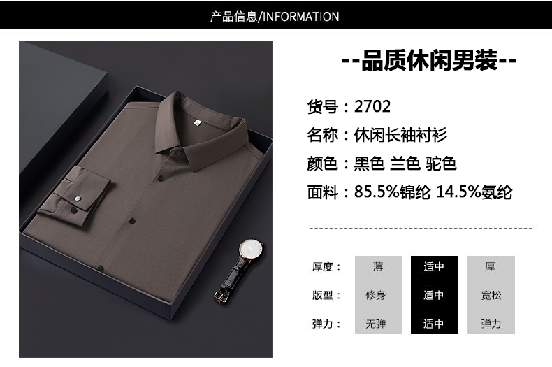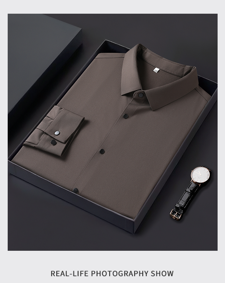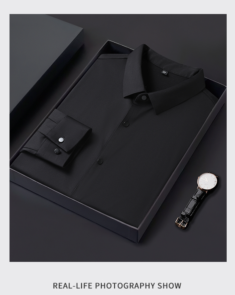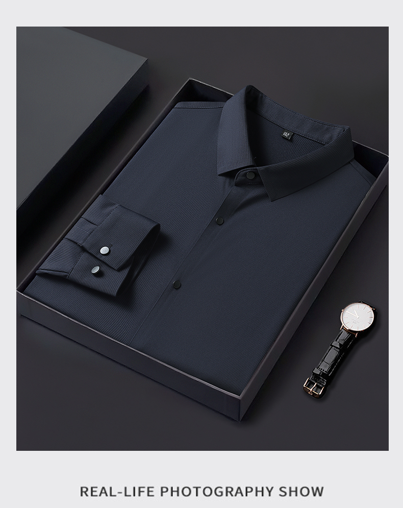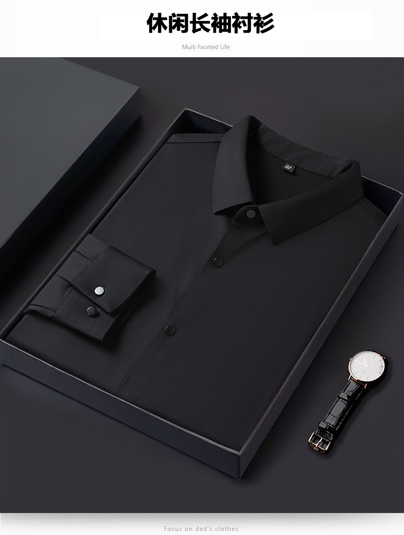 【新款DWP】大依优型大码弹力长袖衬衫翻领男装加肥加大体恤大号上衣胖子商务休闲