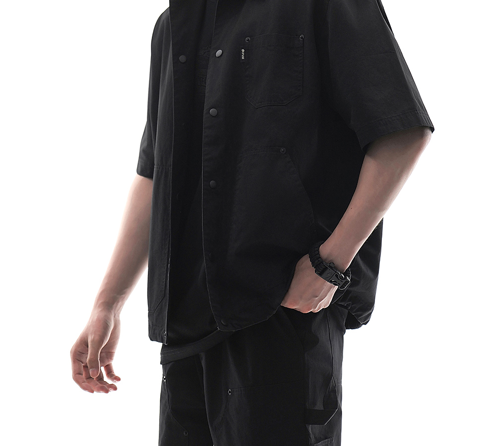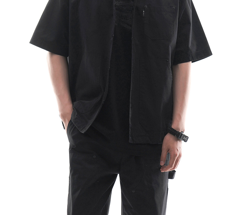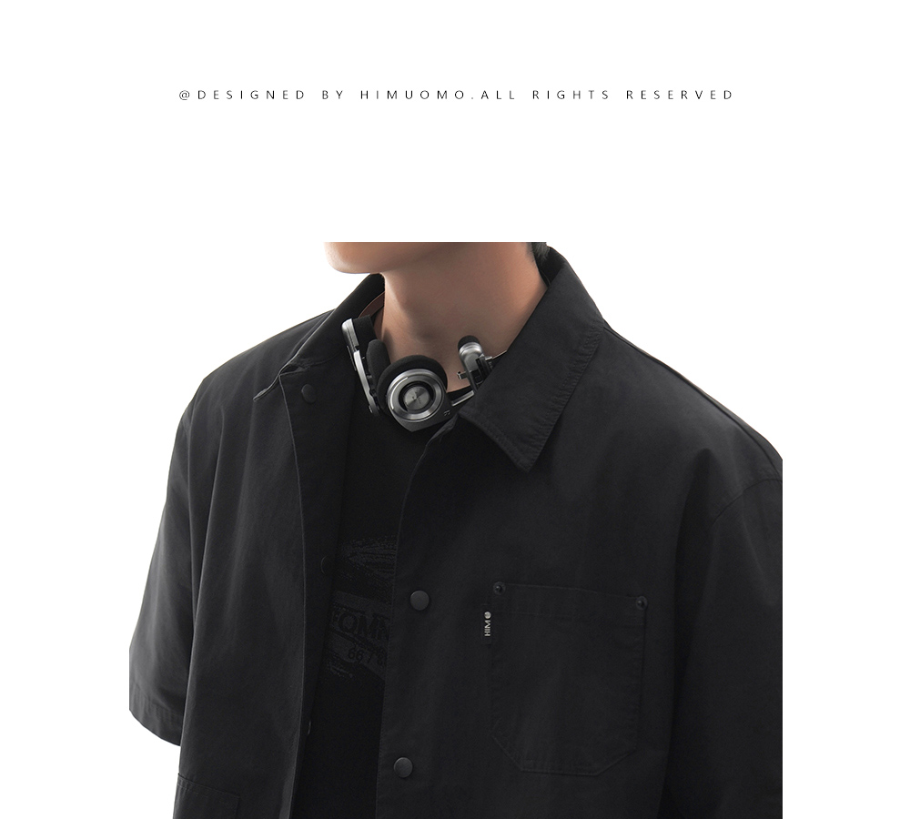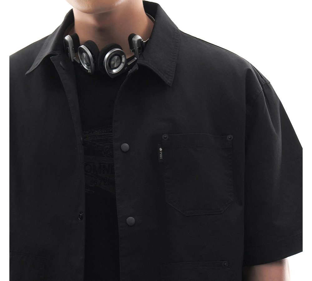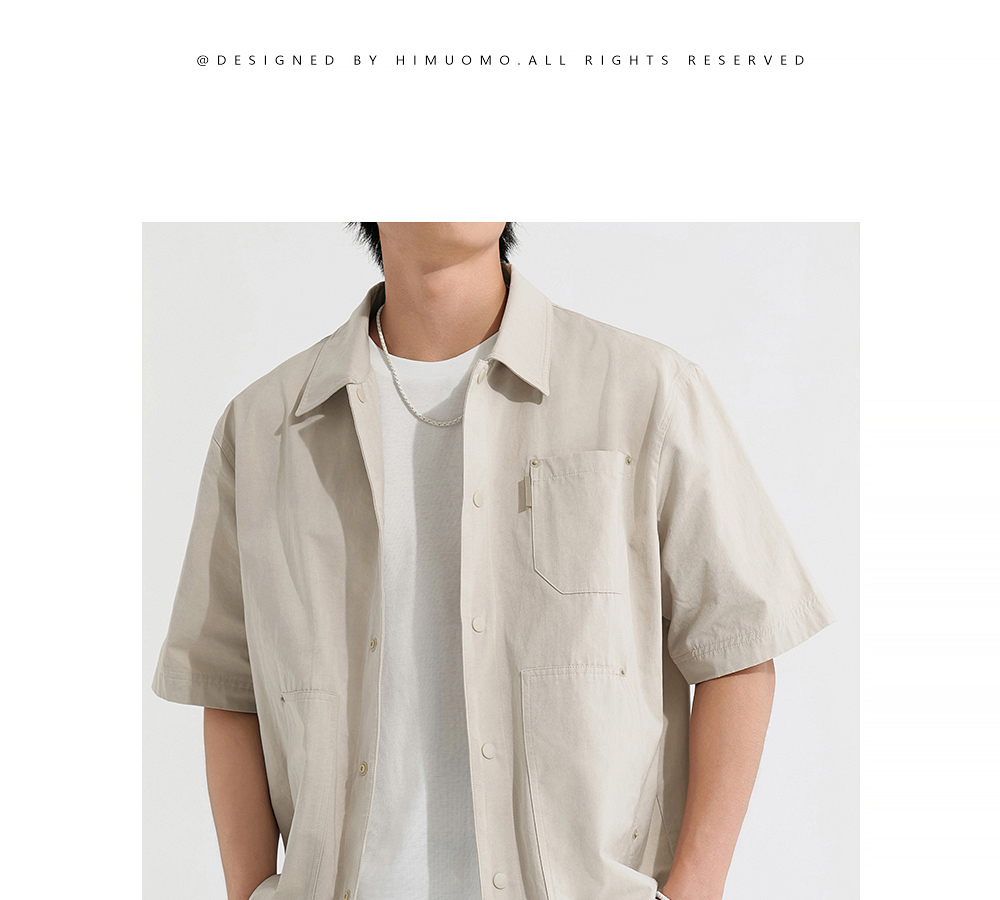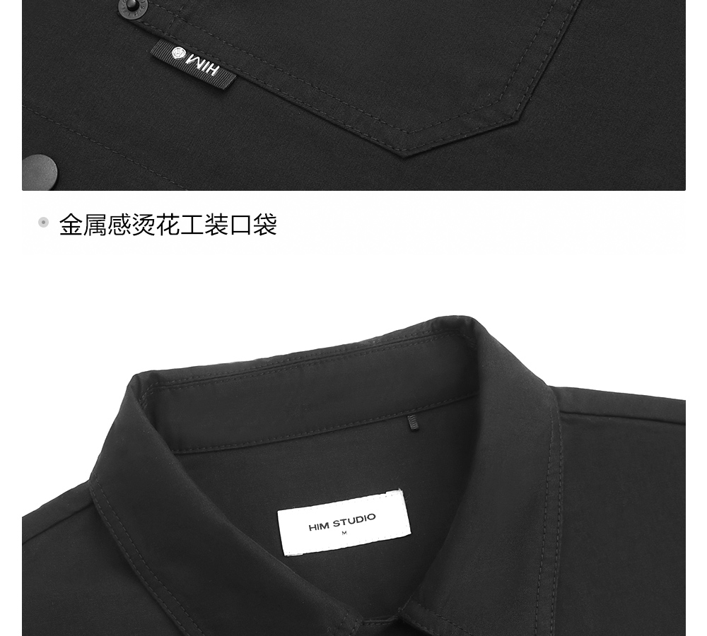 HIM漢崇 简约口袋宽松短袖衬衫设计感工装休闲衬衣男 2026春季