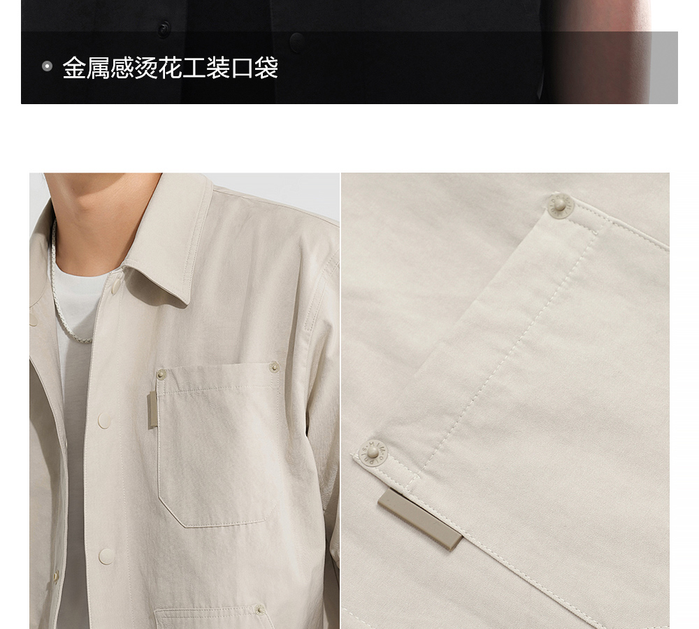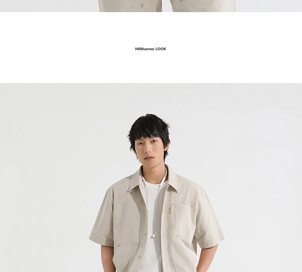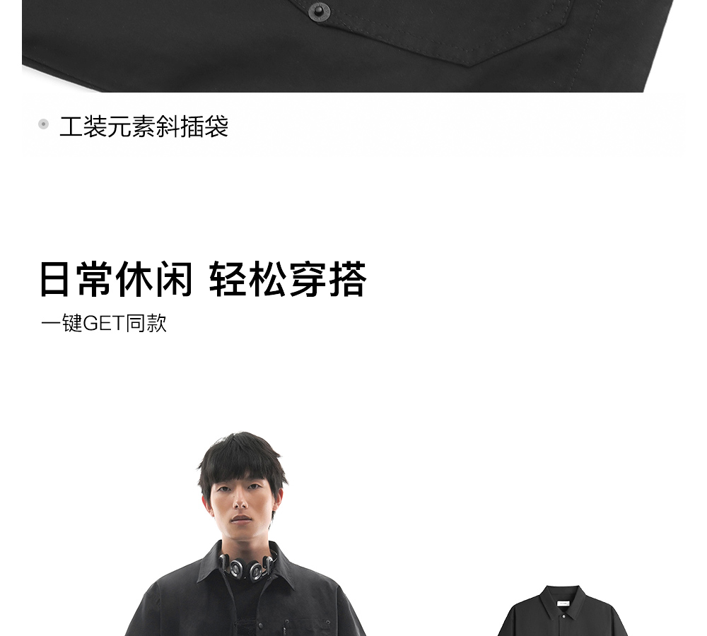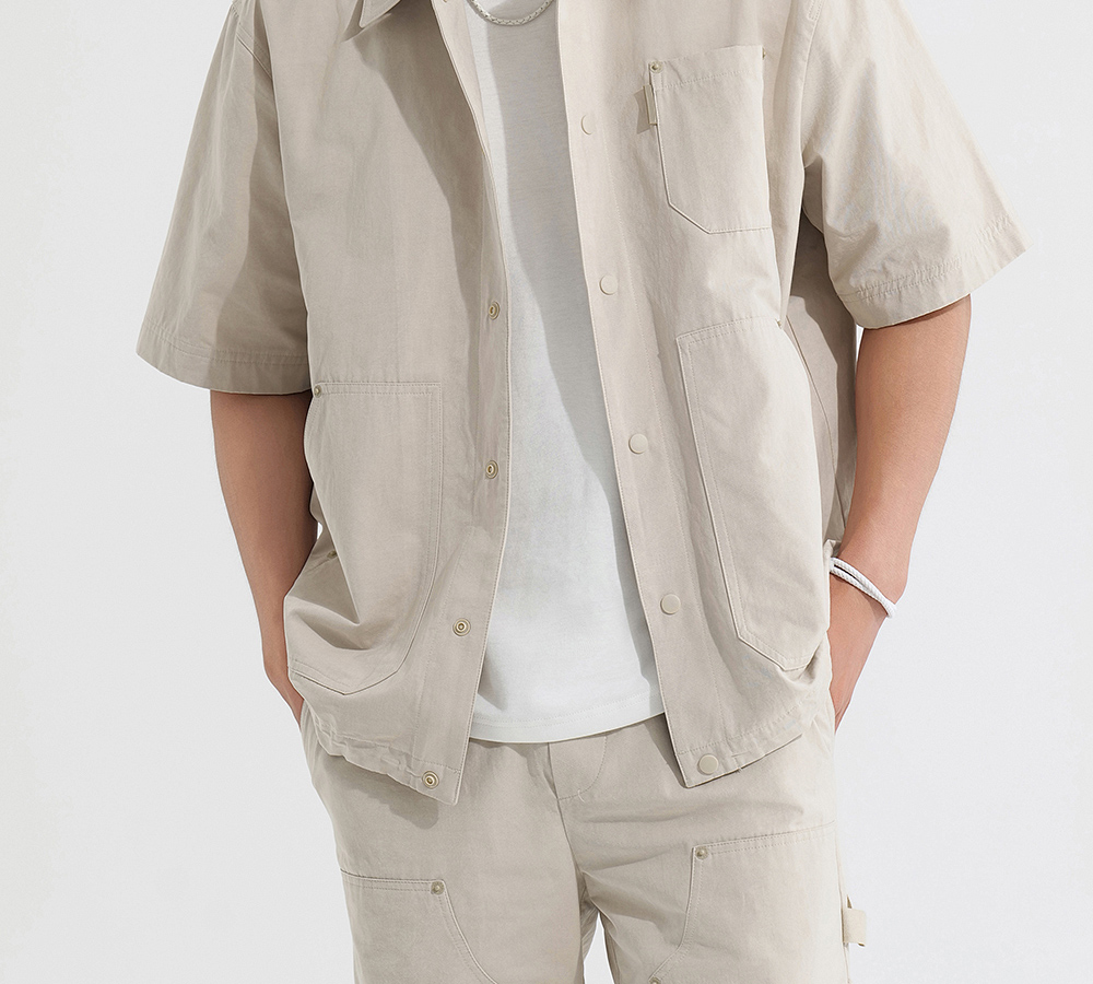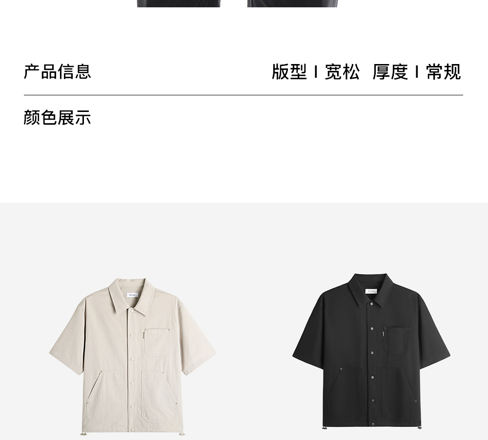 HIM漢崇 简约口袋宽松短袖衬衫设计感工装休闲衬衣男 2026春季