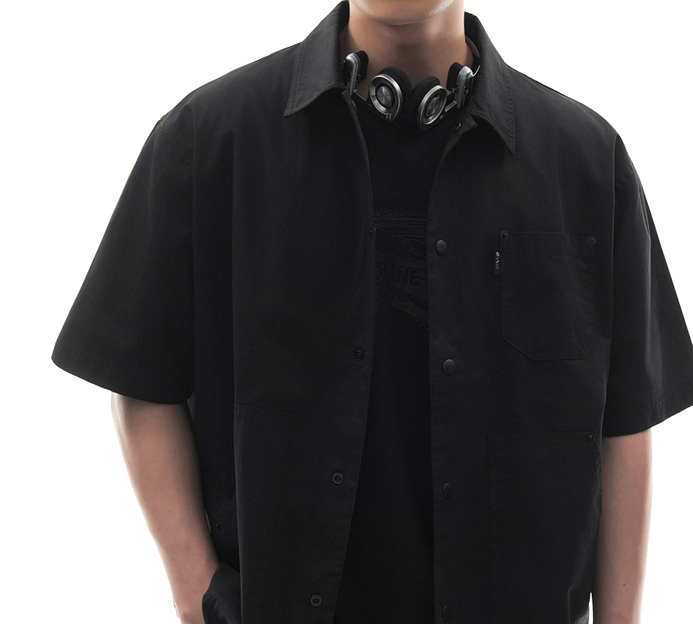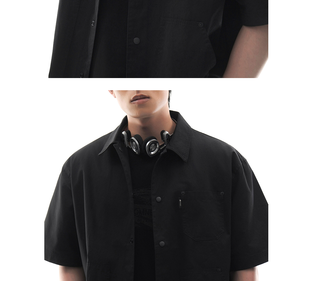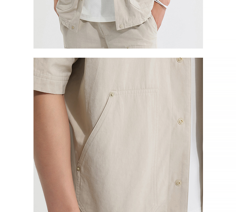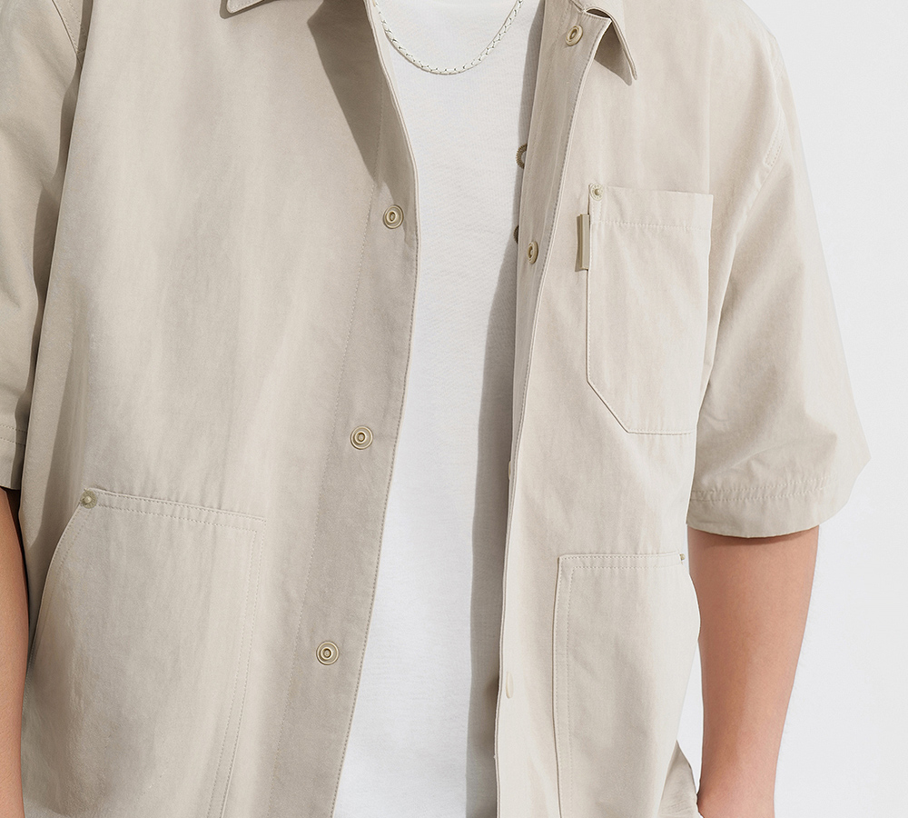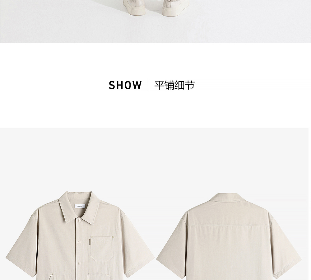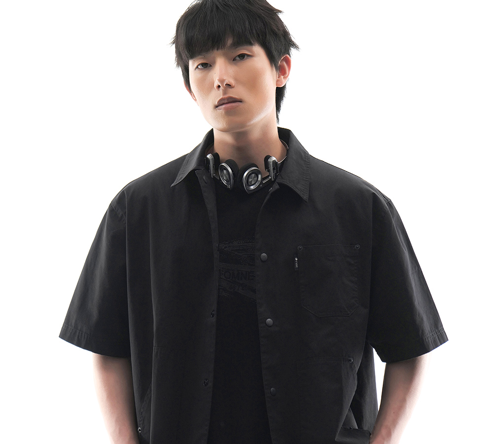HIM漢崇 简约口袋宽松短袖衬衫设计感工装休闲衬衣男 2026春季