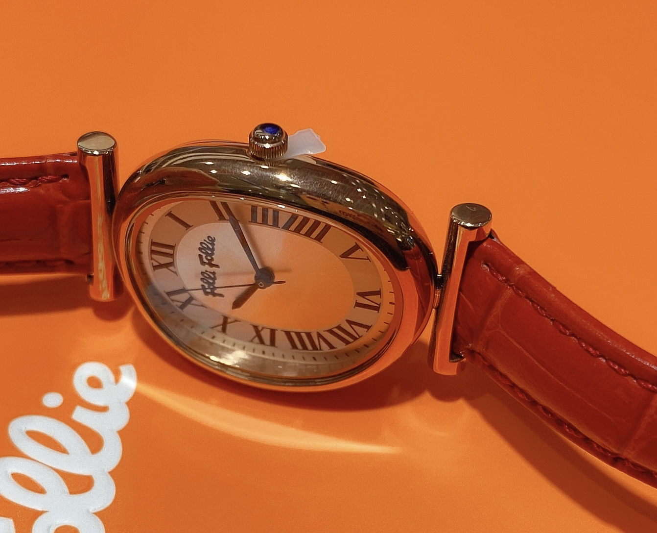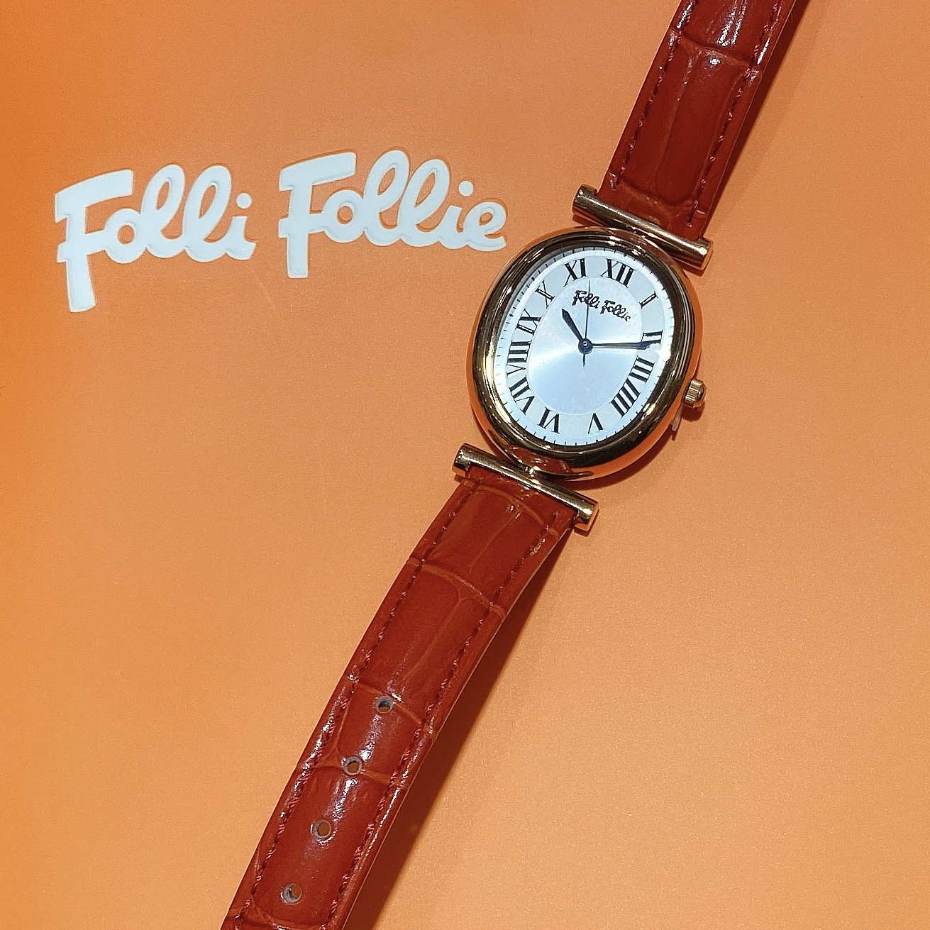芙丽芙丽/Folli Follie 女时尚石英表椭圆表盘红色皮表带