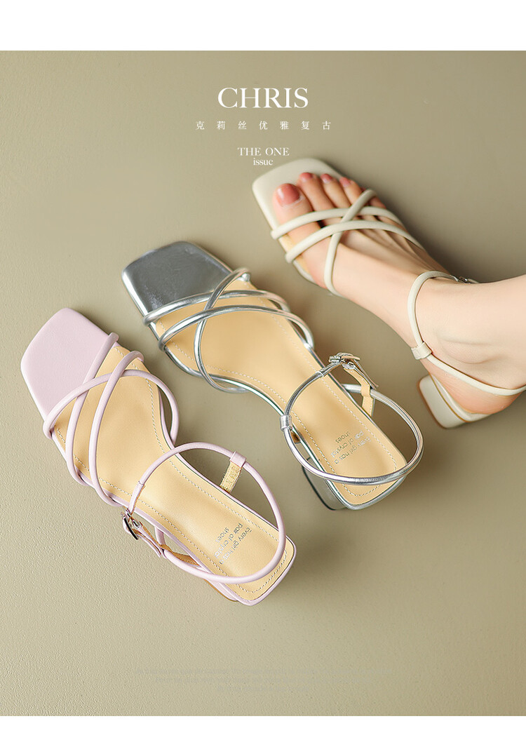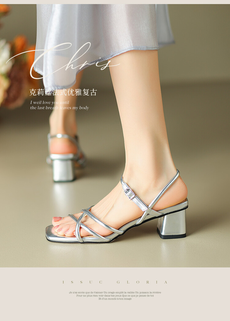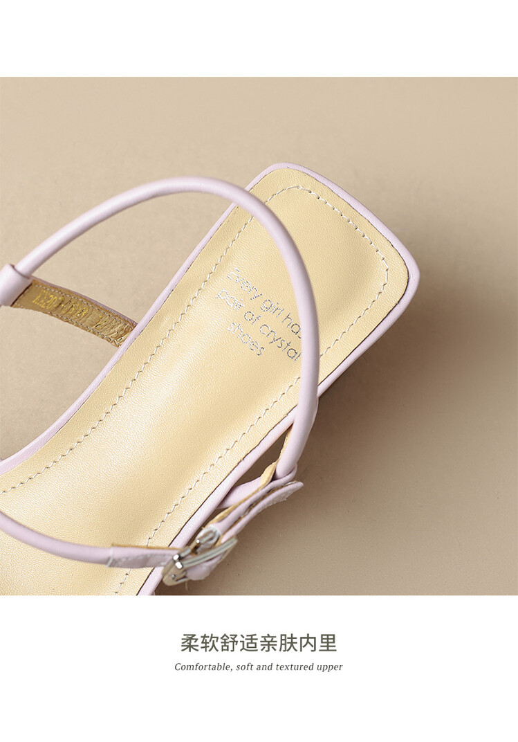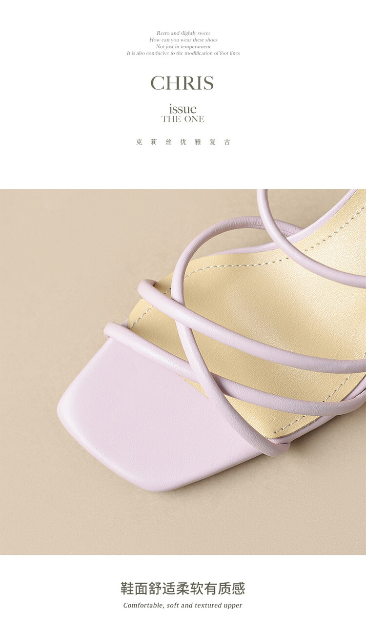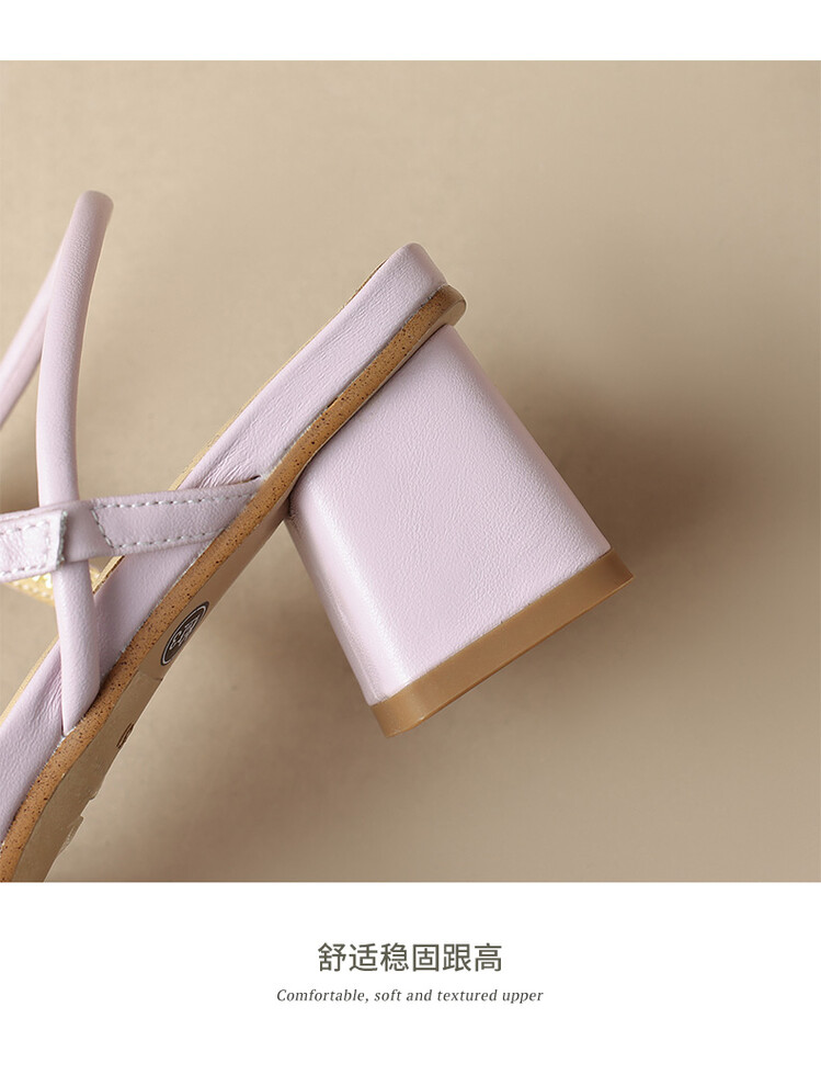 【预售5天】法式中跟粗跟真皮,细带简约百搭一字带凉鞋HB&Z508