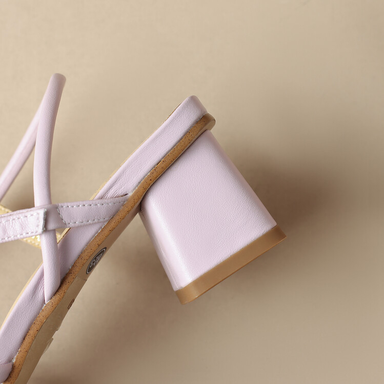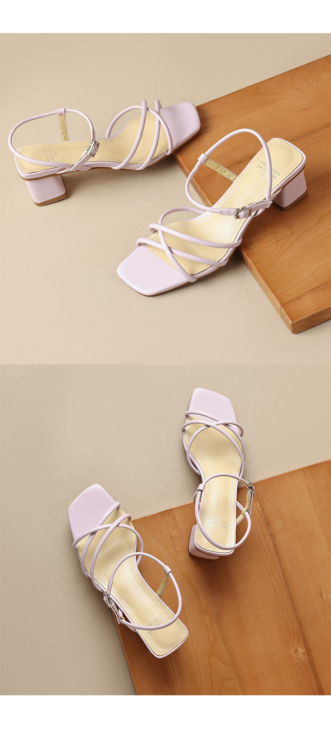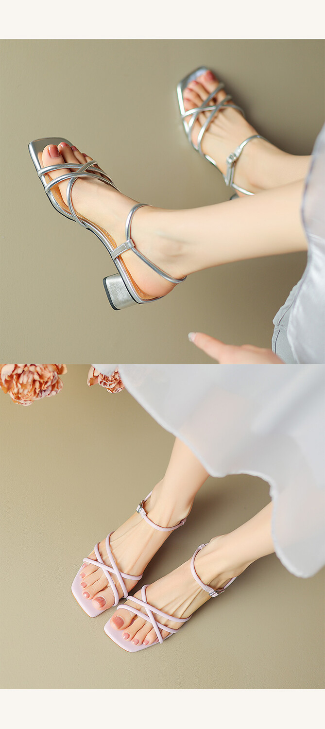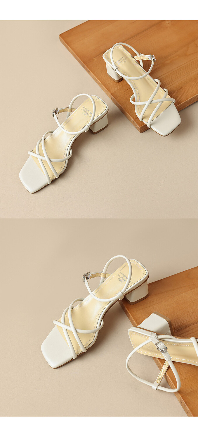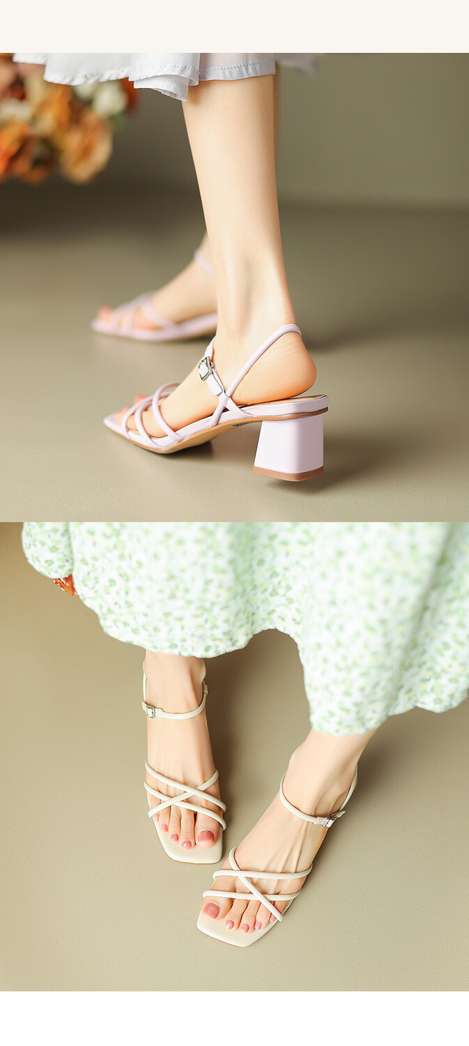 【预售5天】法式中跟粗跟真皮,细带简约百搭一字带凉鞋HB&Z508