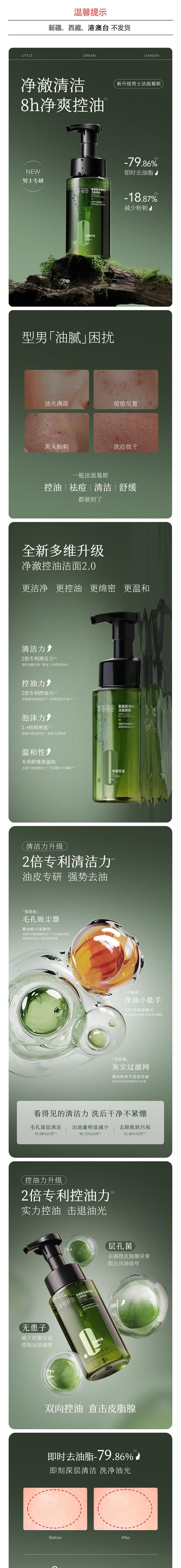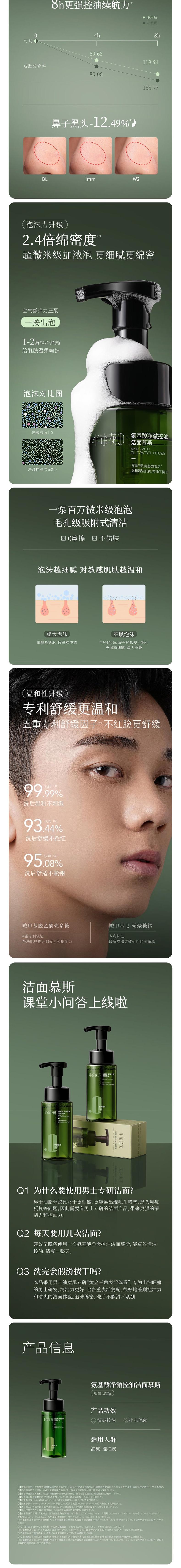 半亩花田 氨基酸净澈控油洁面慕斯(男士款)200g BMHT-787