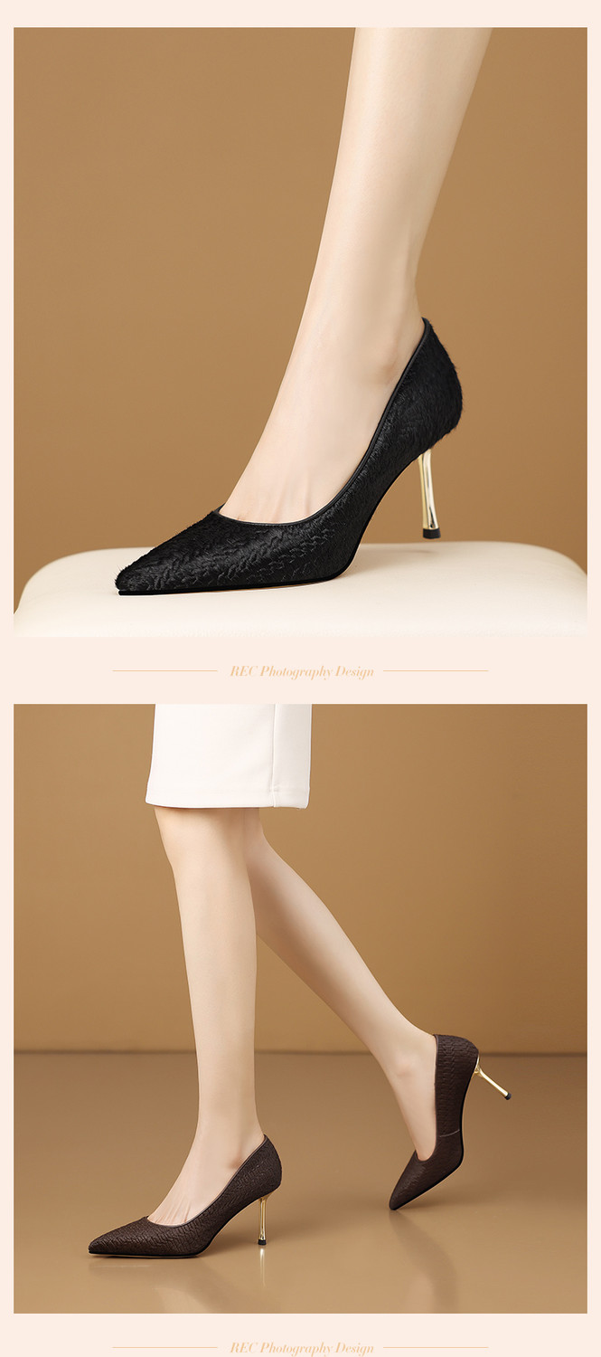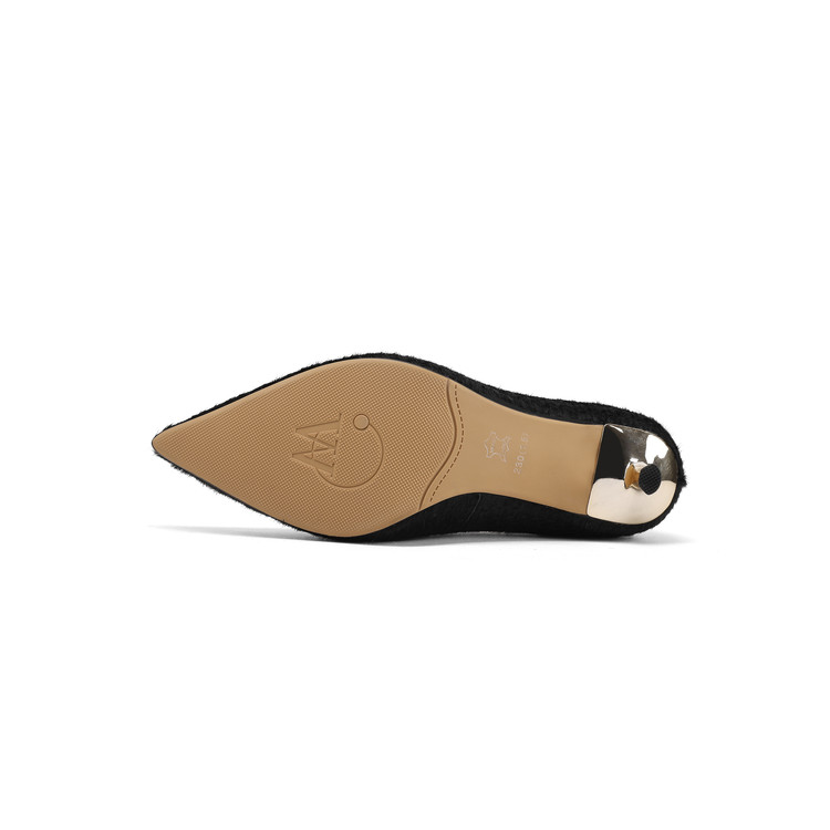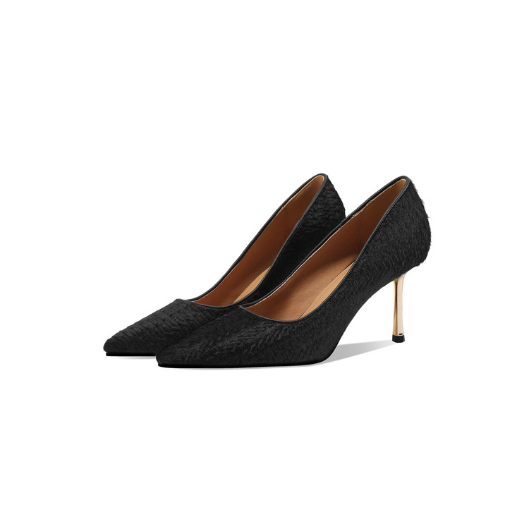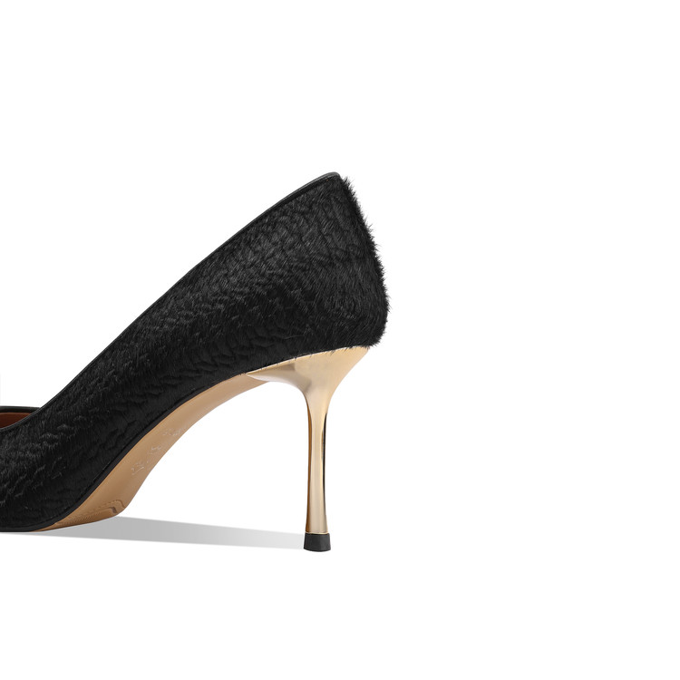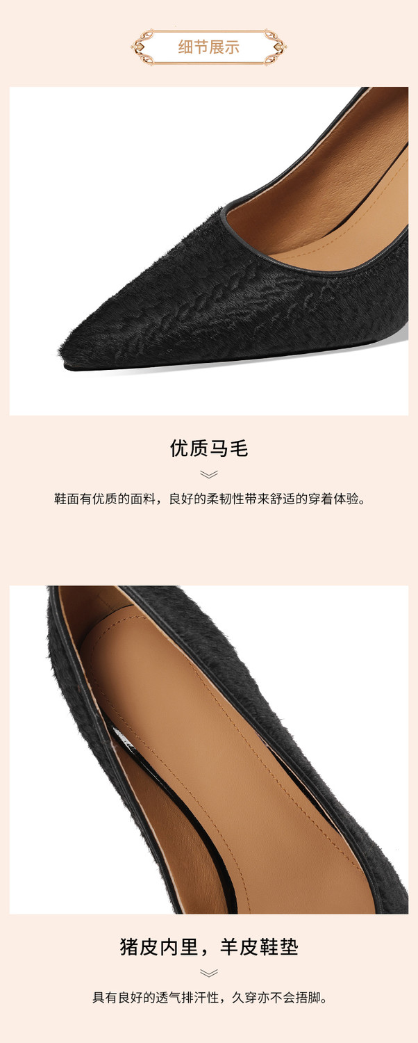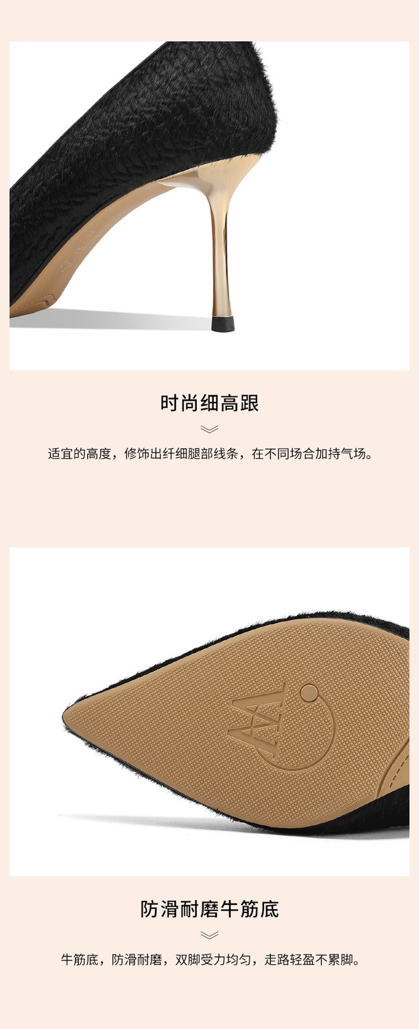 【预售5天】马毛皮细跟气质高跟鞋女春秋新款尖头通勤百搭浅口单鞋女时装鞋HY&H3695