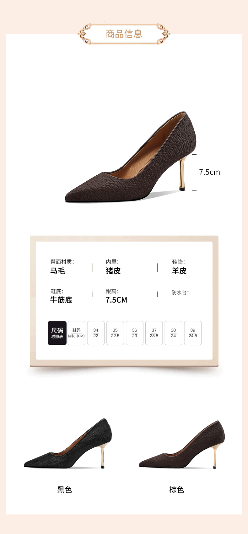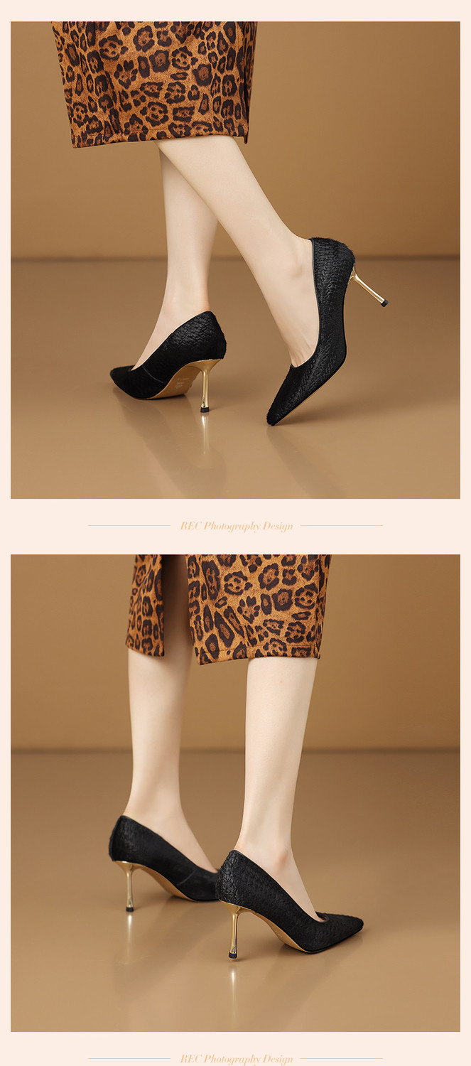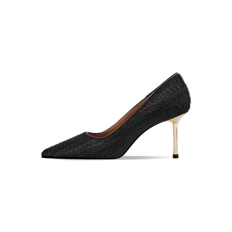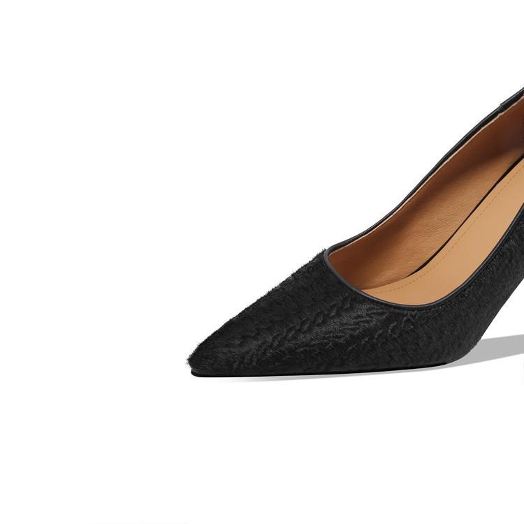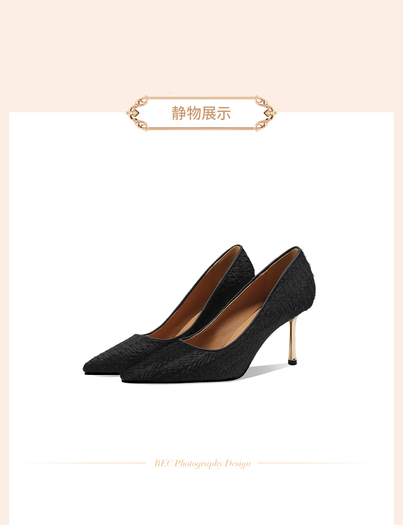 【预售5天】马毛皮细跟气质高跟鞋女春秋新款尖头通勤百搭浅口单鞋女时装鞋HY&H3695