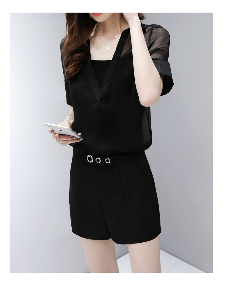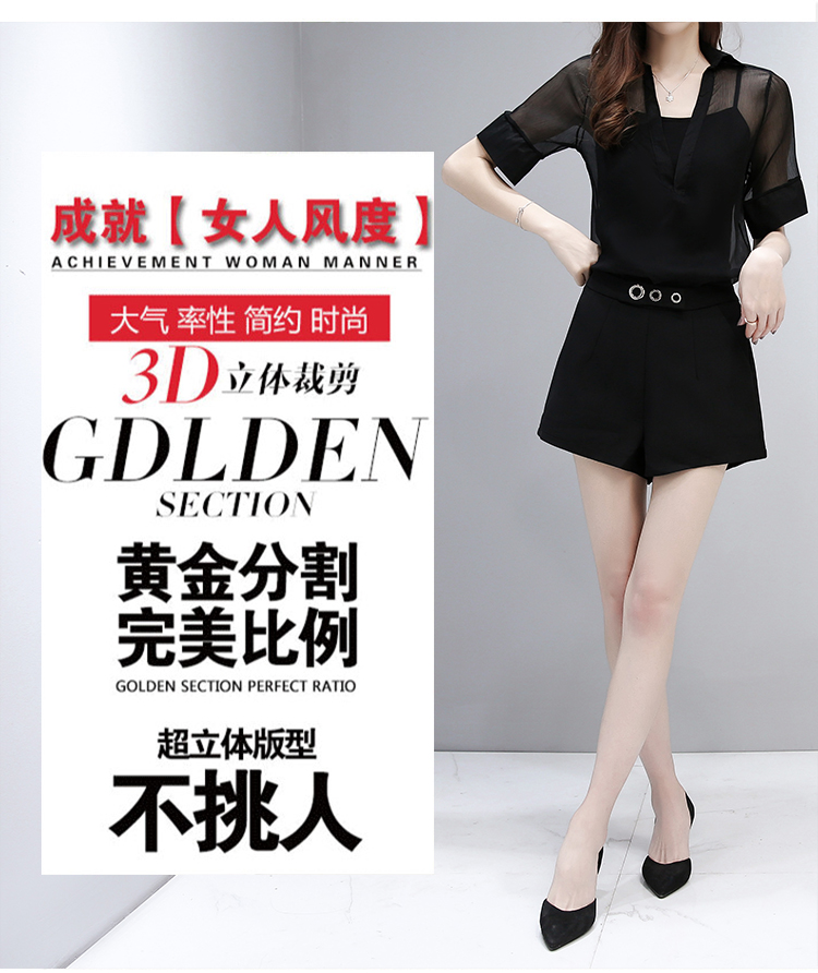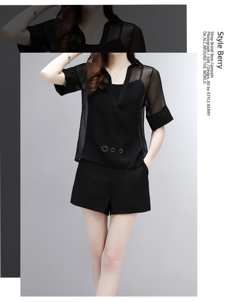 WZNH-SLYY8919夏季性感透视宽松大V领短袖罩衫吊带两件套