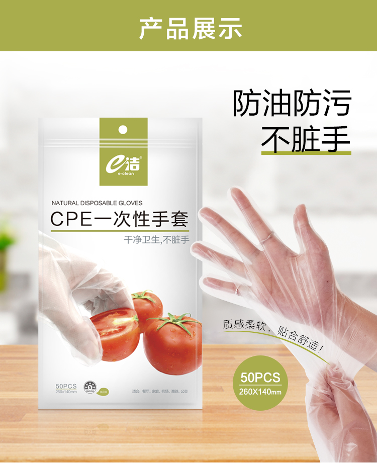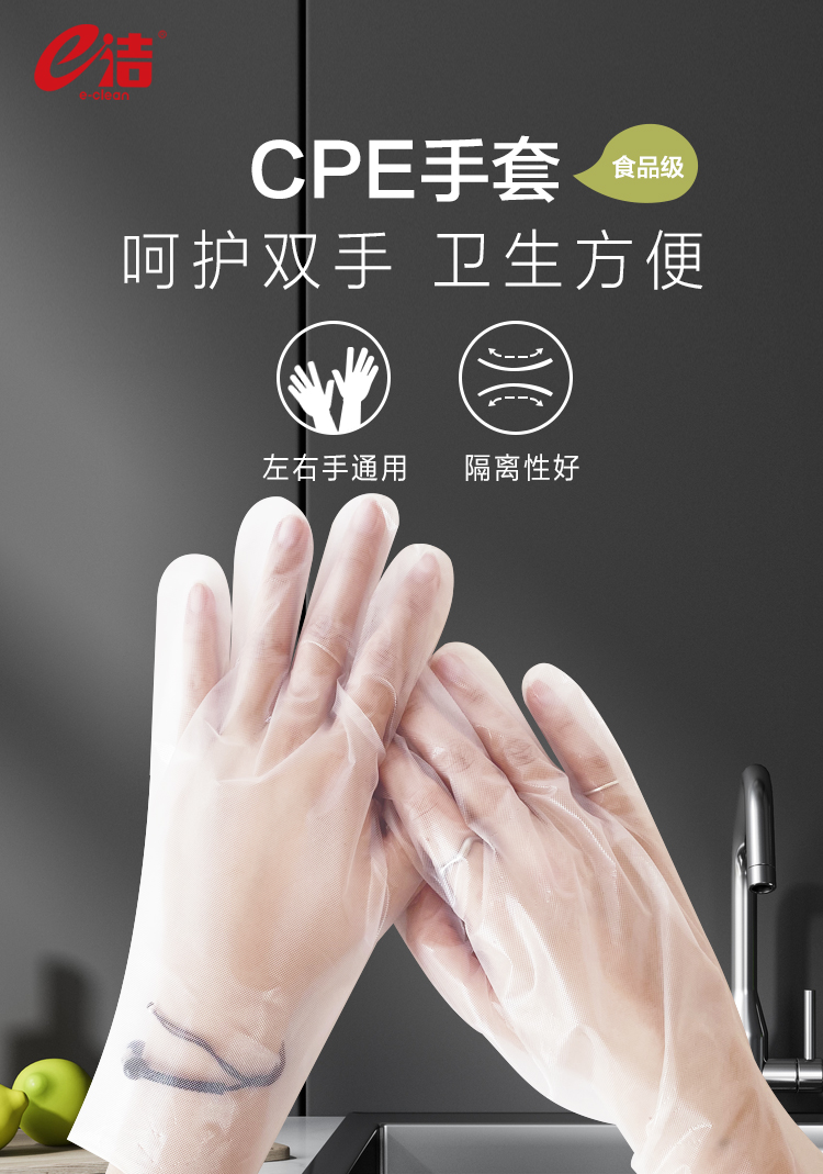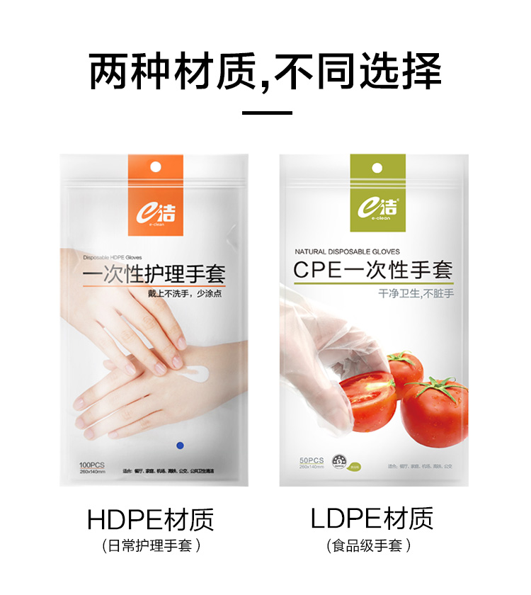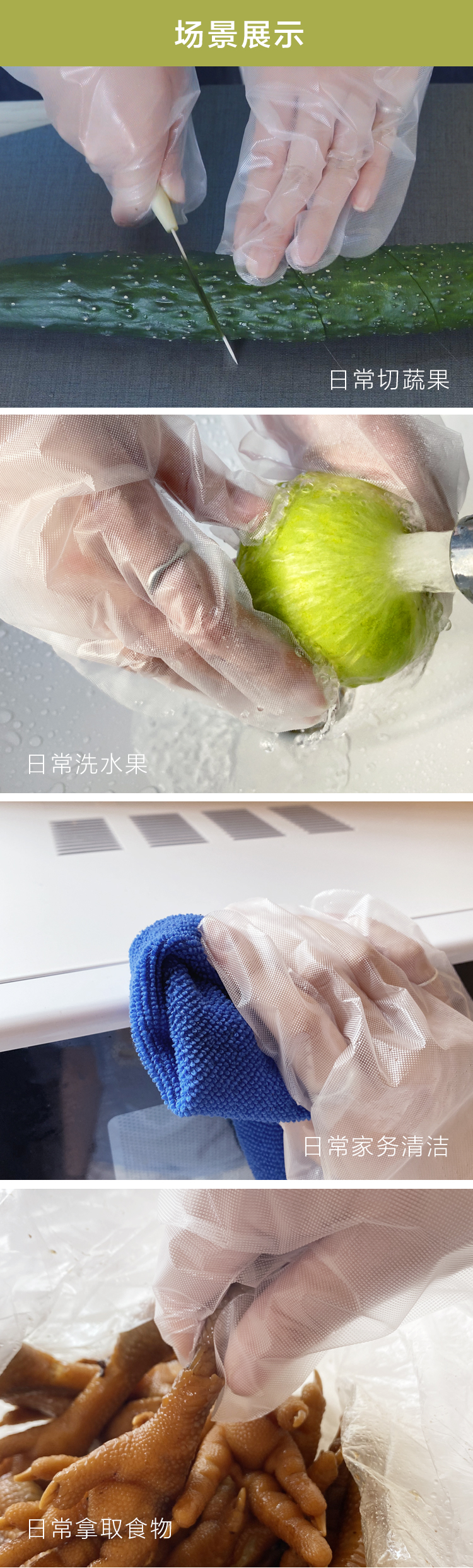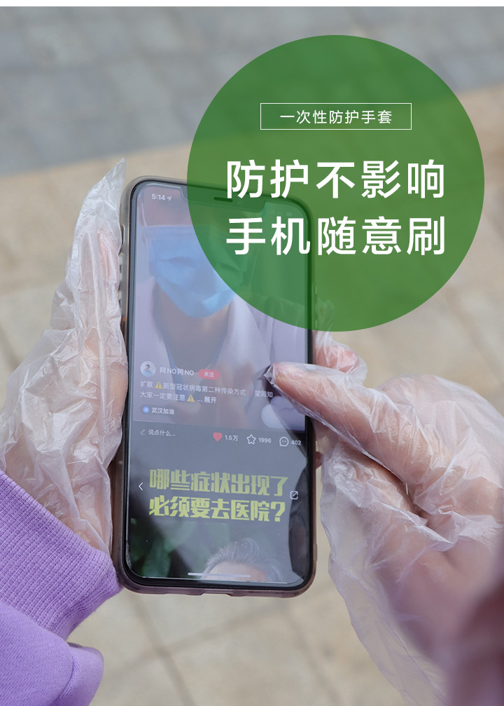 e洁厨房食品一次性塑料手套餐饮透明薄膜PE隔离检查200只