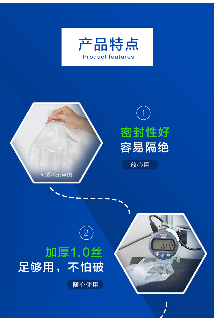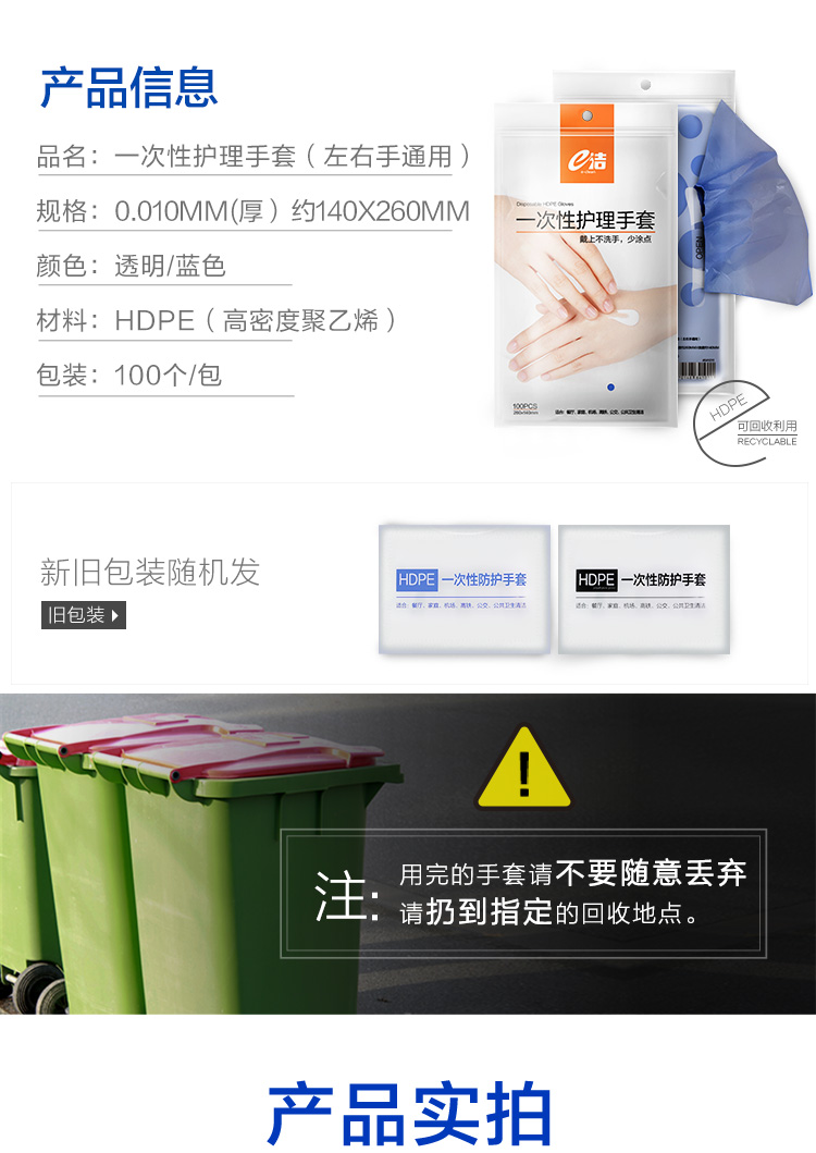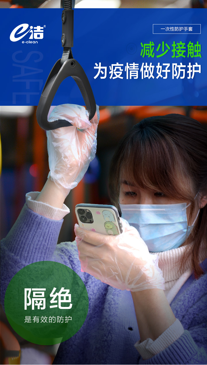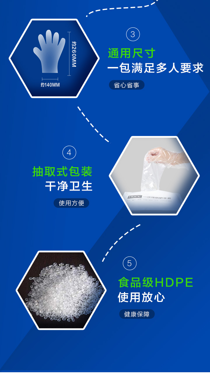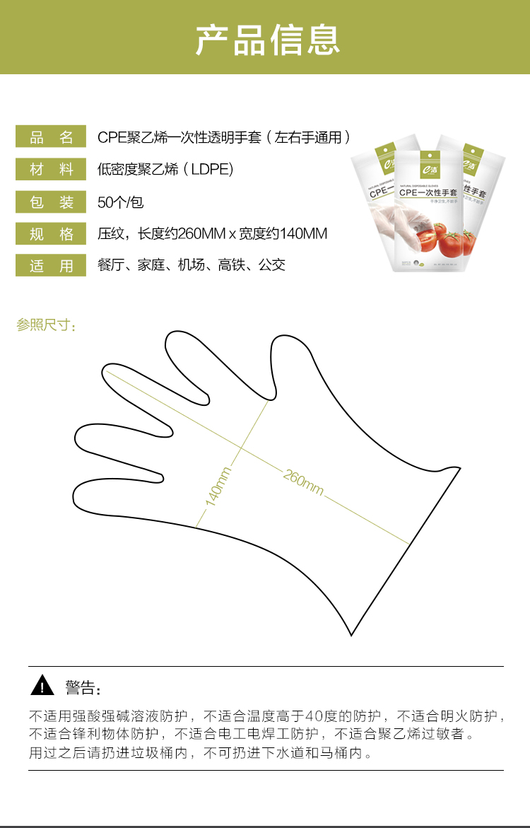 e洁厨房食品一次性塑料手套餐饮透明薄膜PE隔离检查200只