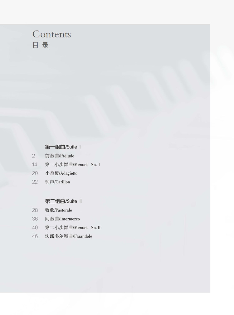 “四手联弹”是一种由两个人共同在同一台钢琴上合作演奏的一种表演形式。这种形式在共同学习、合作的过程中,可以培养良好音乐表现力。在19世纪的音乐史上,法国作曲家乔治·比才凭借歌剧《卡门》赢得了不朽的声望,这是一部高耸于他那个时代一切歌剧和戏剧之上的作品。比才的《阿莱城的姑娘》是作曲家为都德的同名话剧所写的配乐,被视为是歌剧《卡门》的先声这部作品,不仅显示出他的清晰风格,更带有完全是他自己方式的温柔情感,后来,比才从中选出一些精彩的段落,编配成四首大型乐队曲,即现在的第一组曲。比才去世后,他的友人埃涅斯特·吉洛又编选出三首,加上比才作曲的歌剧《波尔特的美丽姑娘》中的《小步舞曲》组成了第二组曲。此次出版的奥托·辛尔(Otto Singer)改编的四手联弹作品即为这两套共八首的选曲,分别是“前奏曲”“小步舞曲I”“小柔板”“钟声”“牧歌”“间奏曲”“小步舞曲II”“法行多拉舞曲”。此次乐谱来源于彼得斯的版本,编者重新校订了其中的部分错误,并标注了指法。