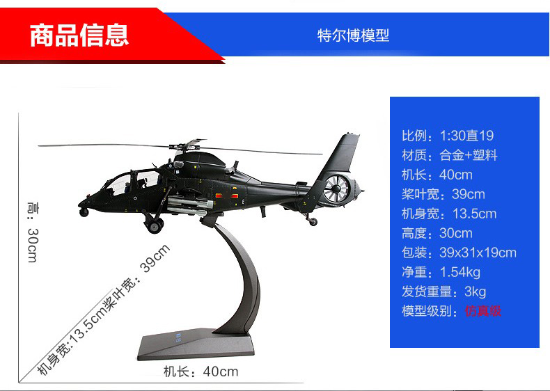 特尔博-1:30直19 黑旋风 直十九 武装直升机模型丨合金仿真军事模型丨收藏精品丨送礼佳品丨家居摆件