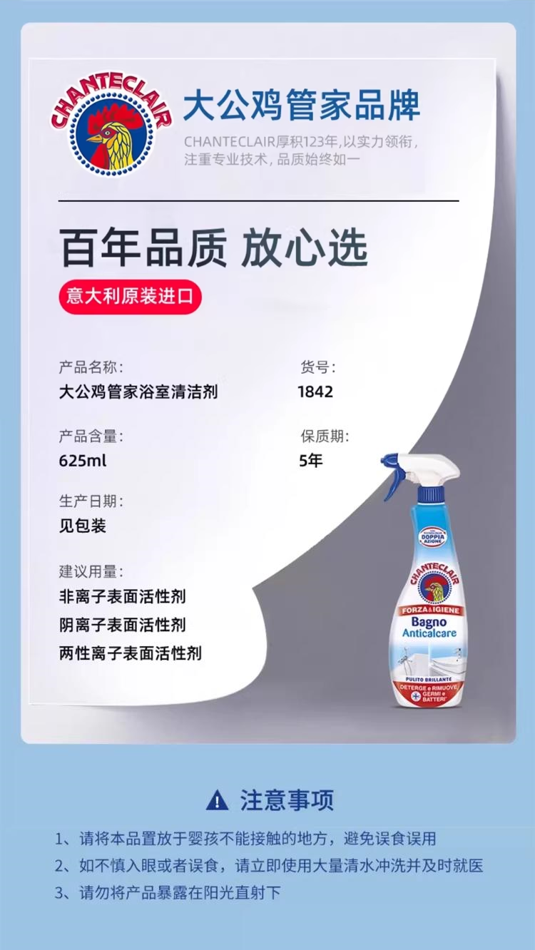 意大利100%原装进口的大公鸡头系列清洁用品,无论是清洁力度还是安全性上都首屈一指!