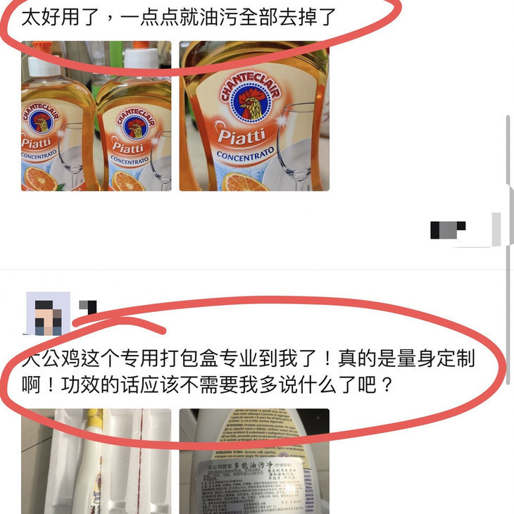 大公鸡家族的油污喷、洗洁精、鸡头皂都很好用!