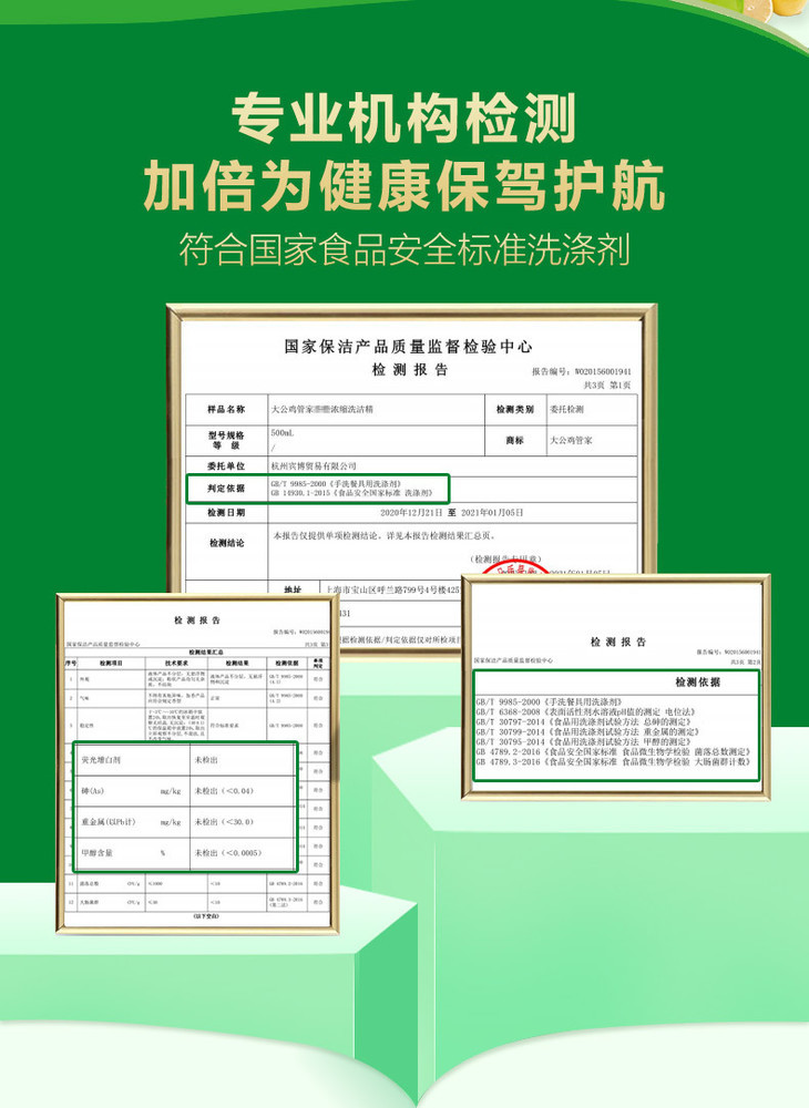 经过专业机构检测,符合国家食品安全标准洗涤剂