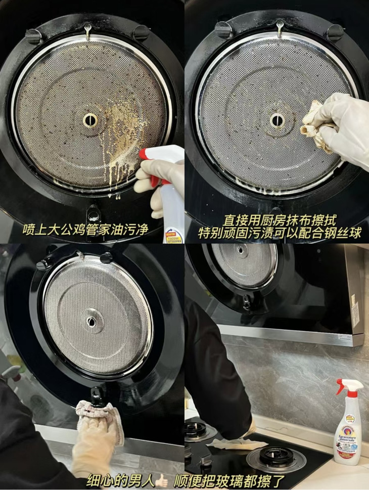 采用独特去污因子,瞬间瓦解污渍,任何油渍在大公鸡管家多功能油污净面前,立马败下阵来!