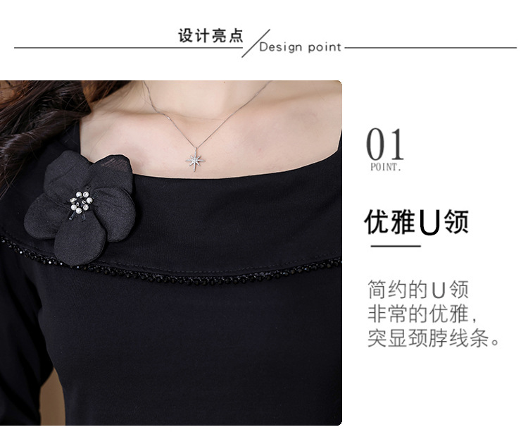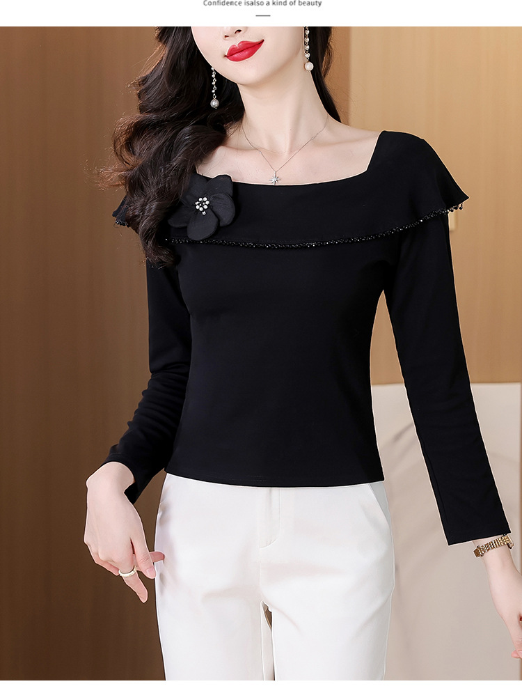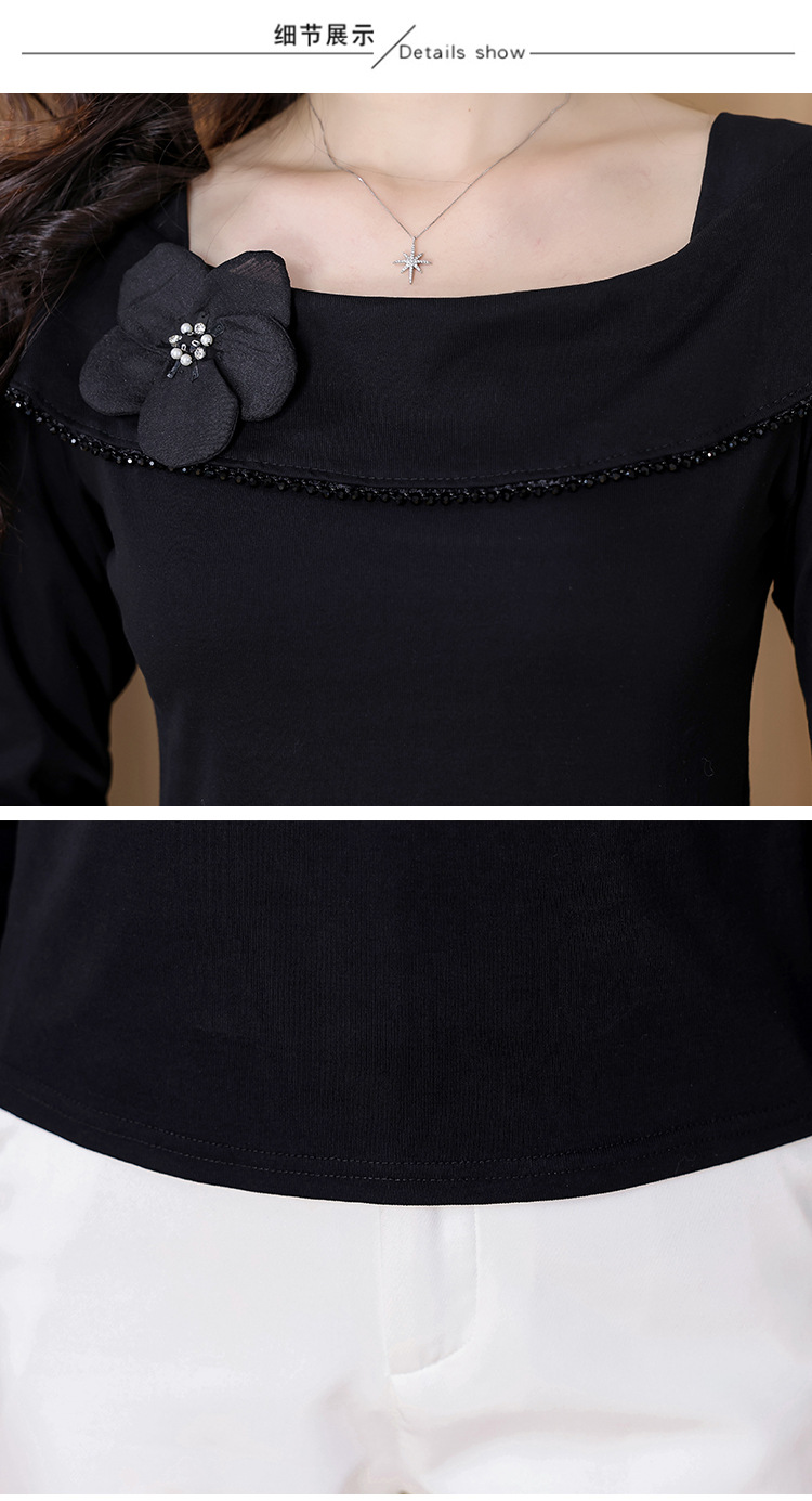KQL D36M8551韩版时尚方领立体花朵长袖T恤气质显瘦荷叶边上衣