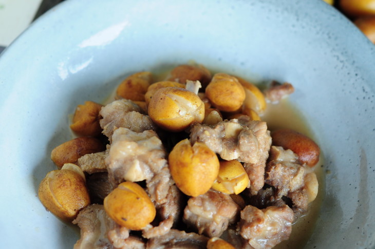 将排骨烹煮,收汁前将黄皮放入炖煮,黄皮带来的果酸化解肉类的肥腻,让人胃口大开