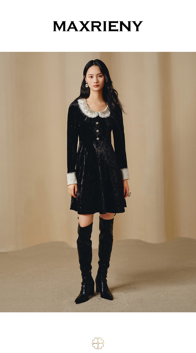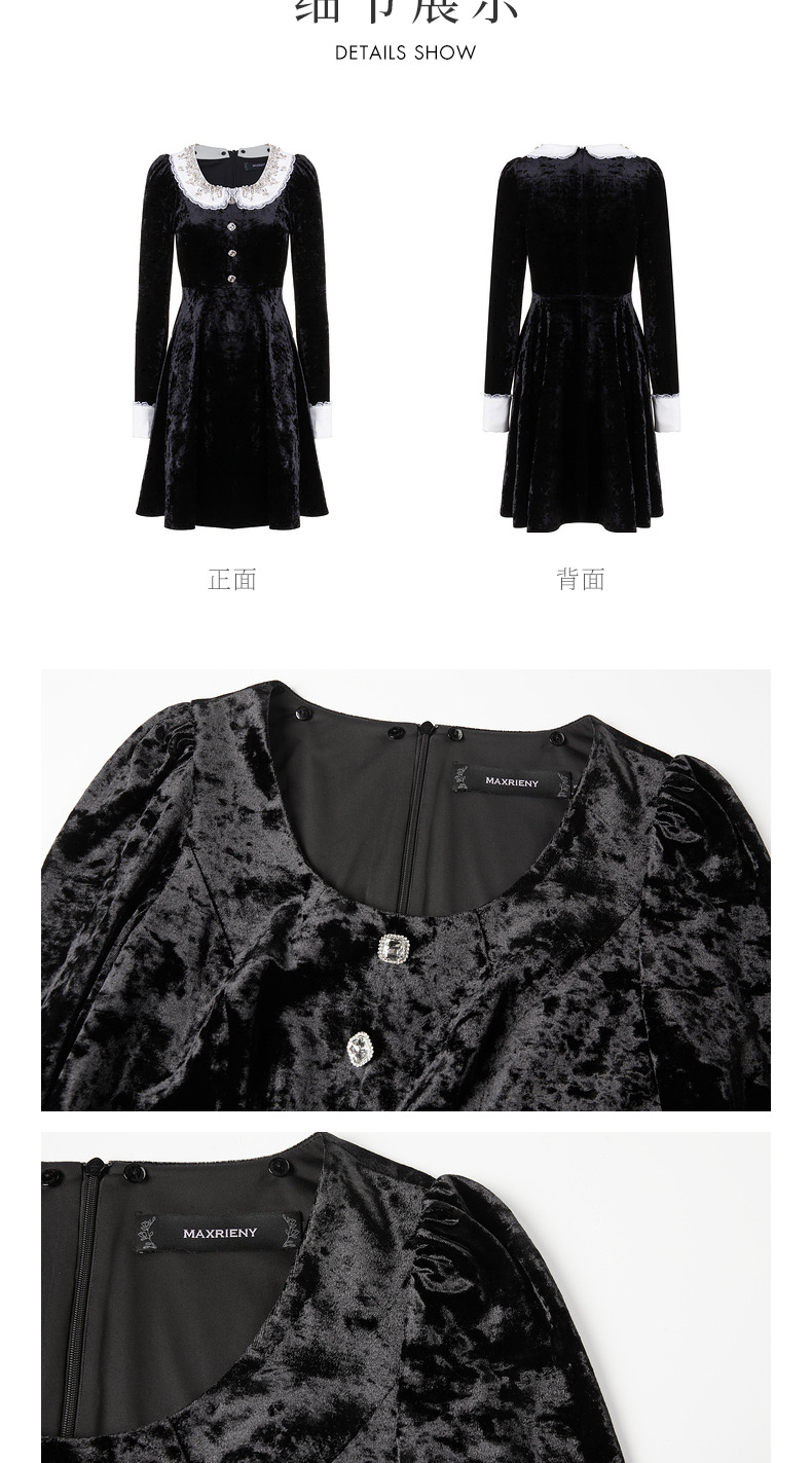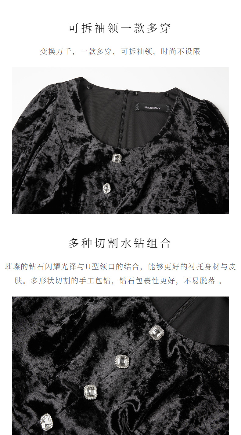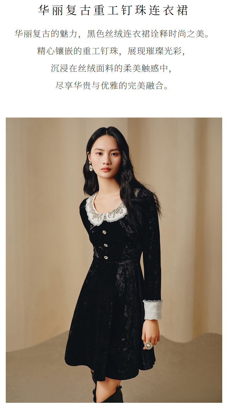 MAXRIENY*赫本华丽复古风重工钉珠连衣裙丝绒裙(货号:MC88DR814)