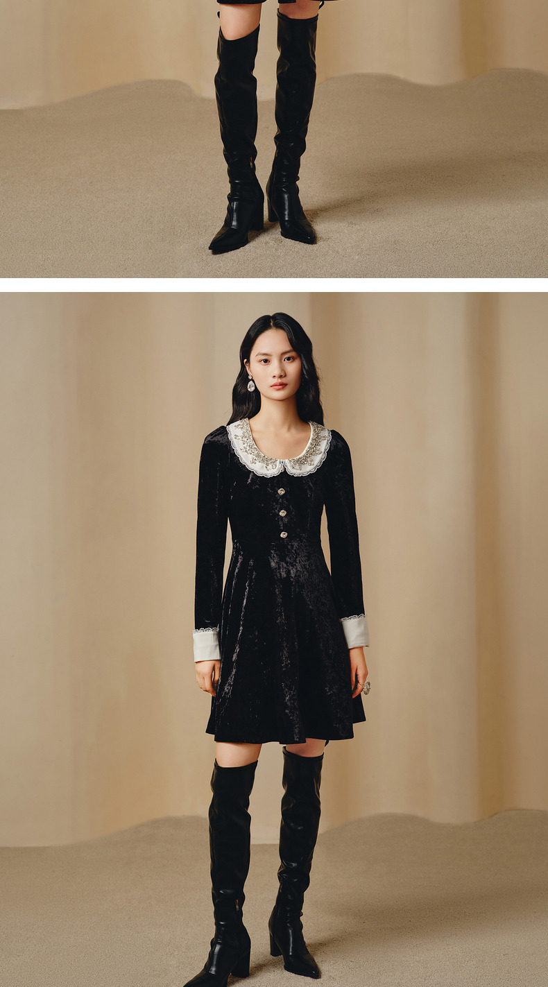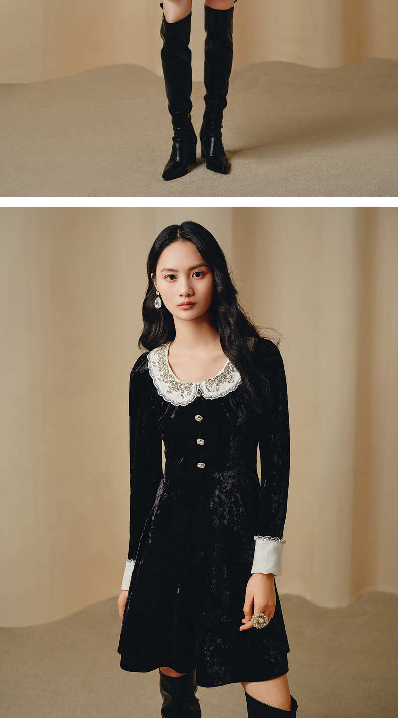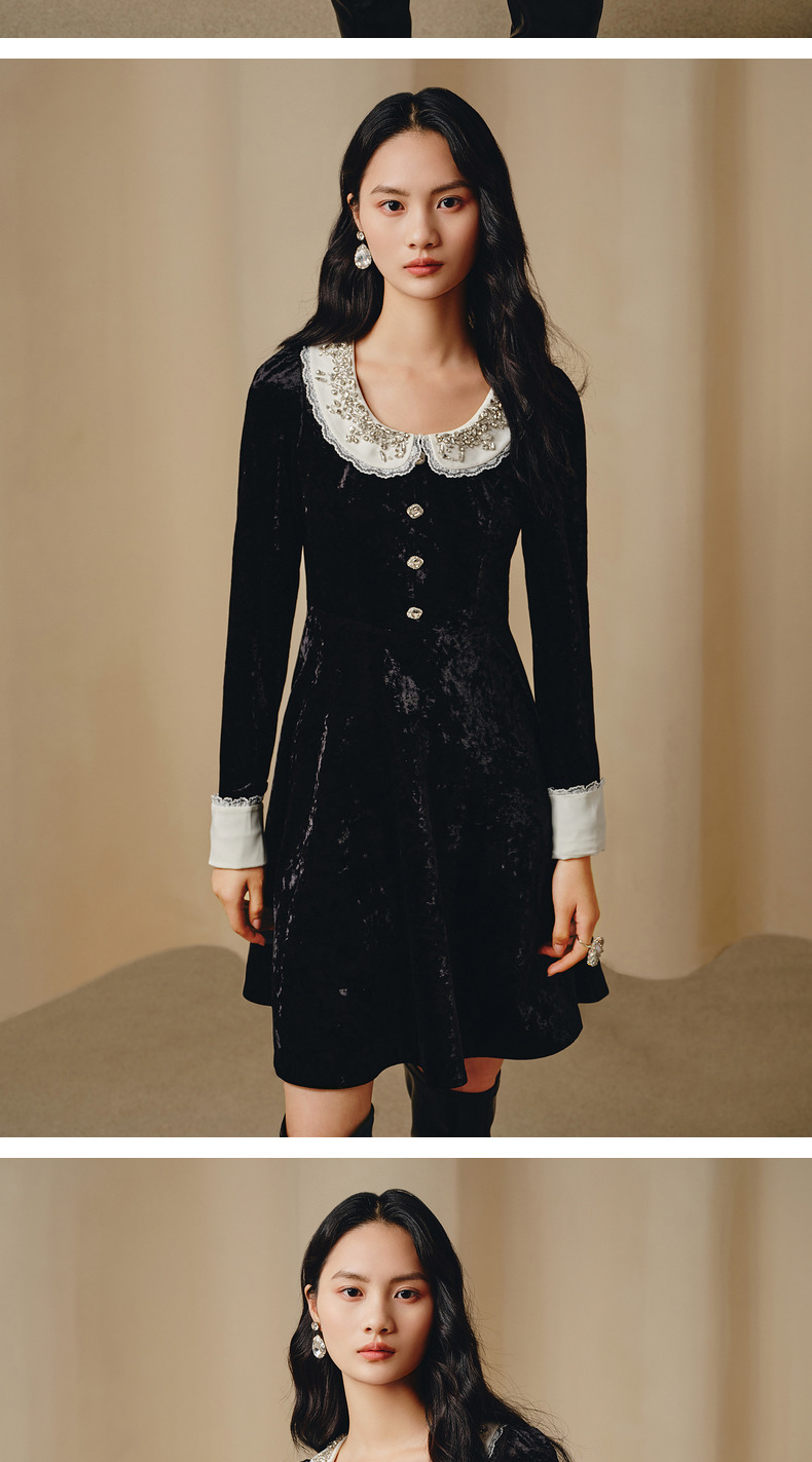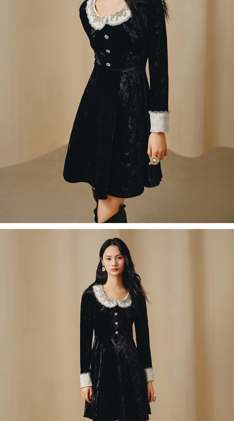 MAXRIENY*赫本华丽复古风重工钉珠连衣裙丝绒裙(货号:MC88DR814)