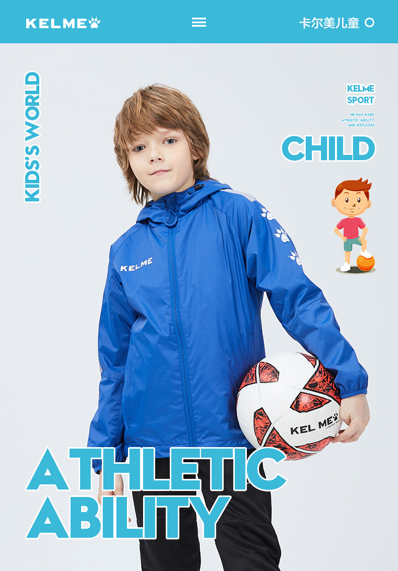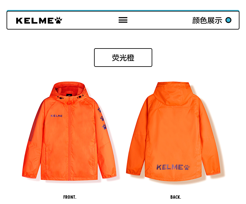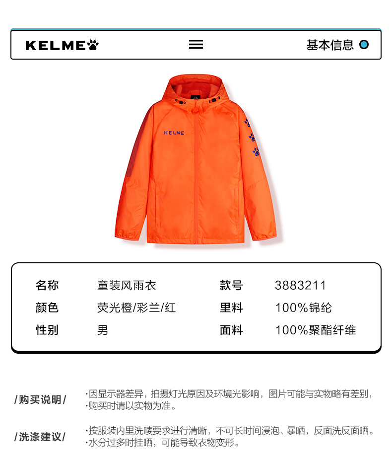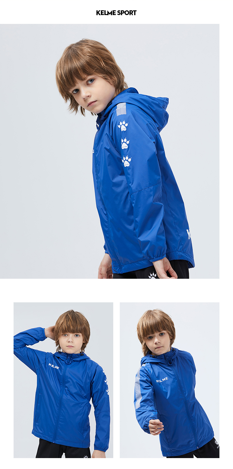 kelme卡尔美 儿童运动风衣足球训练风雨衣小学生防风外套男童
