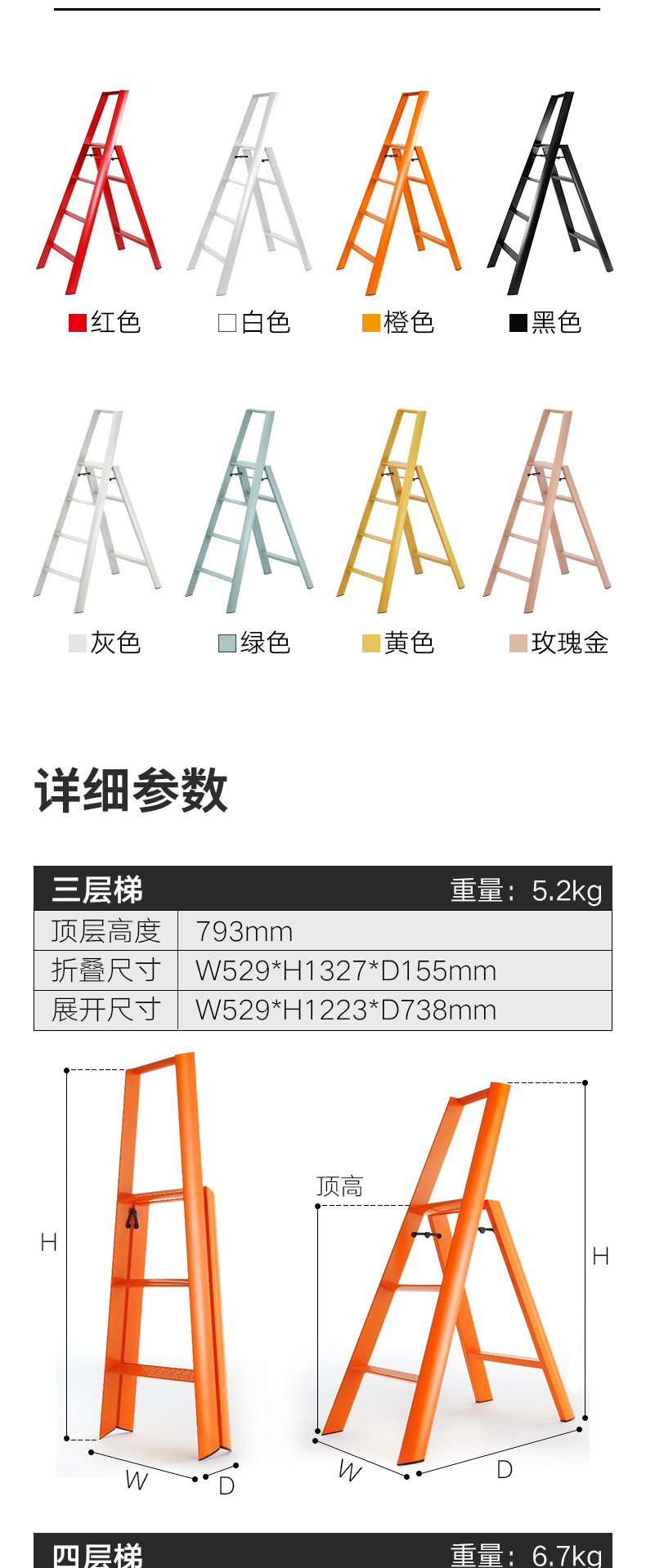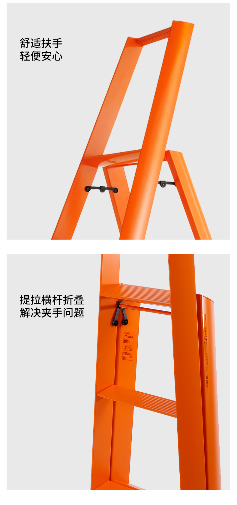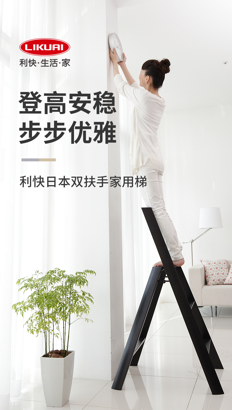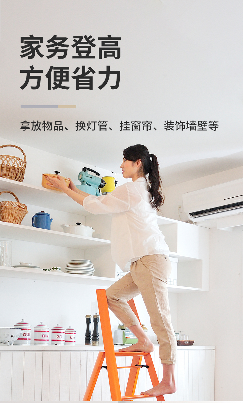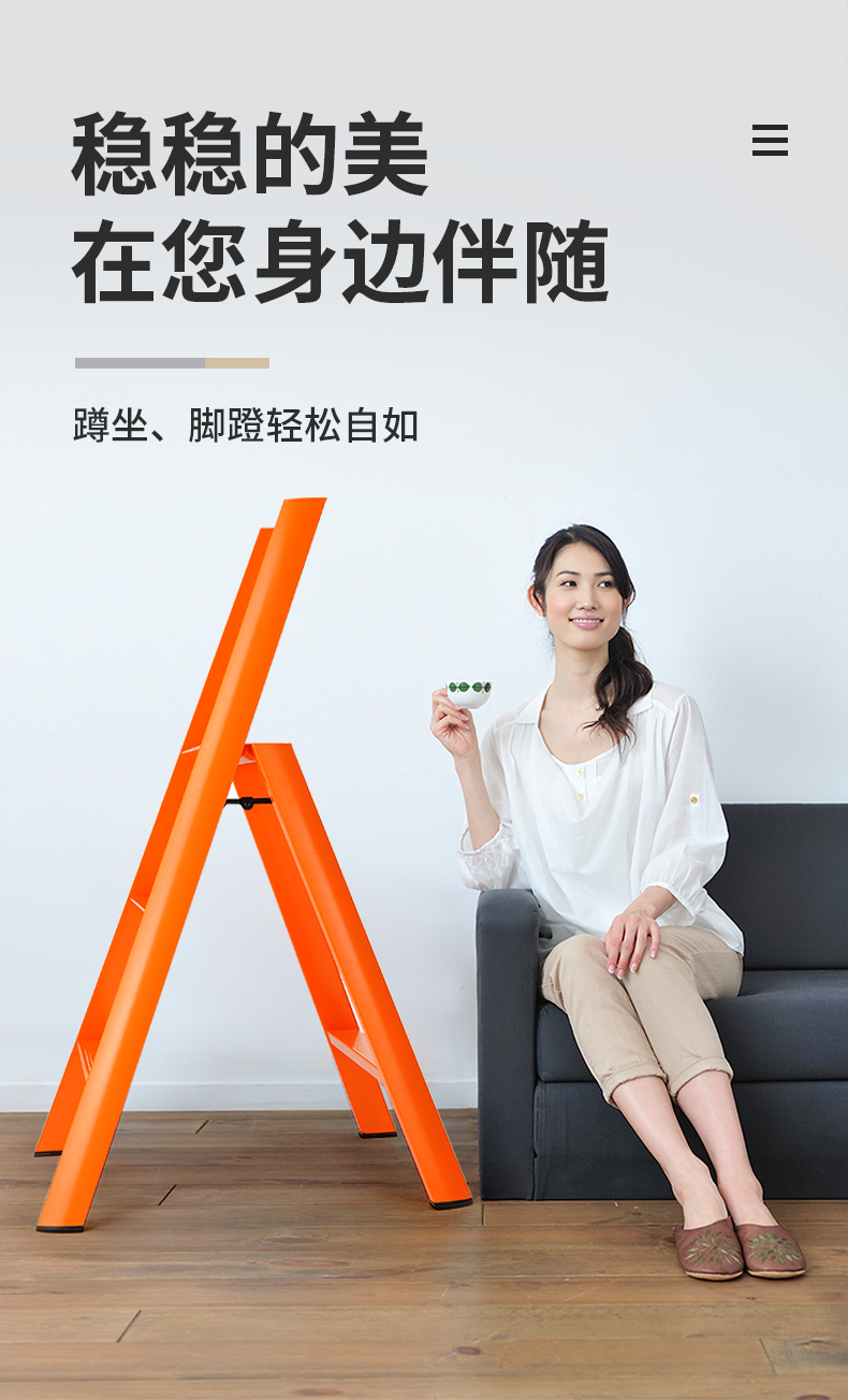 日本长谷川家用 双扶手四层梯子 黄色
