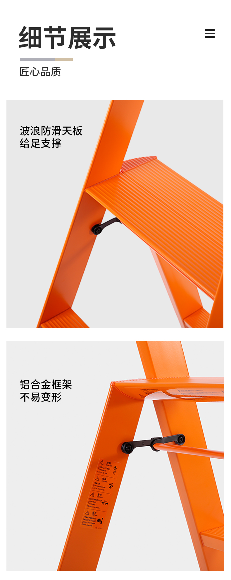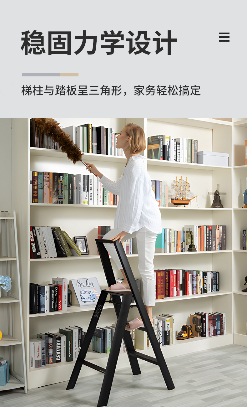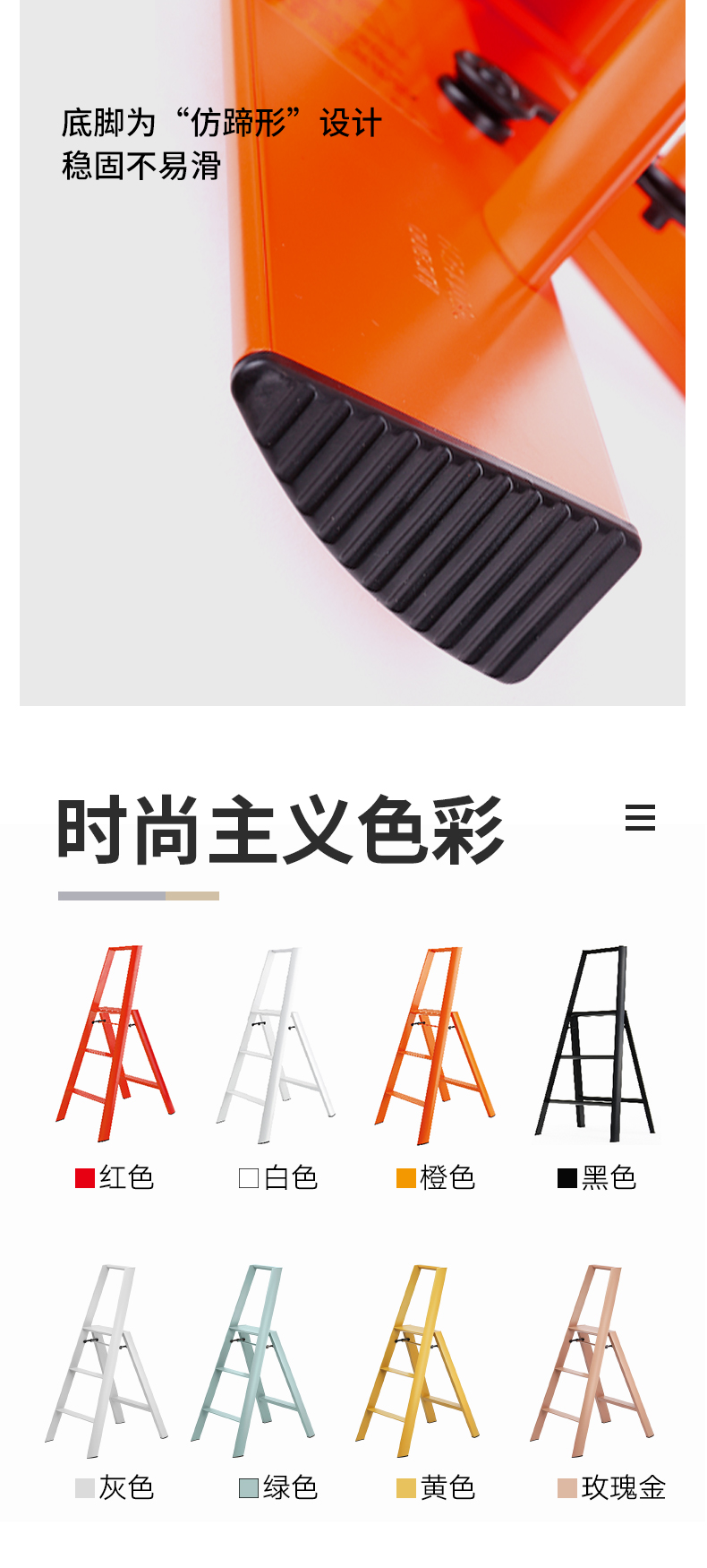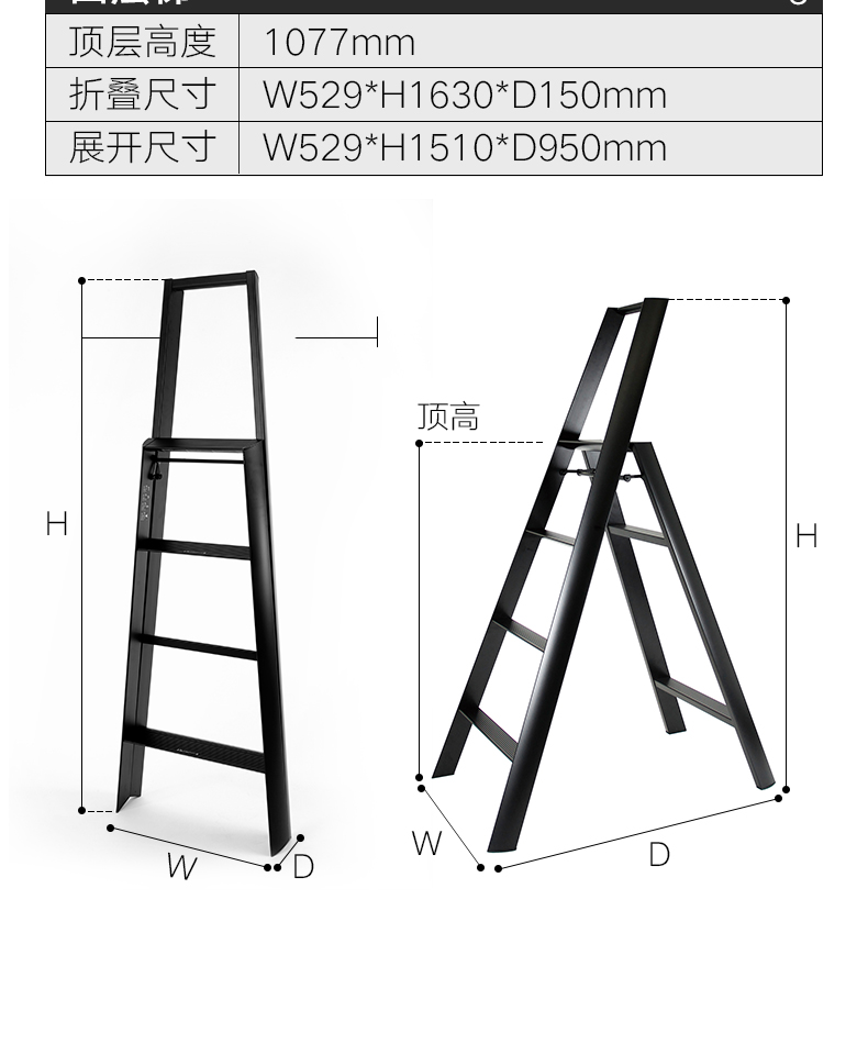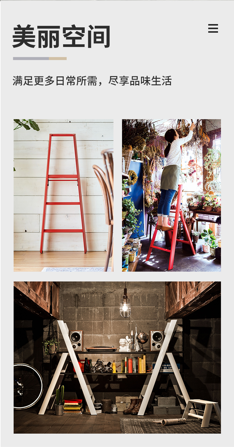 日本长谷川家用 双扶手四层梯子 黄色