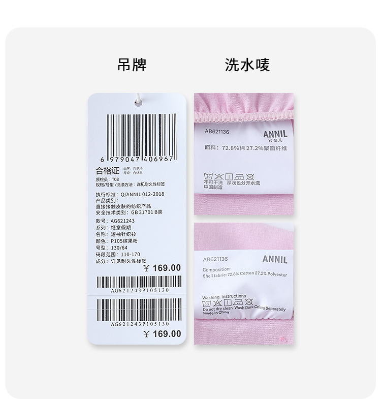 【实体店同款】女童短袖针织衫夏季新款安奈儿童装AG621243