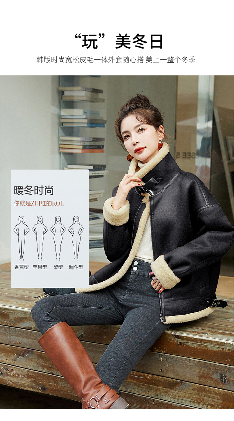 秋冬装新款,皮毛一体外套女HR-MEIQIN9216