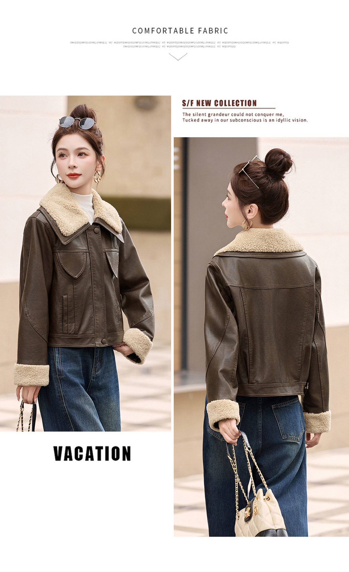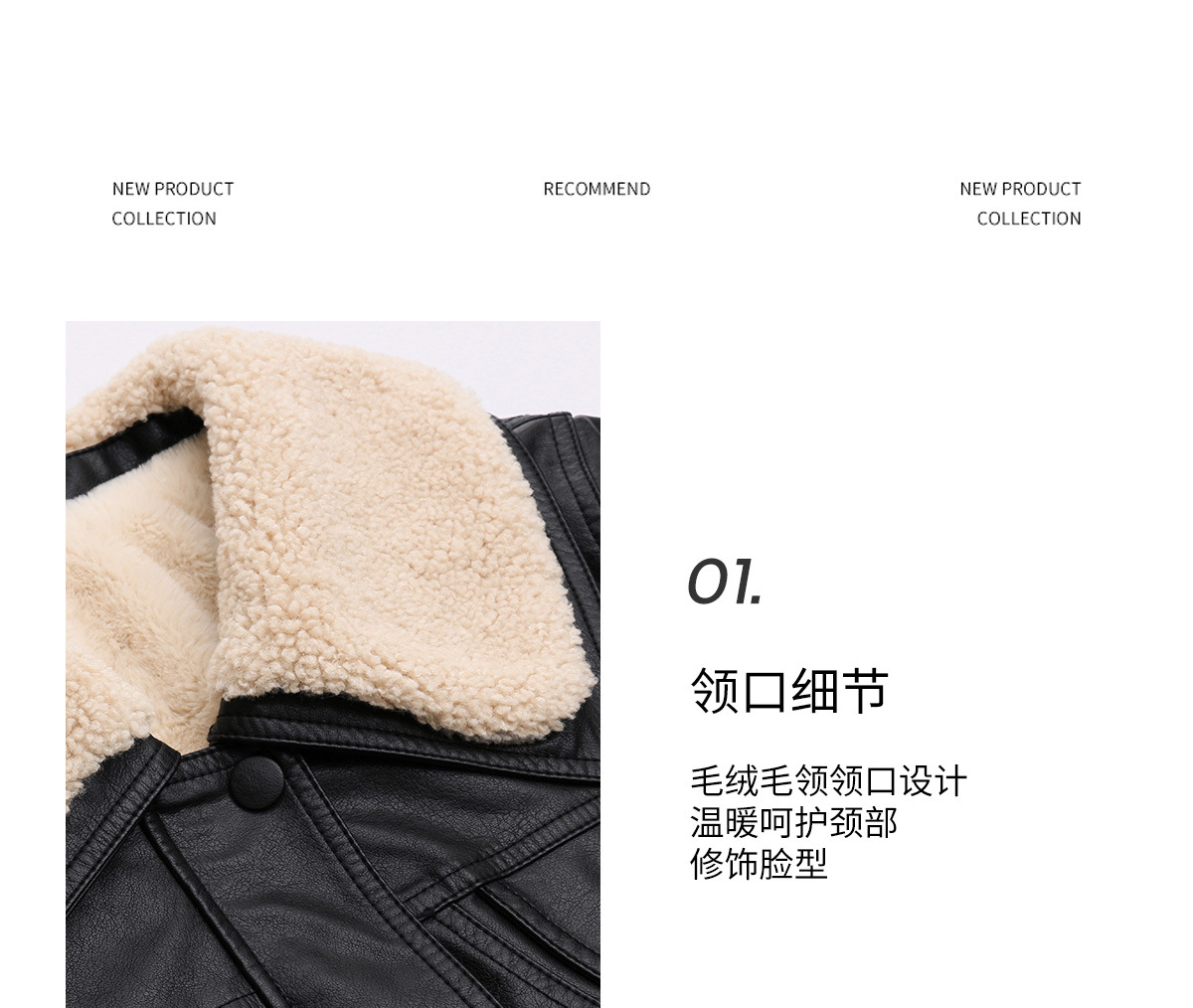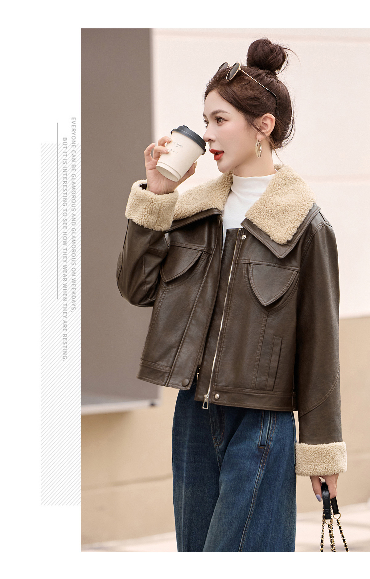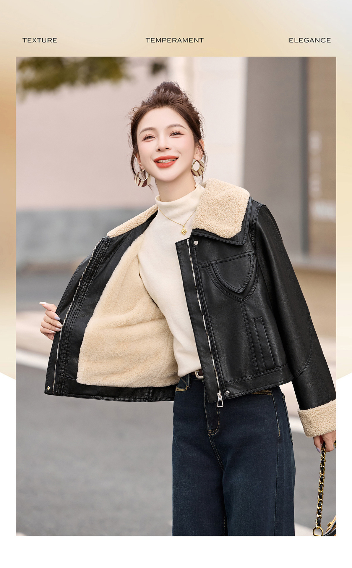 羊羔毛拼接加绒黑色皮衣,加厚保暖小个子皮夹克外套HR-9802