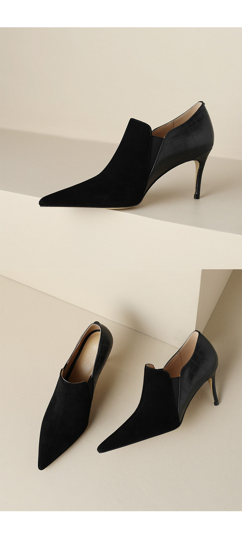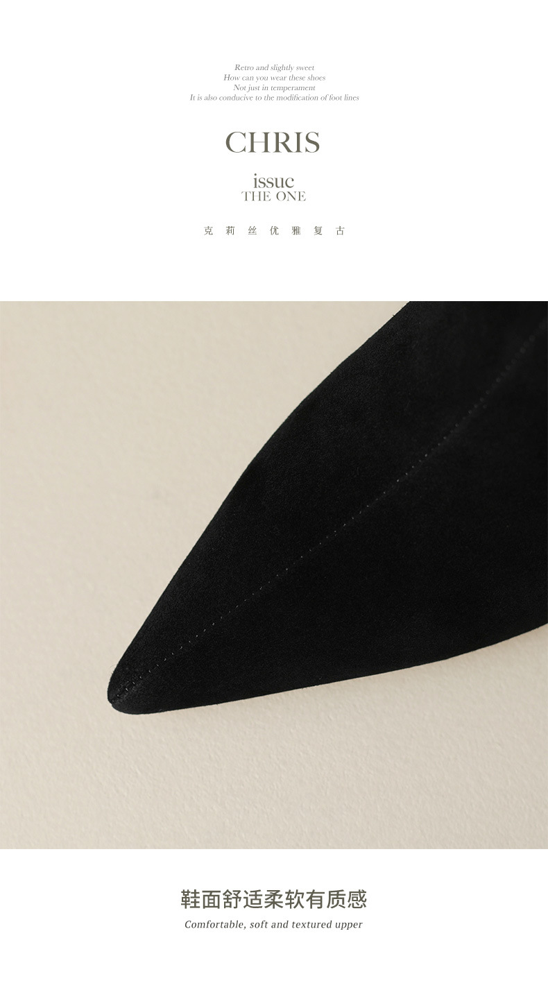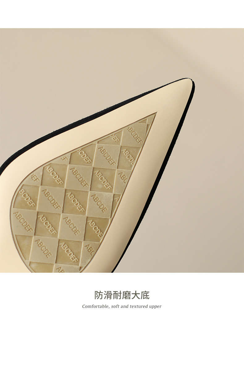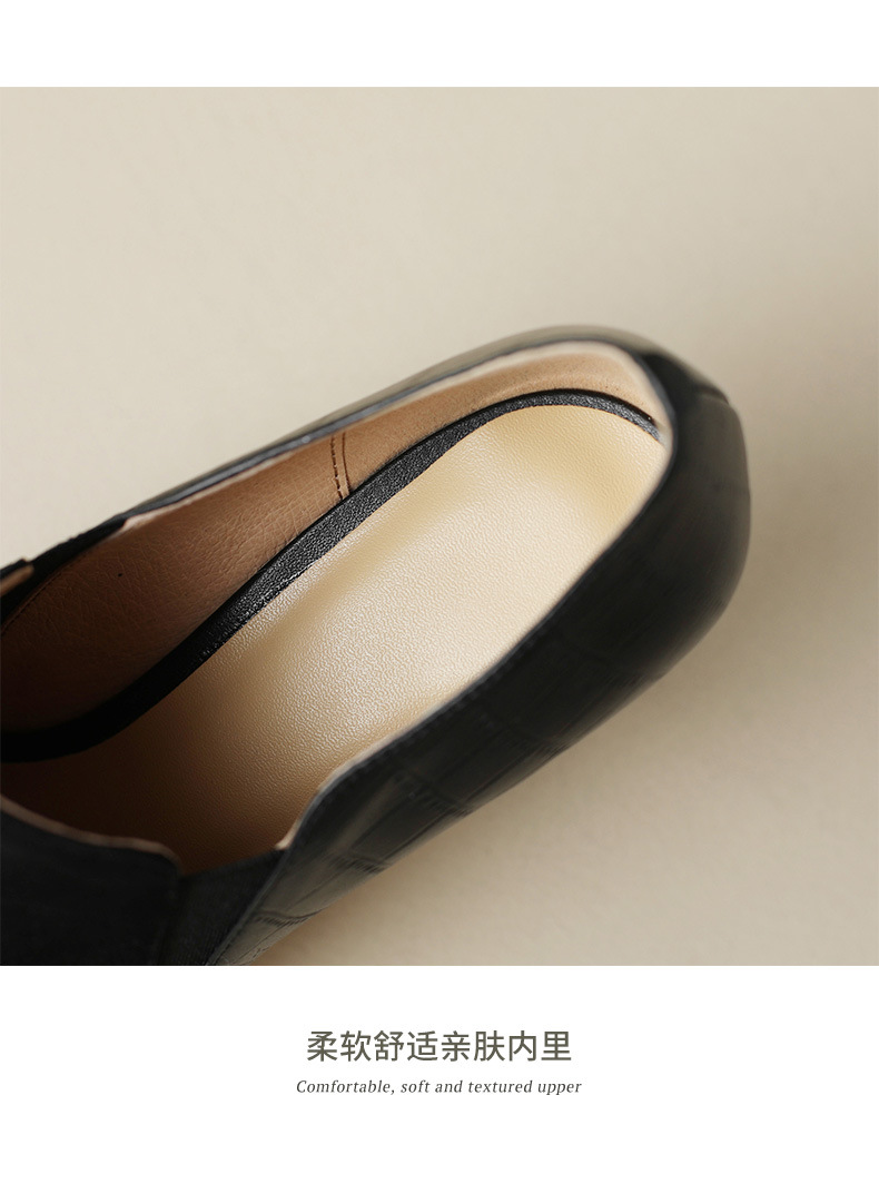 法式复古单鞋,女尖头细跟春新小皮鞋气质翻皮中跟深口女鞋拼色MLS-633