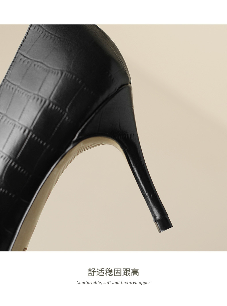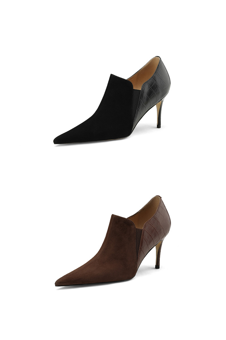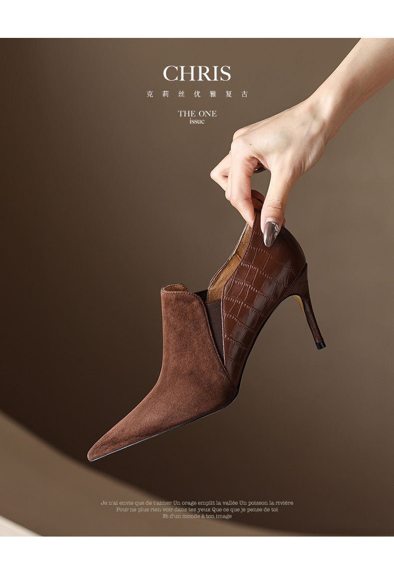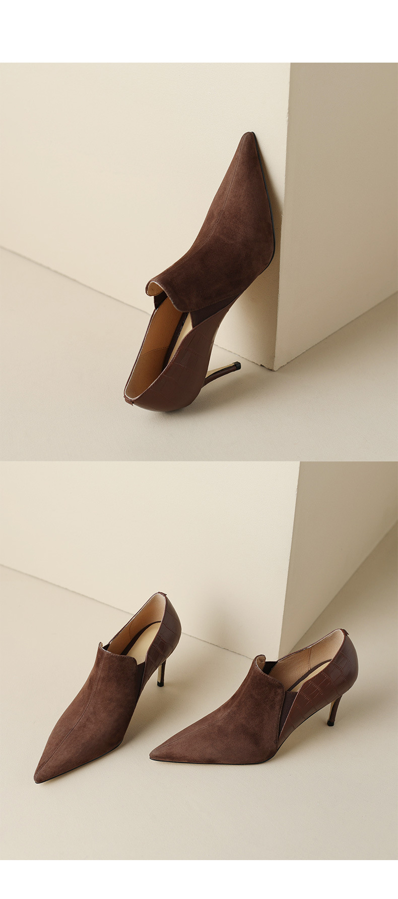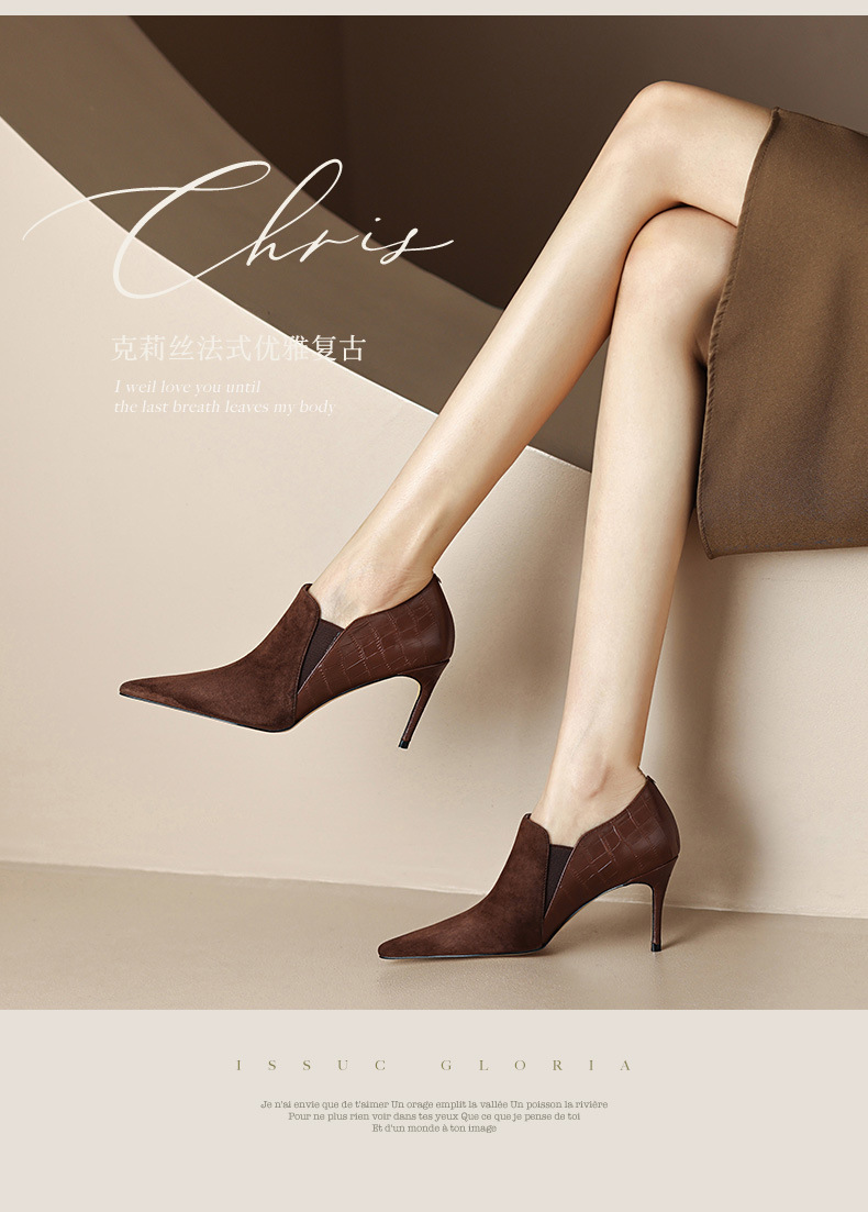 法式复古单鞋,女尖头细跟春新小皮鞋气质翻皮中跟深口女鞋拼色MLS-633