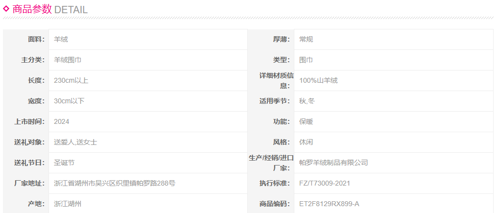 PALUOPO/PL 100%山羊绒 羊绒围巾ET2F8129R约重115g 配饰帕罗