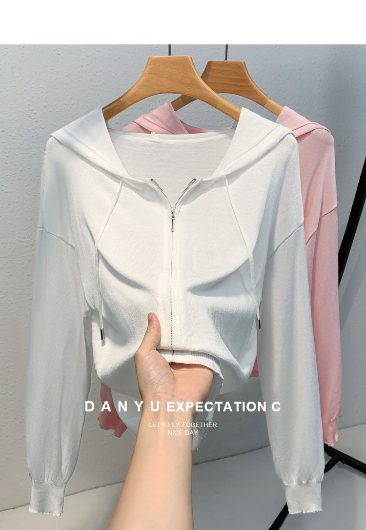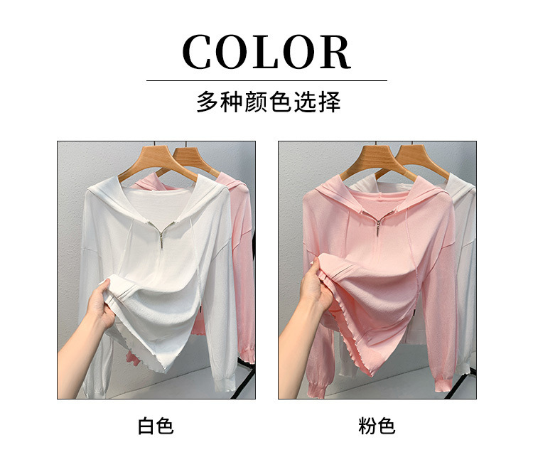 白色连帽卫衣,薄款外搭早秋新款时尚带帽拉链长袖薄款开衫SG-Y3X0767