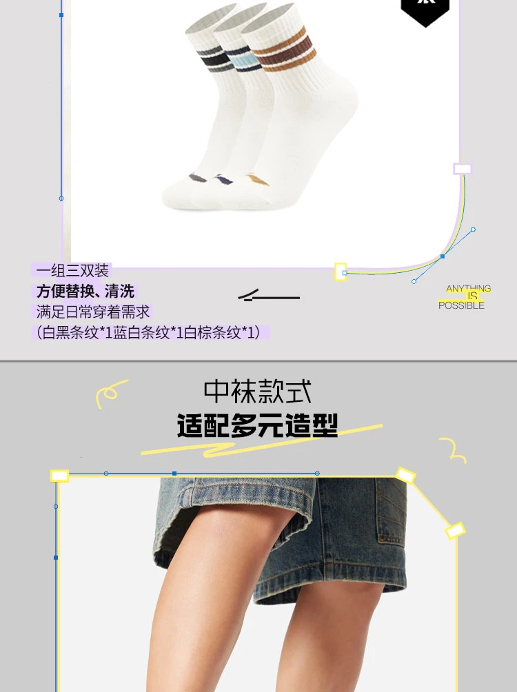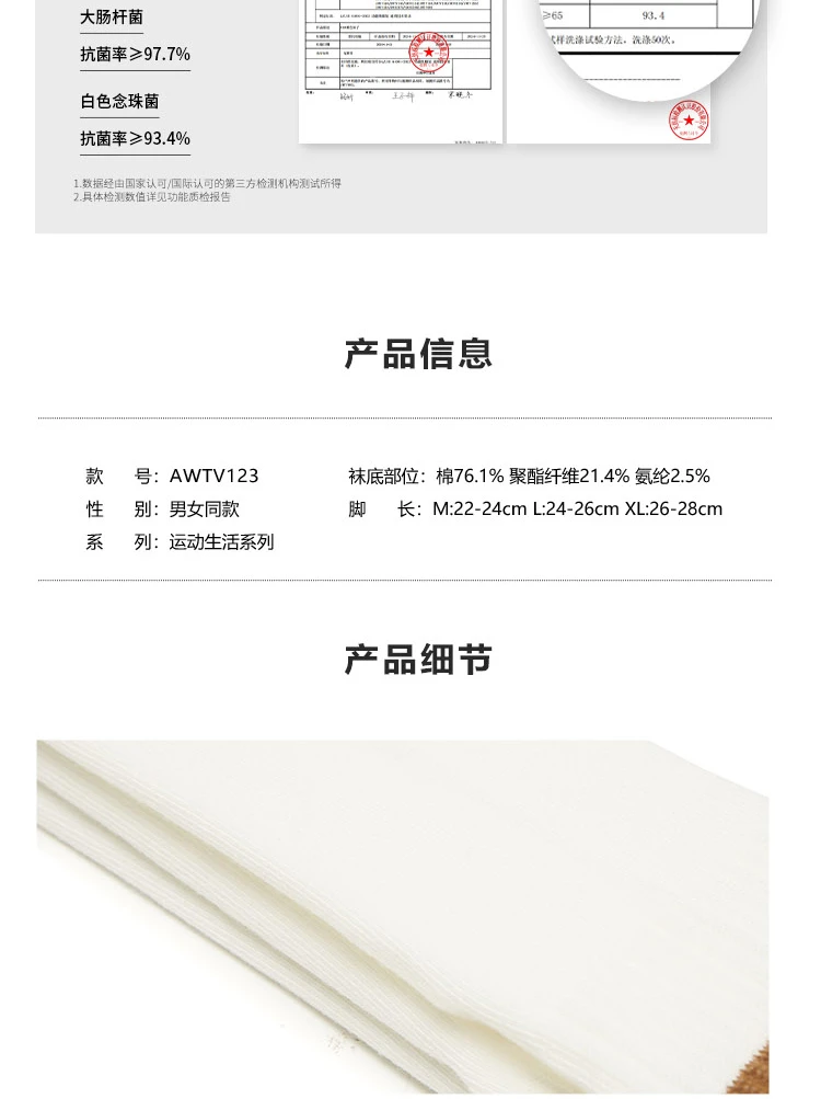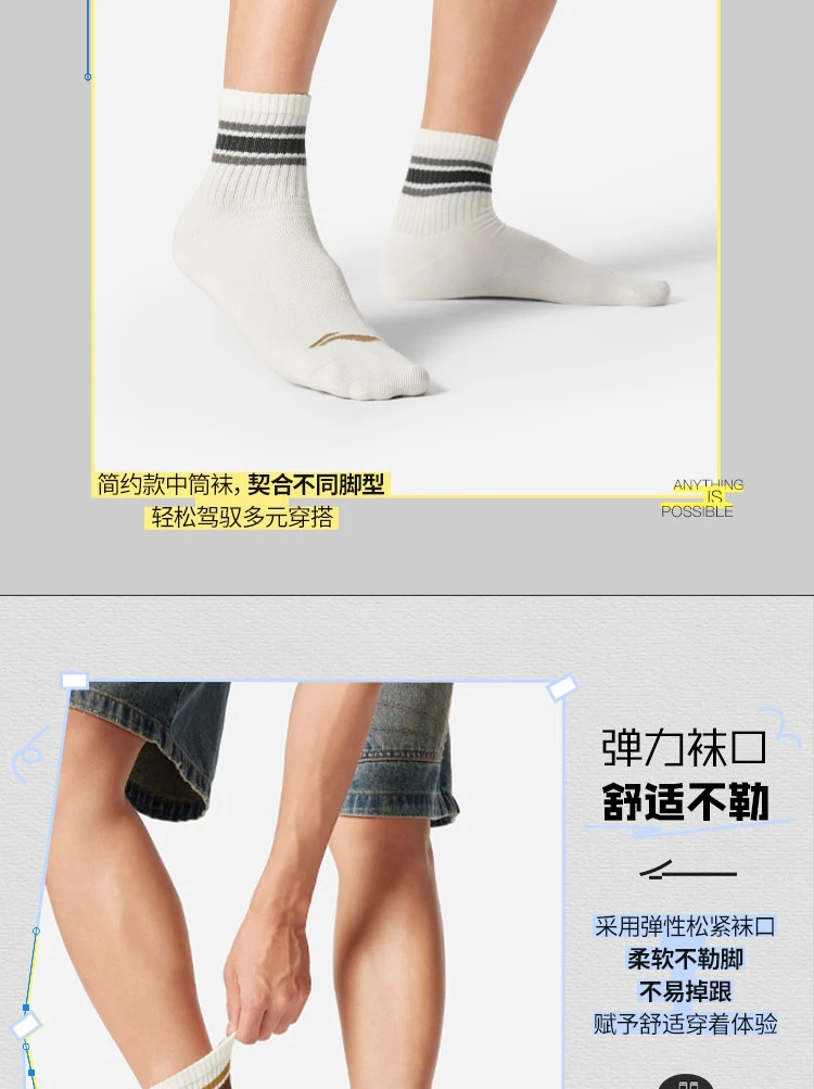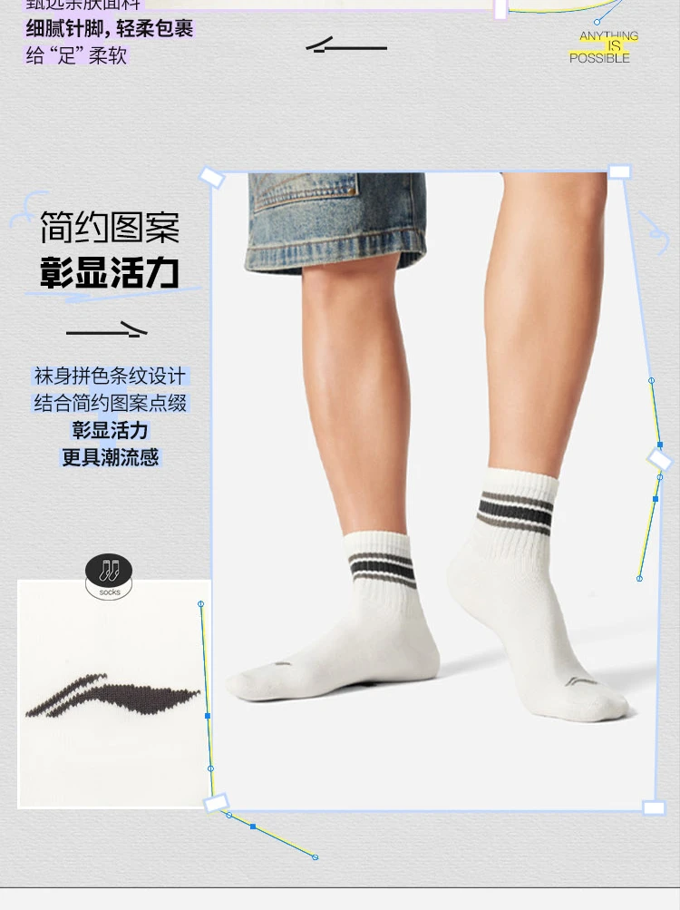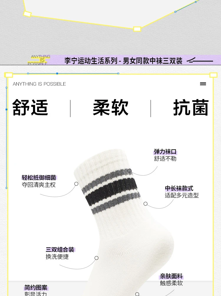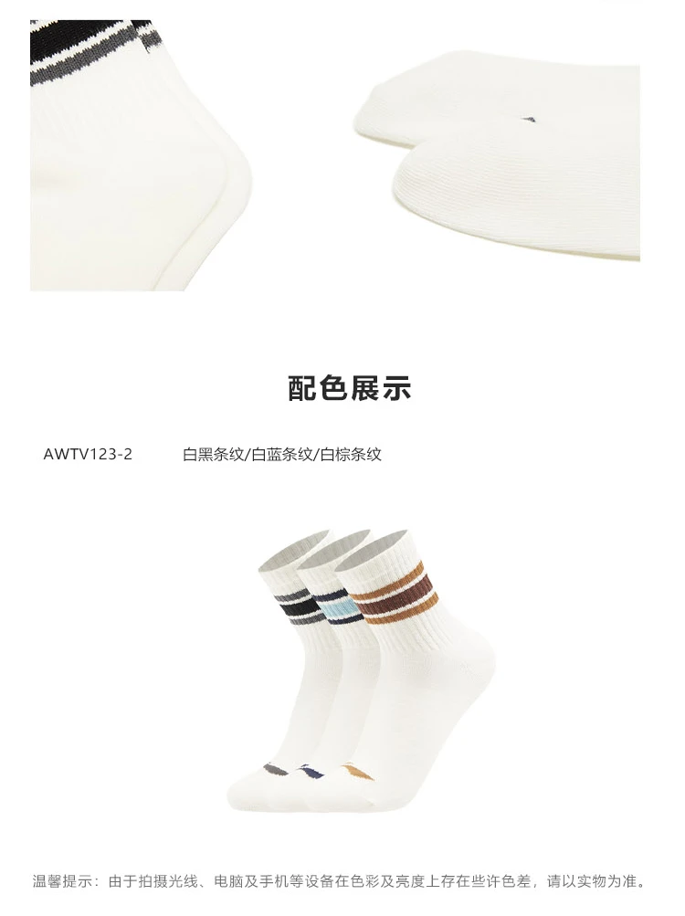 李宁运动生活系列抗菌中袜三双装(特殊产品不予退换货)AWTV123
