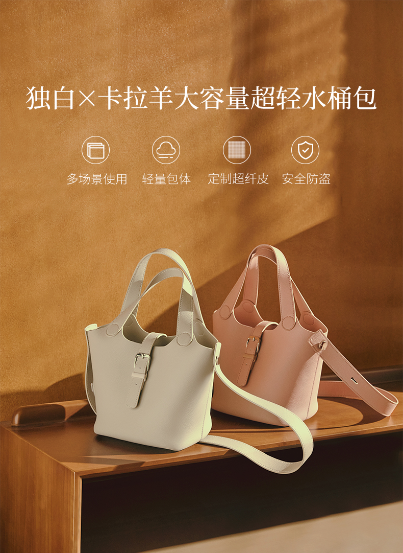 独白X卡拉羊女士时尚设计水桶包潮流单肩包手提包便携手拎 D4044/L