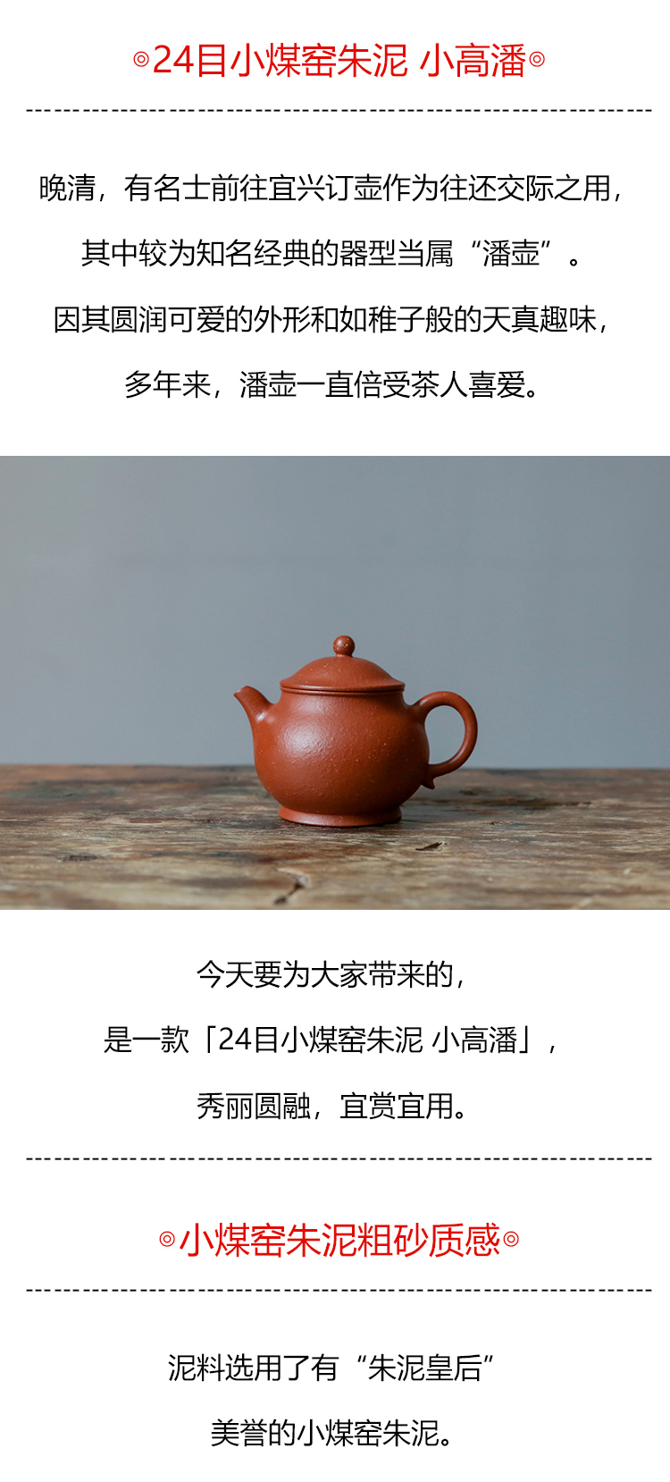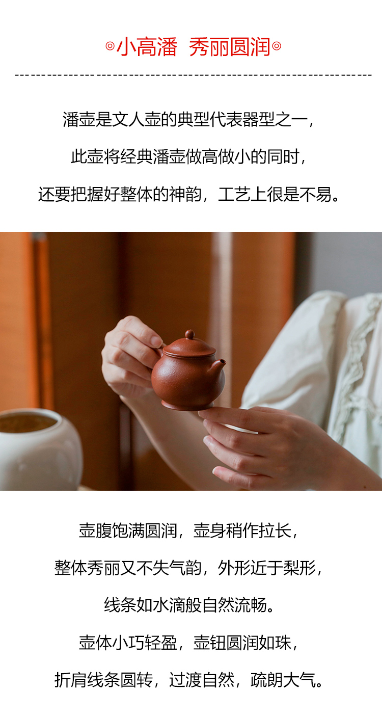 茶香记 紫砂壶24目小煤窑朱泥小高潘90ml潘壶茶壶秀丽圆融文人壶
