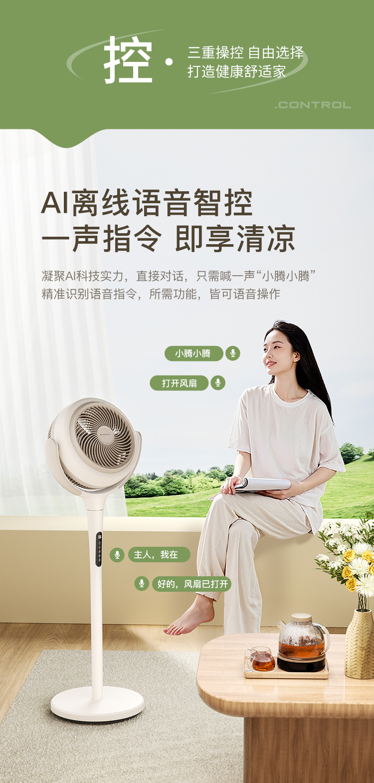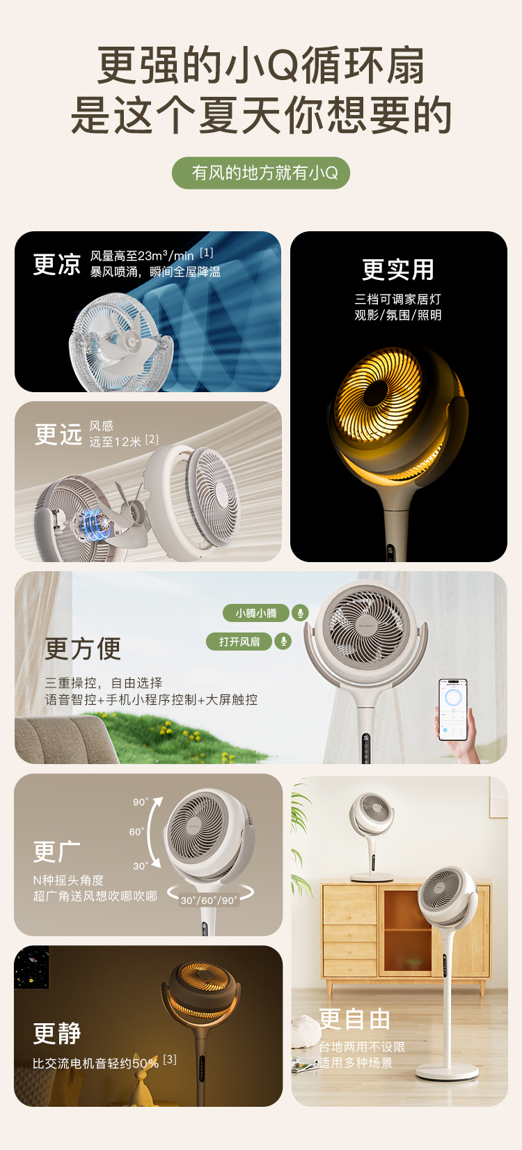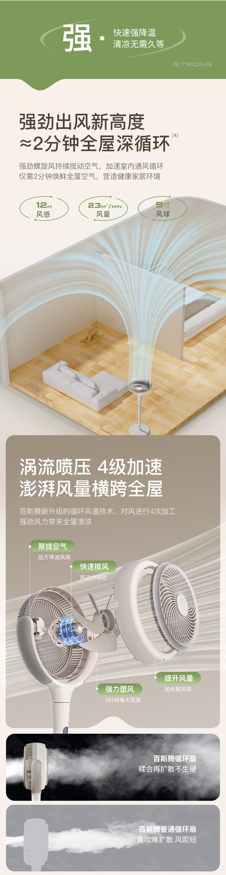 百斯腾Q3智能风扇 | 一年质保,以换代修,AI语音+小程序控制,12米风距如春风佛面